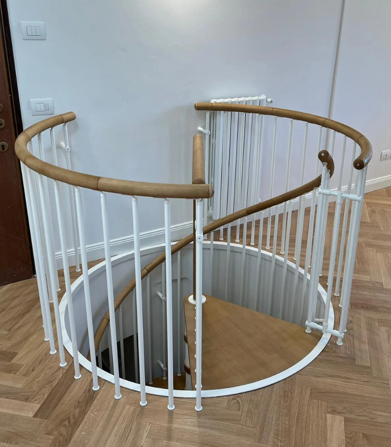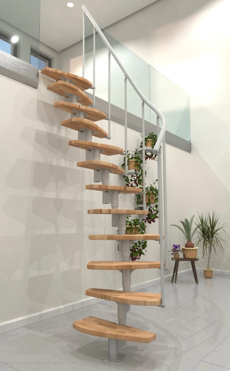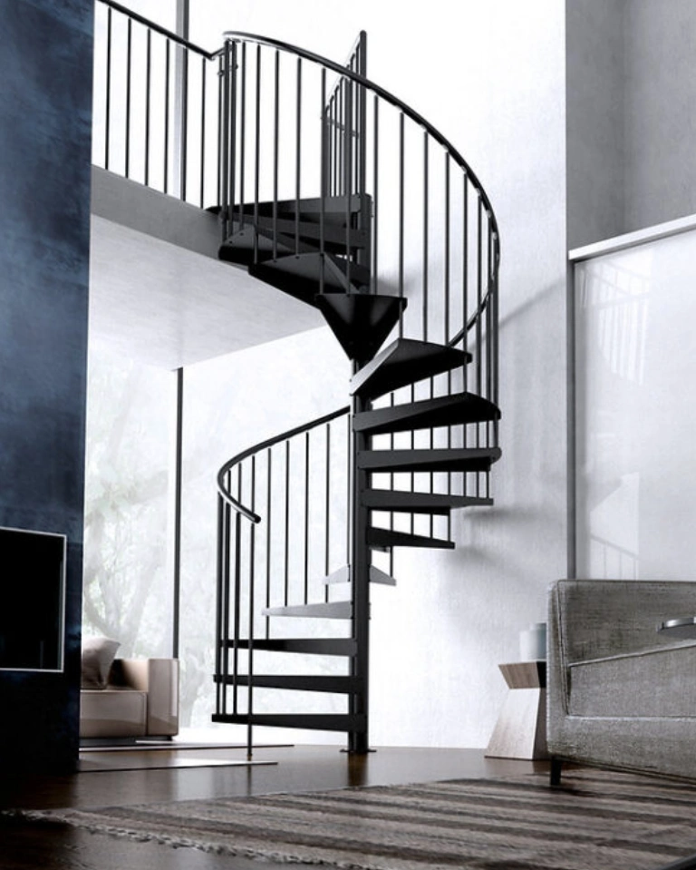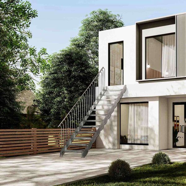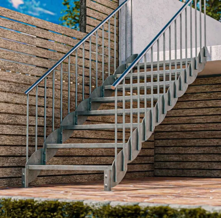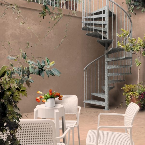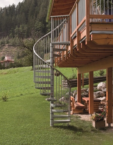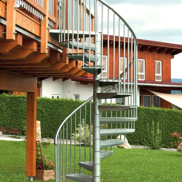 - Gewendelte Außentreppe aus verzinktem Stahl