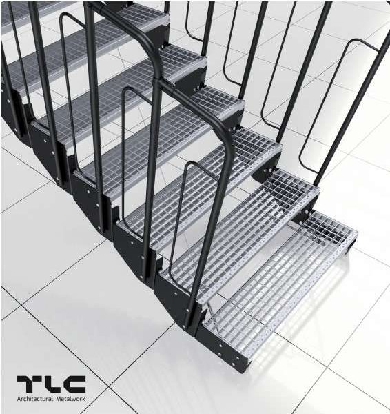 - Gestanzte Stahlstufen mit Noppen ermöglichen sicheres Auftreten ohne Rutschgefahr