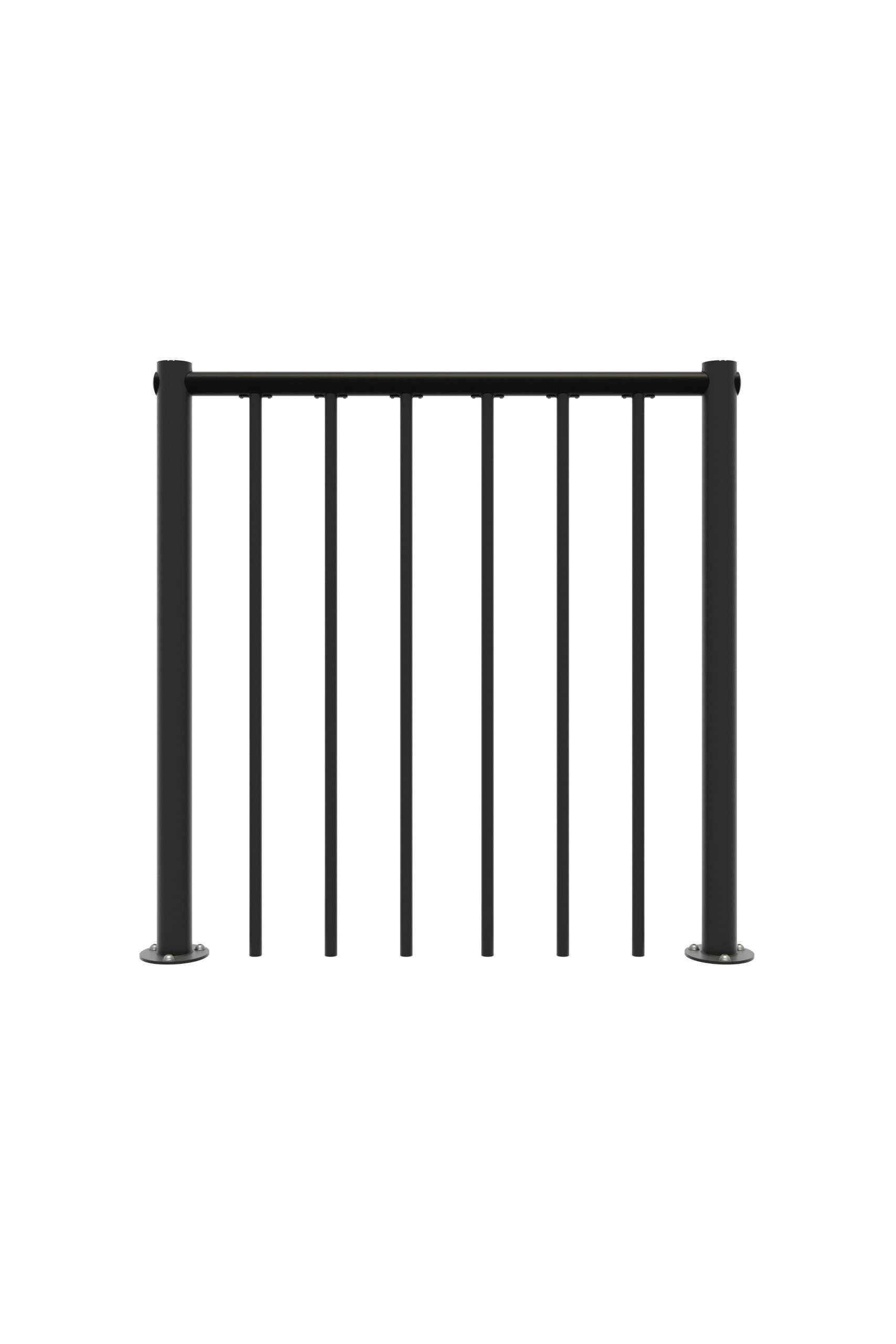 - Vertikale Geländerstäbe pulverbeschichtet in Grau, Schwarz oder Weiß