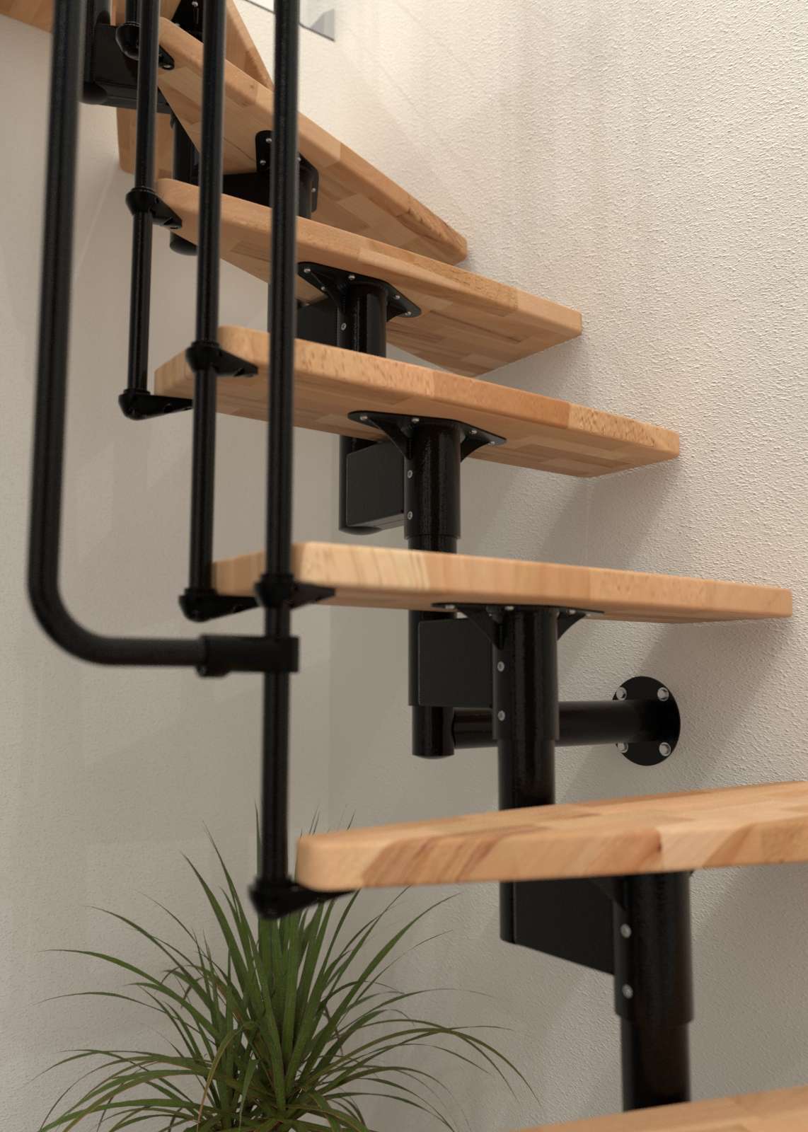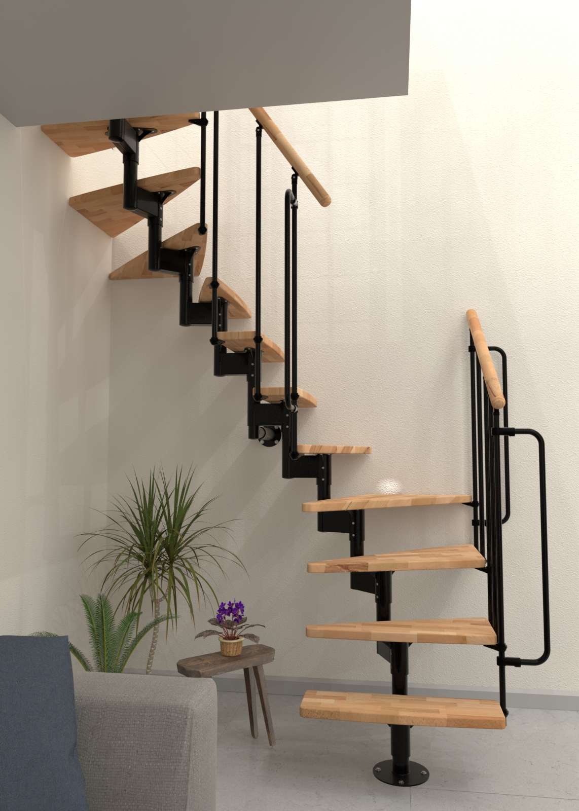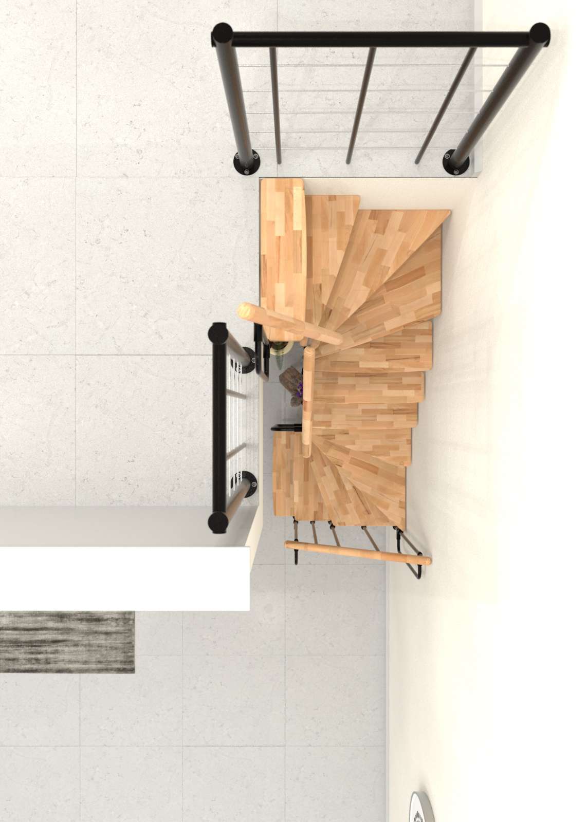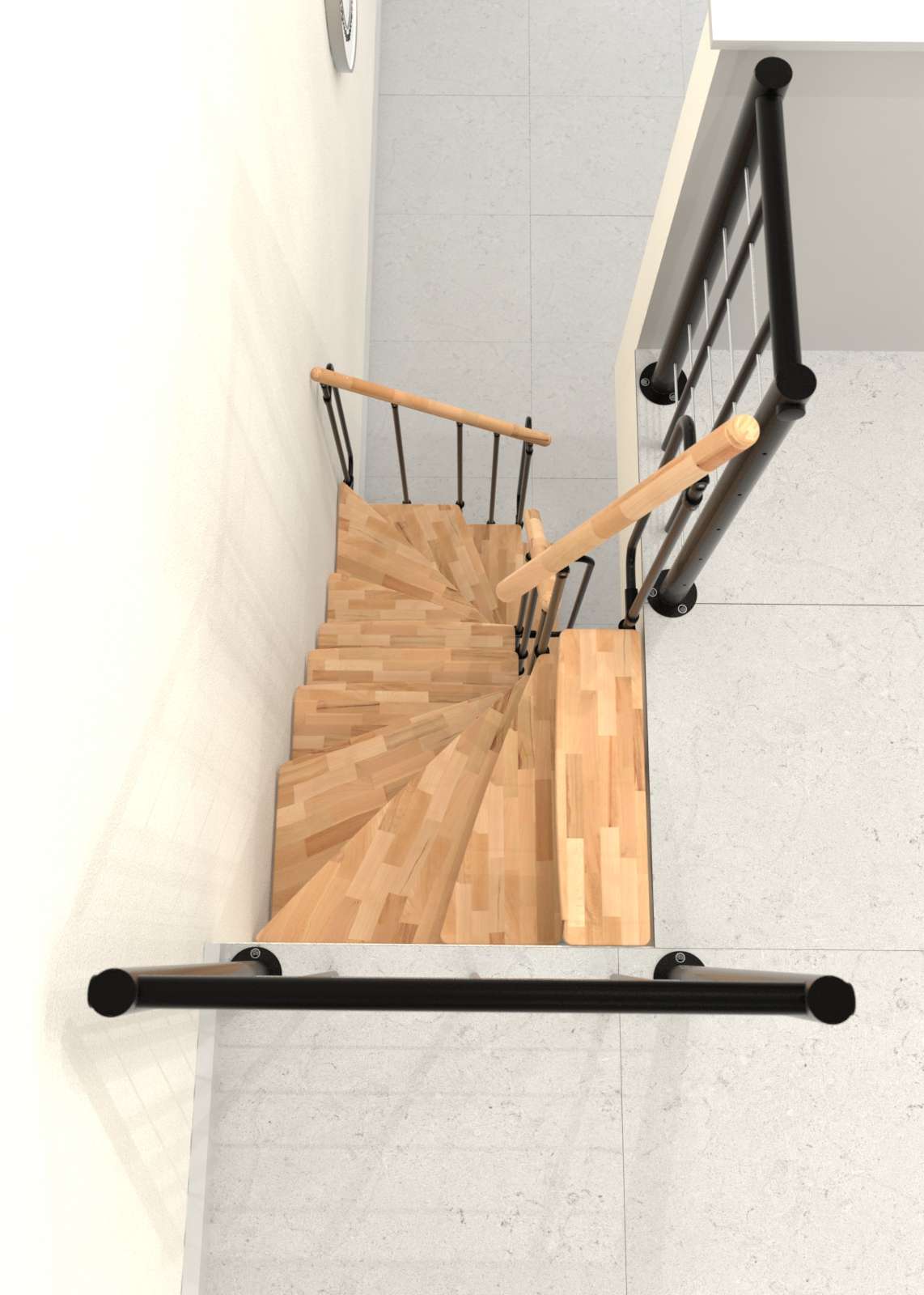 • Mögliche Holzarten für die Stufen und den Handlauf: Buche lackiert oder Buche zu Walnuss gebeizt