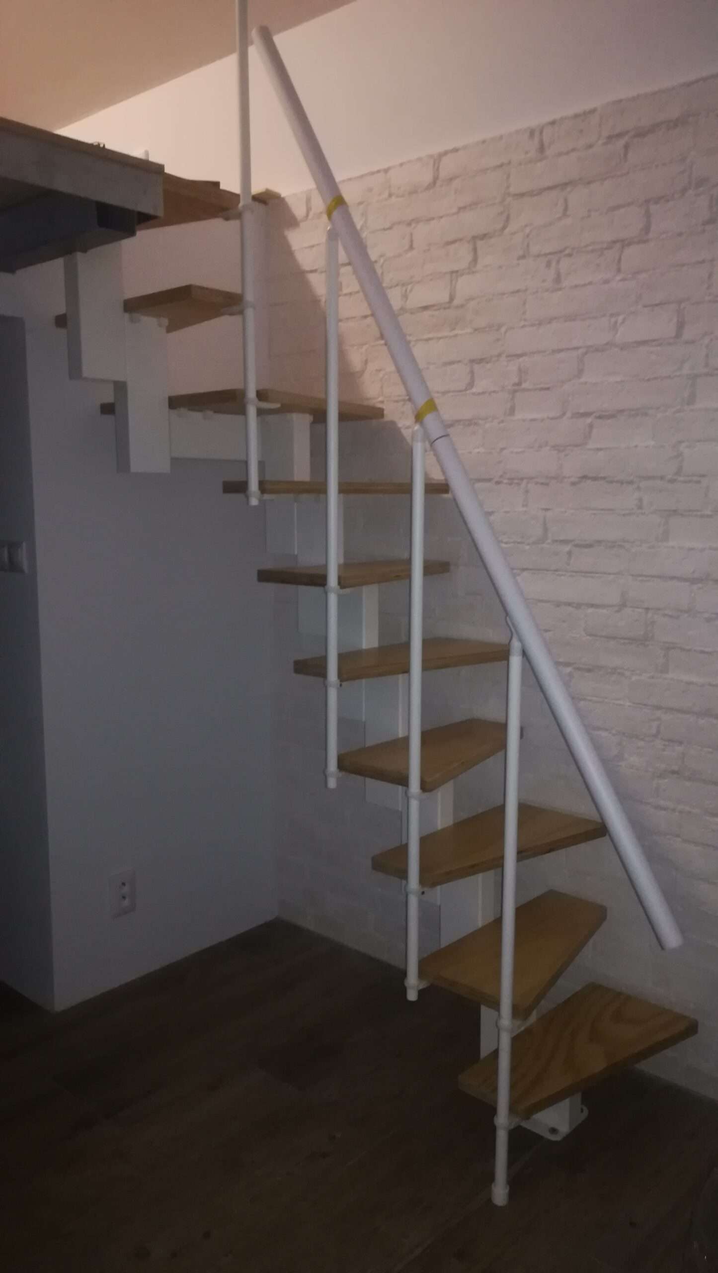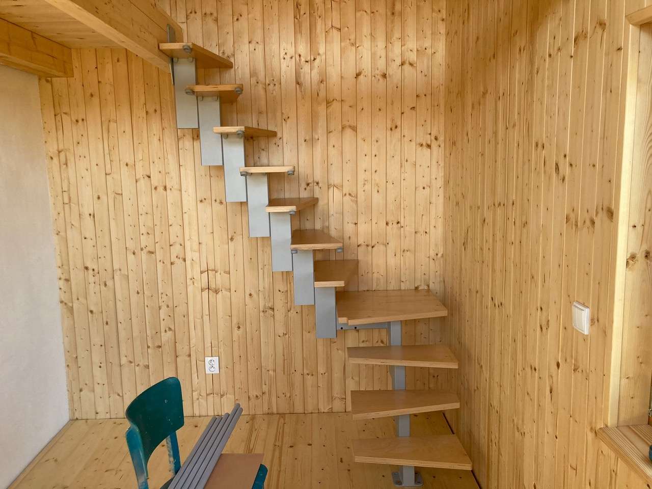 Diese kompakte Raumspartreppe kombiniert Platzersparnis, Funktionalität und Sicherheit in einem durchdachten System. Die dreieckigen Stufen, das Pfosten‑Geländer und der elegante Holzhandlauf machen sie zu einer idealen Lösung für Räume, in denen jeder Zentimeter zählt – ohne Kompromisse bei Komfort oder Stabilität.