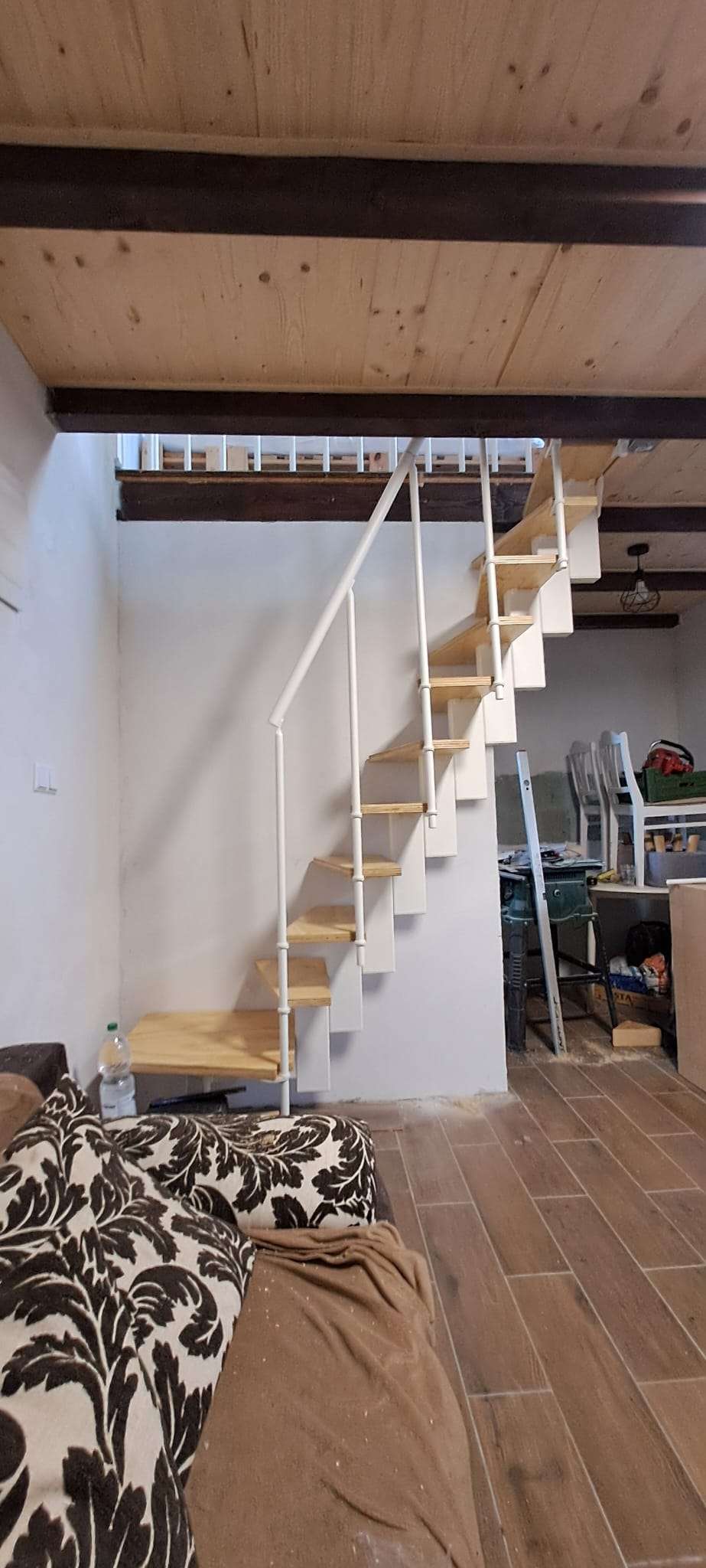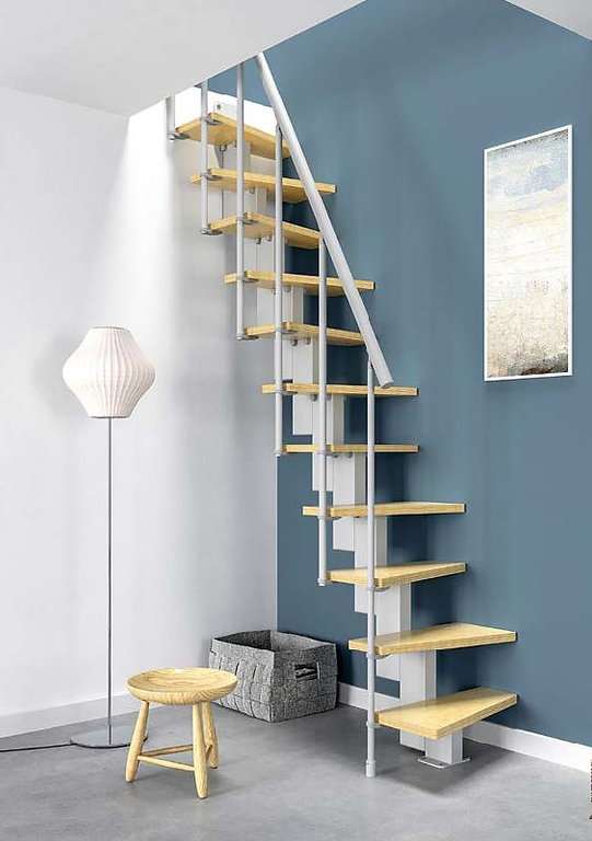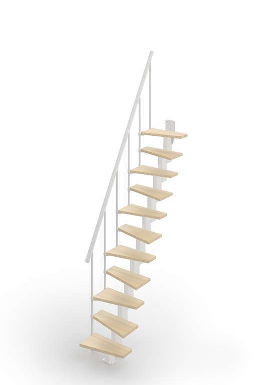 Diese kompakte Raumspartreppe kombiniert Platzersparnis, Funktionalität und Sicherheit in einem durchdachten System. Die dreieckigen Stufen, das Pfosten‑Geländer und der elegante Holzhandlauf machen sie zu einer idealen Lösung für Räume, in denen jeder Zentimeter zählt – ohne Kompromisse bei Komfort oder Stabilität.