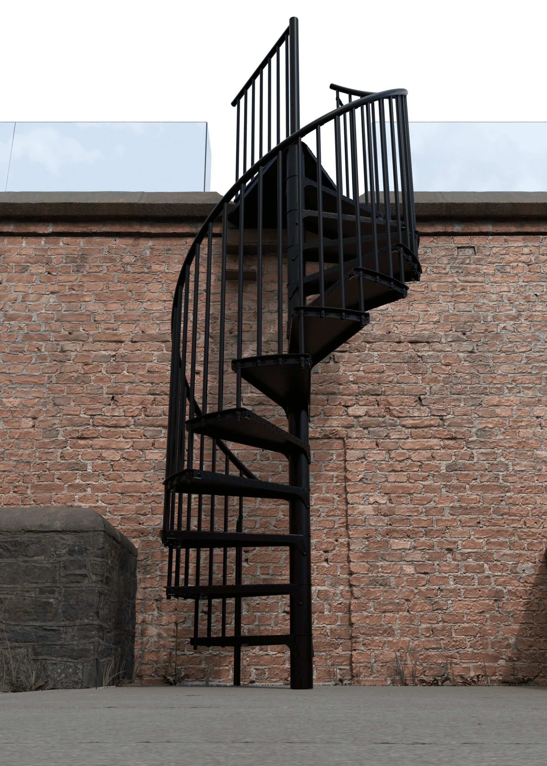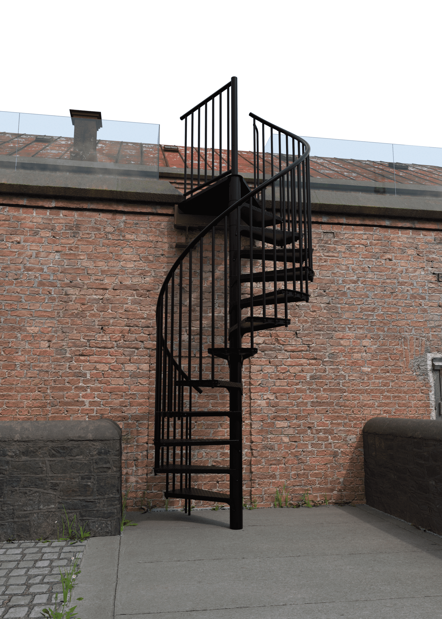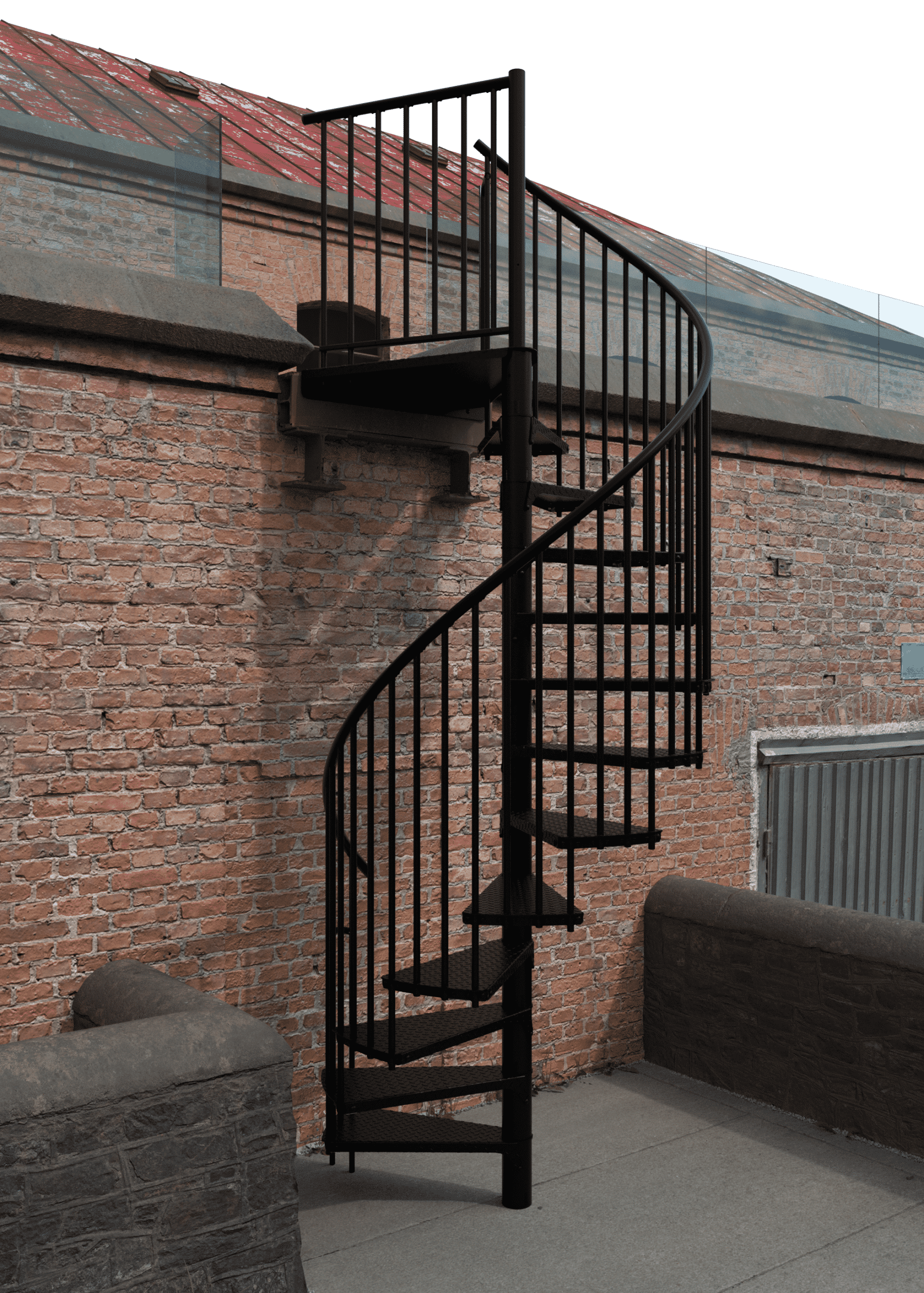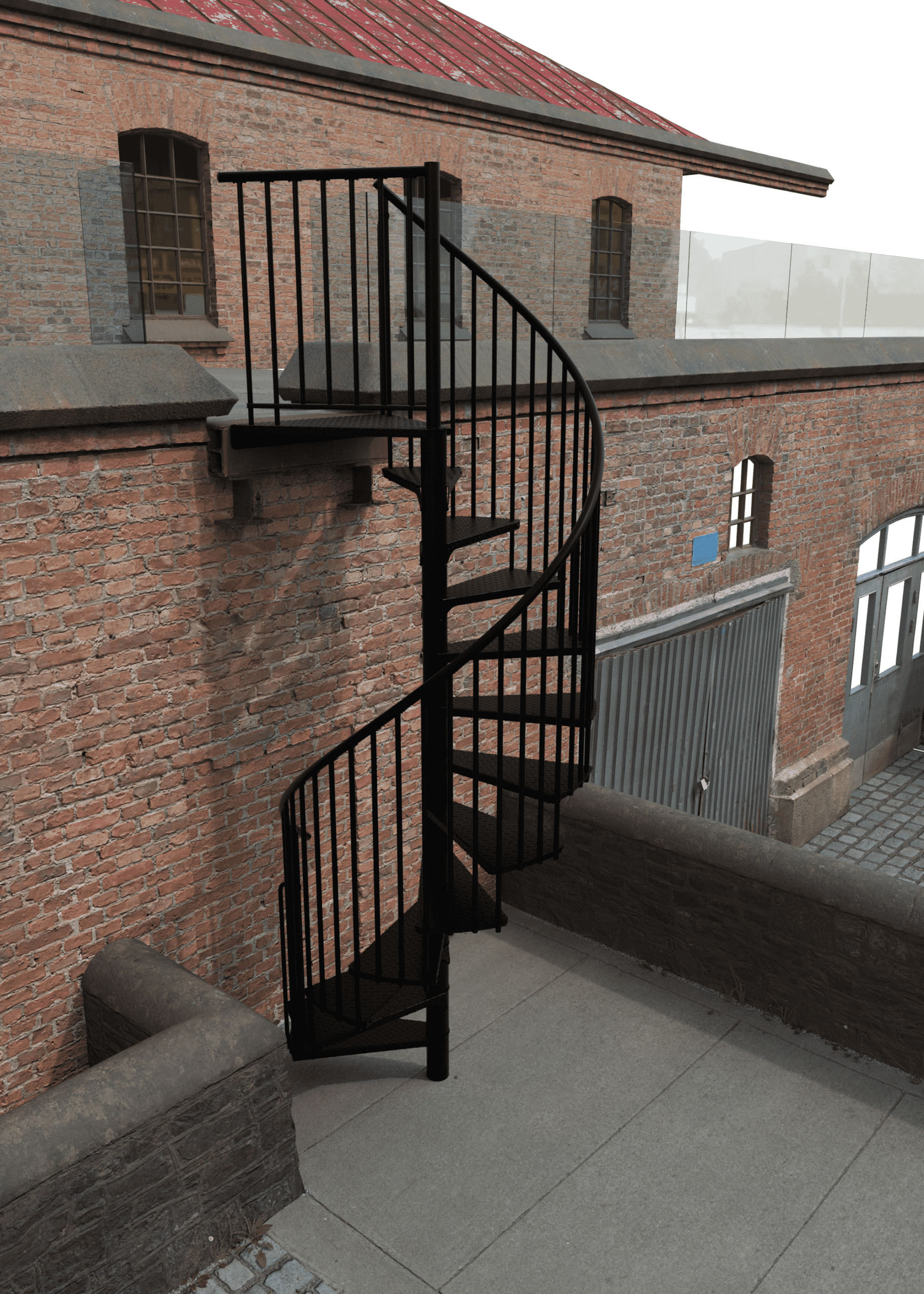 • Pulverbeschichtete Spindeltreppe für draußen