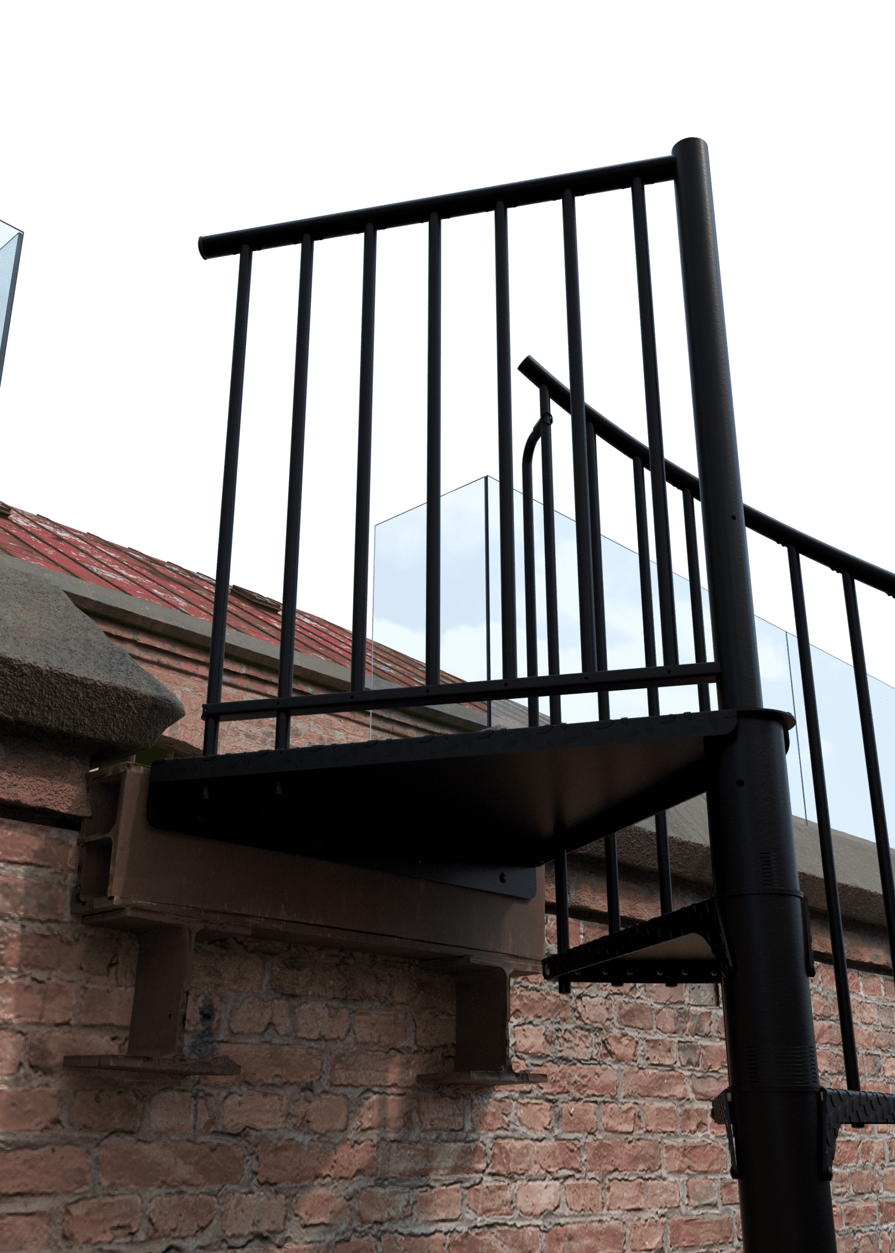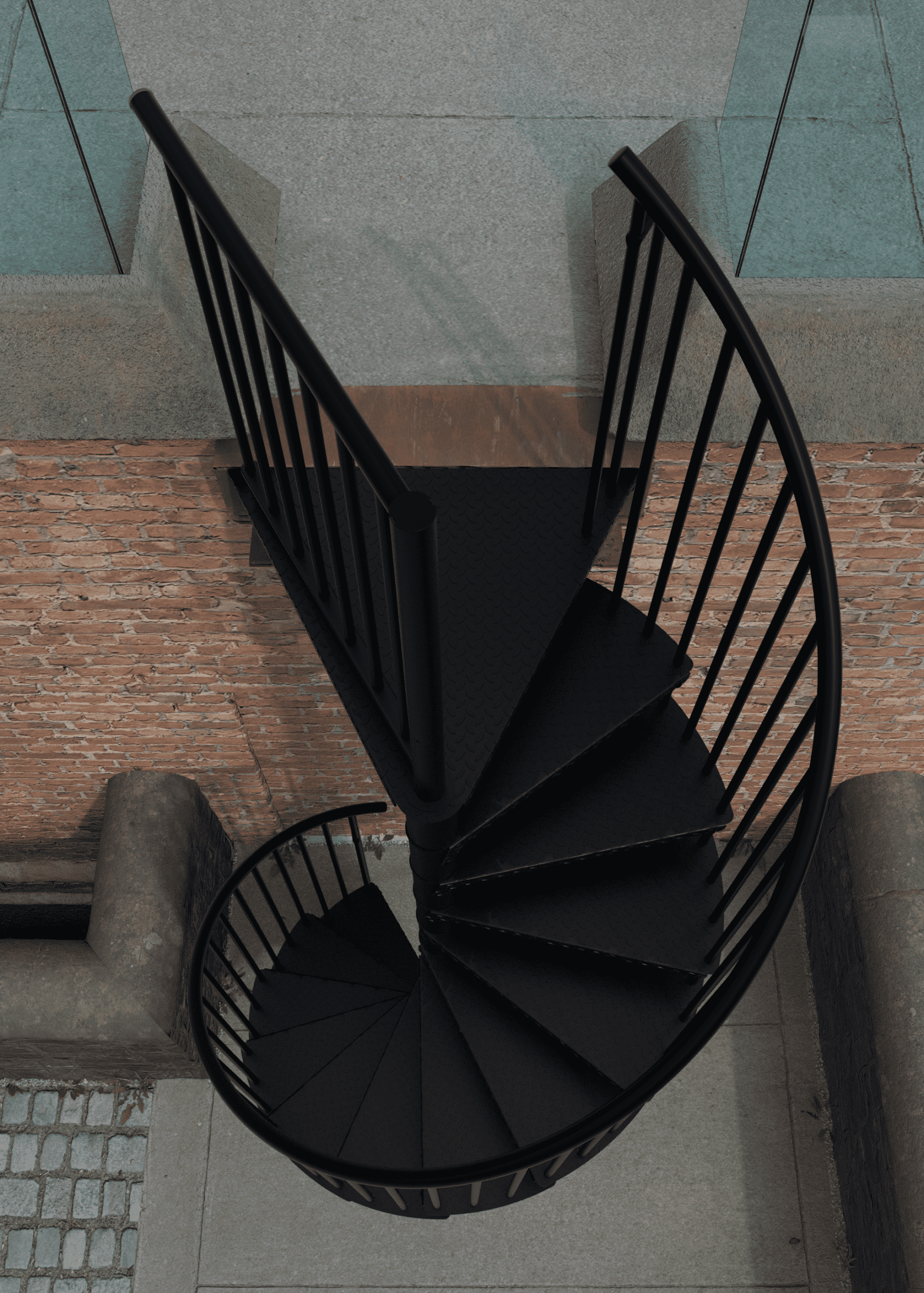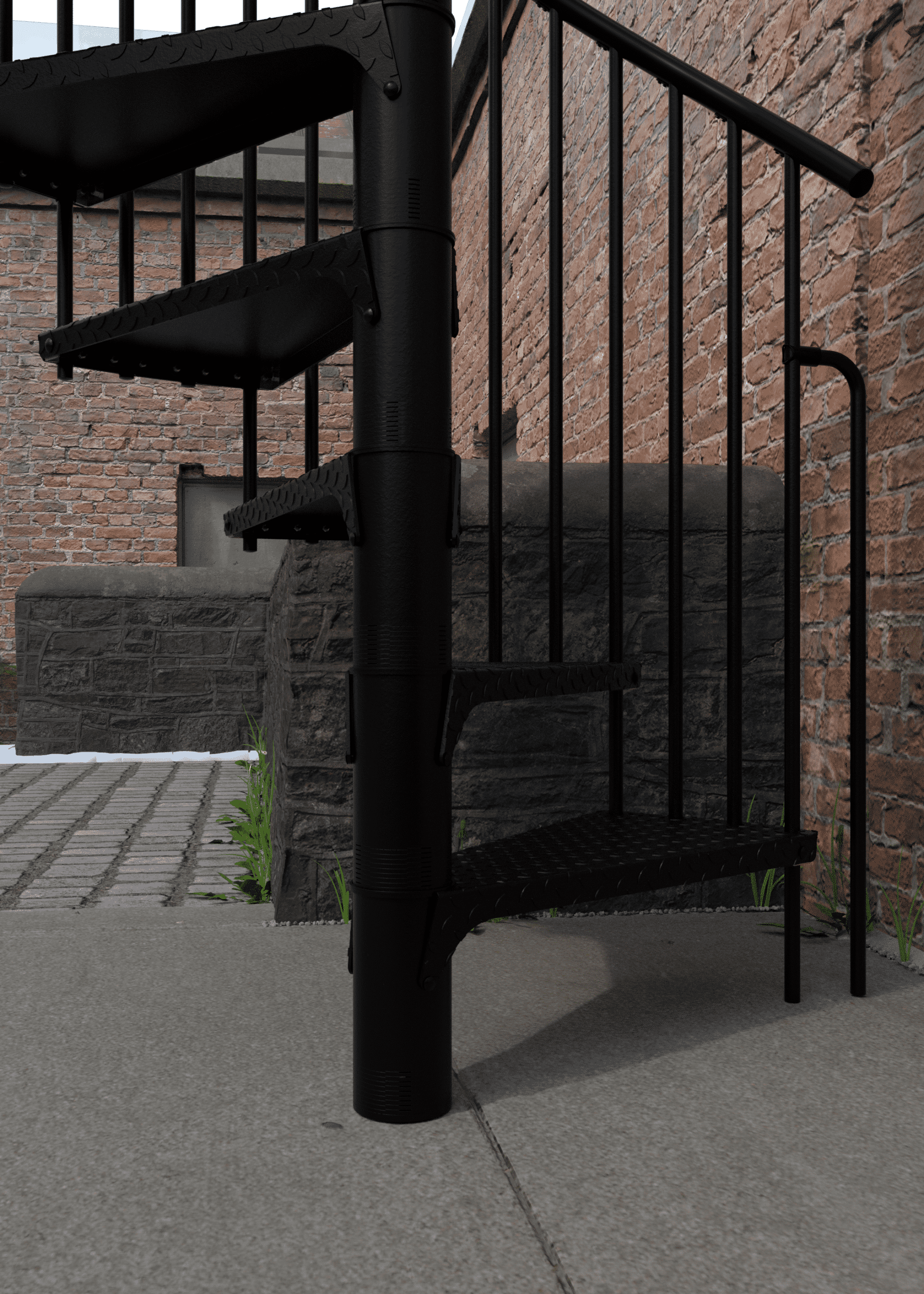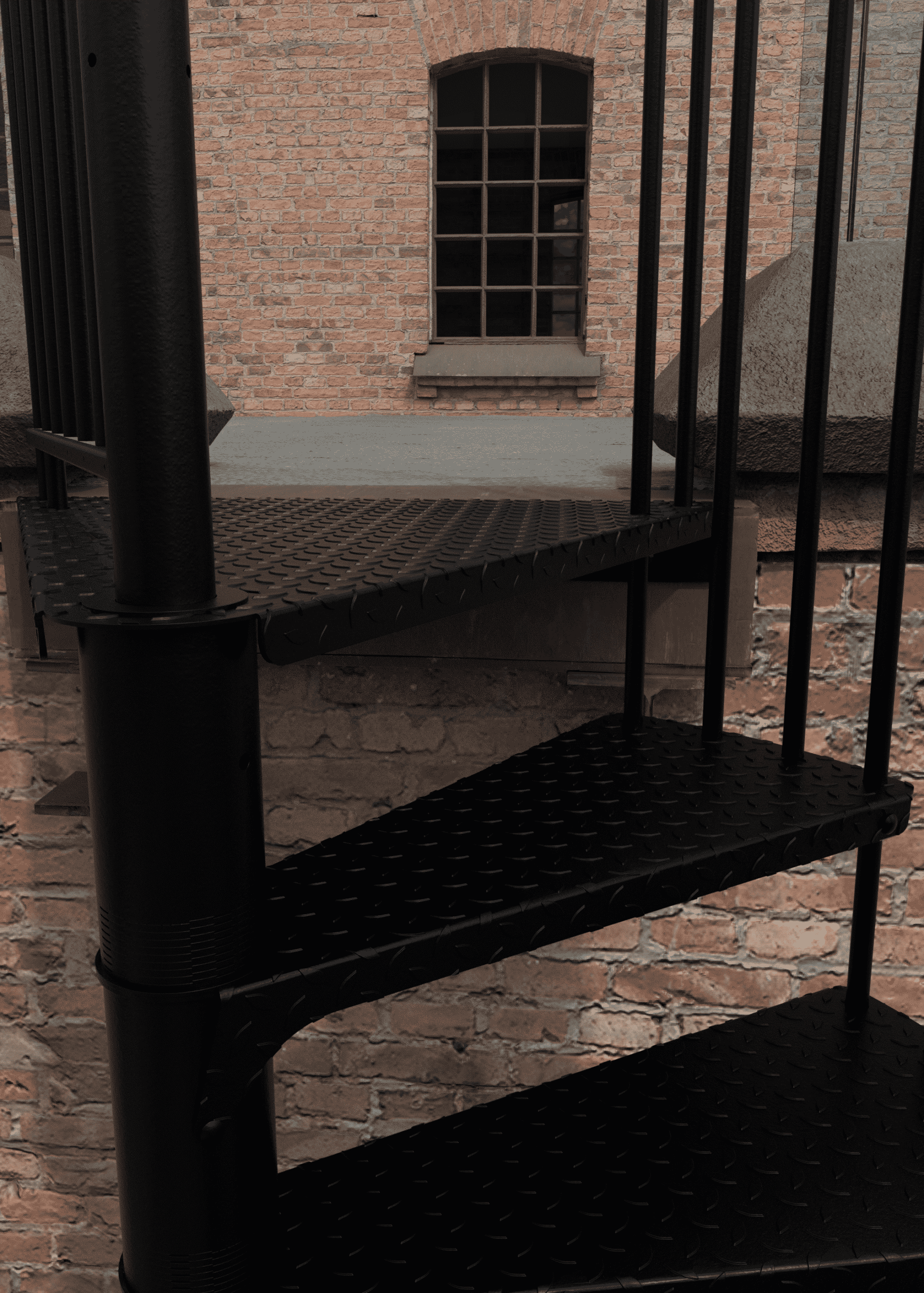 • Pulverbeschichtete Spindeltreppe für draußen