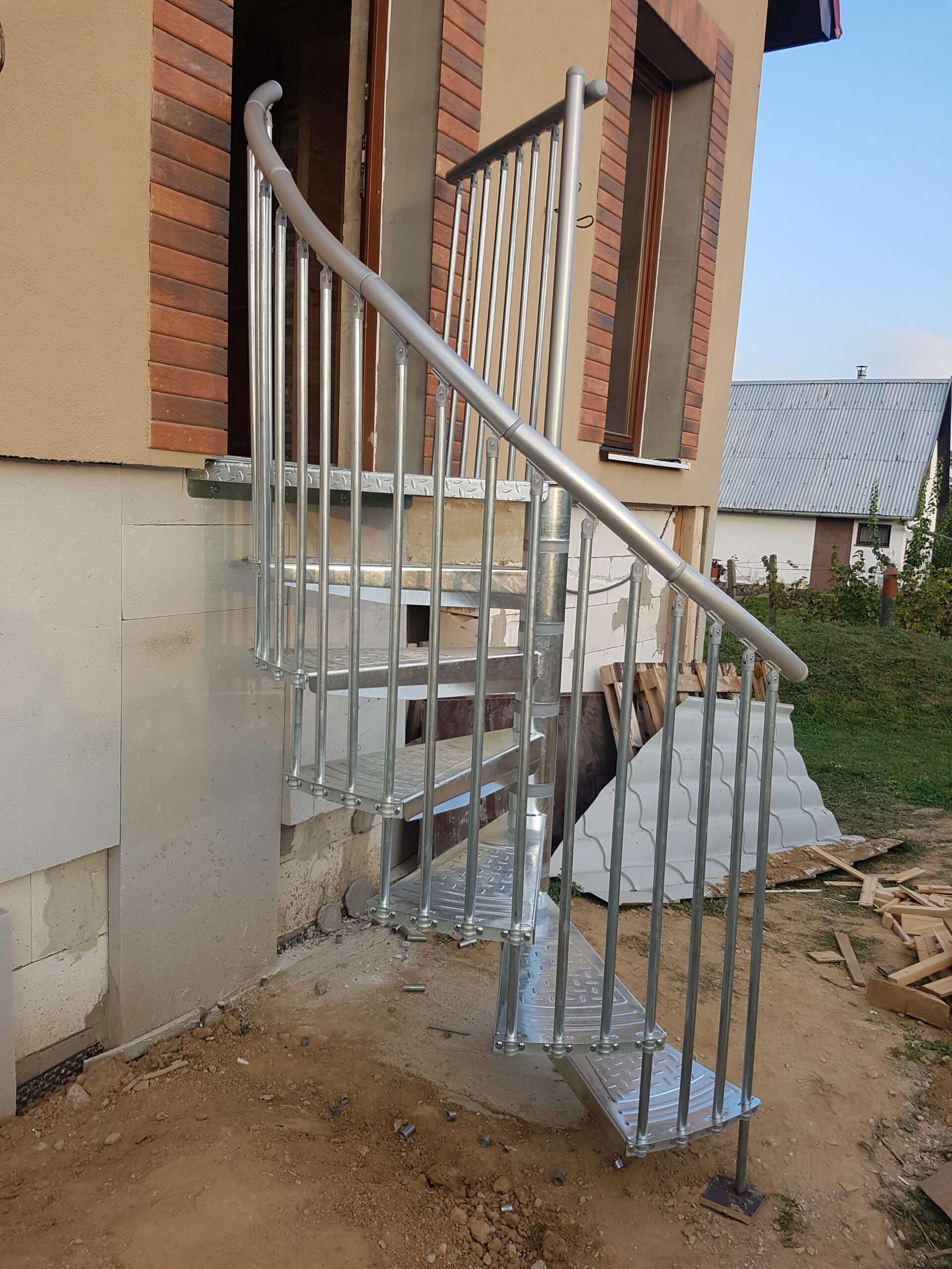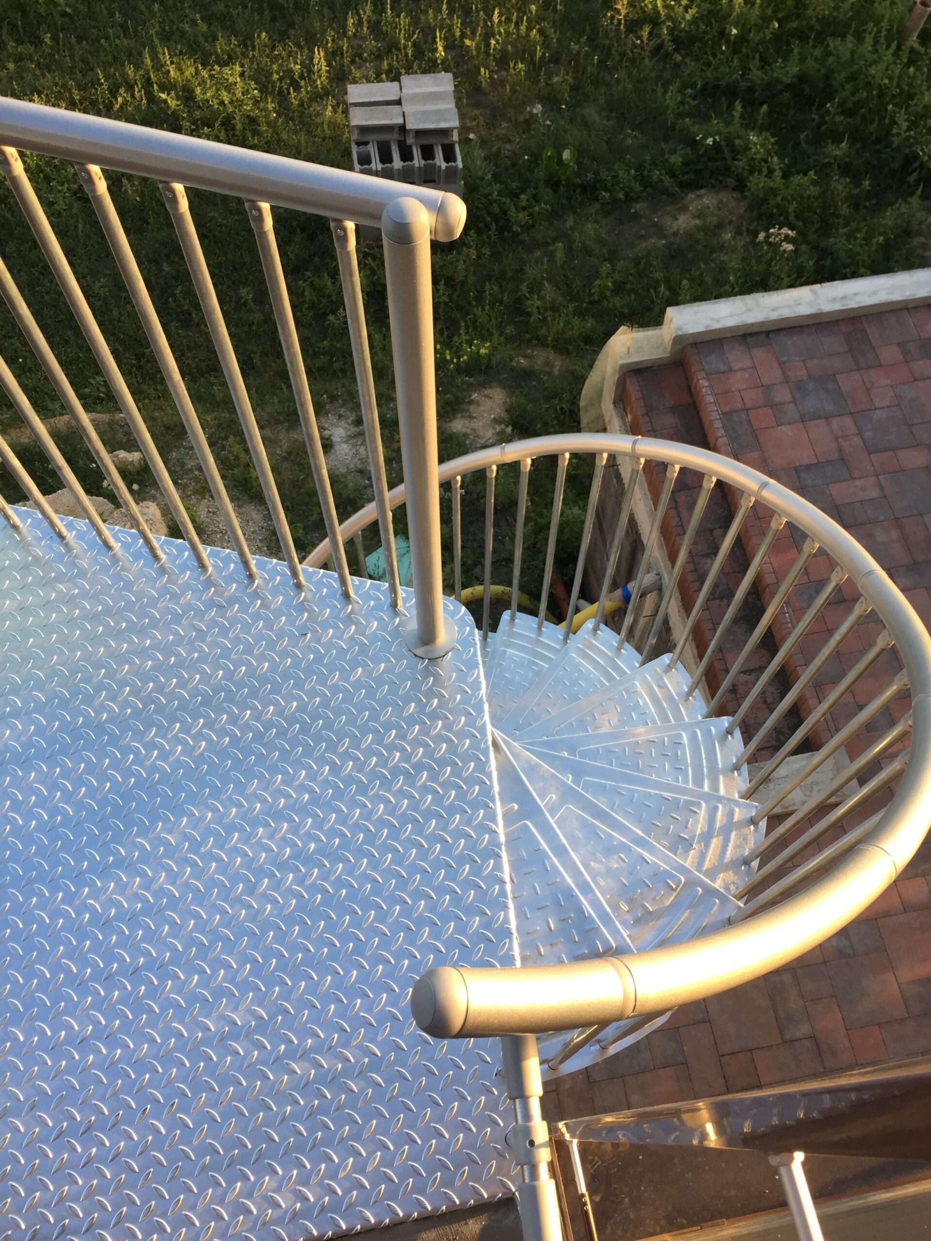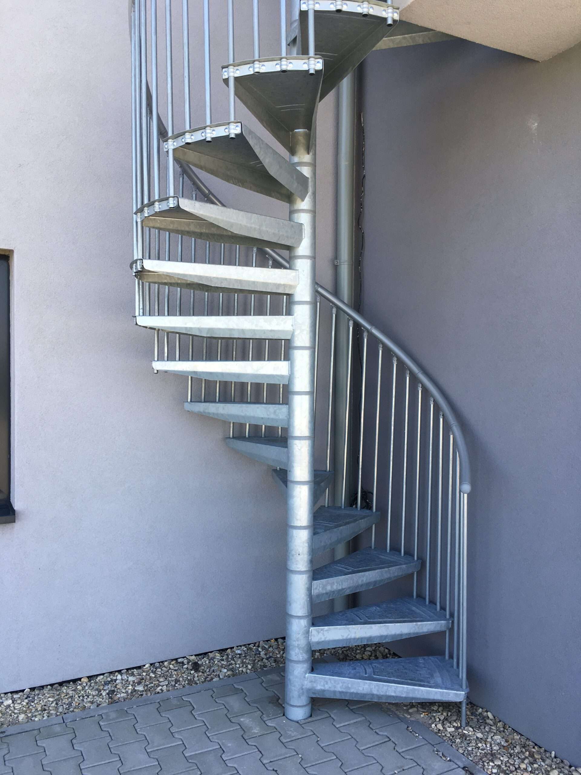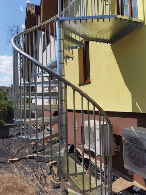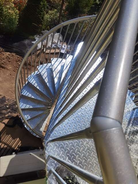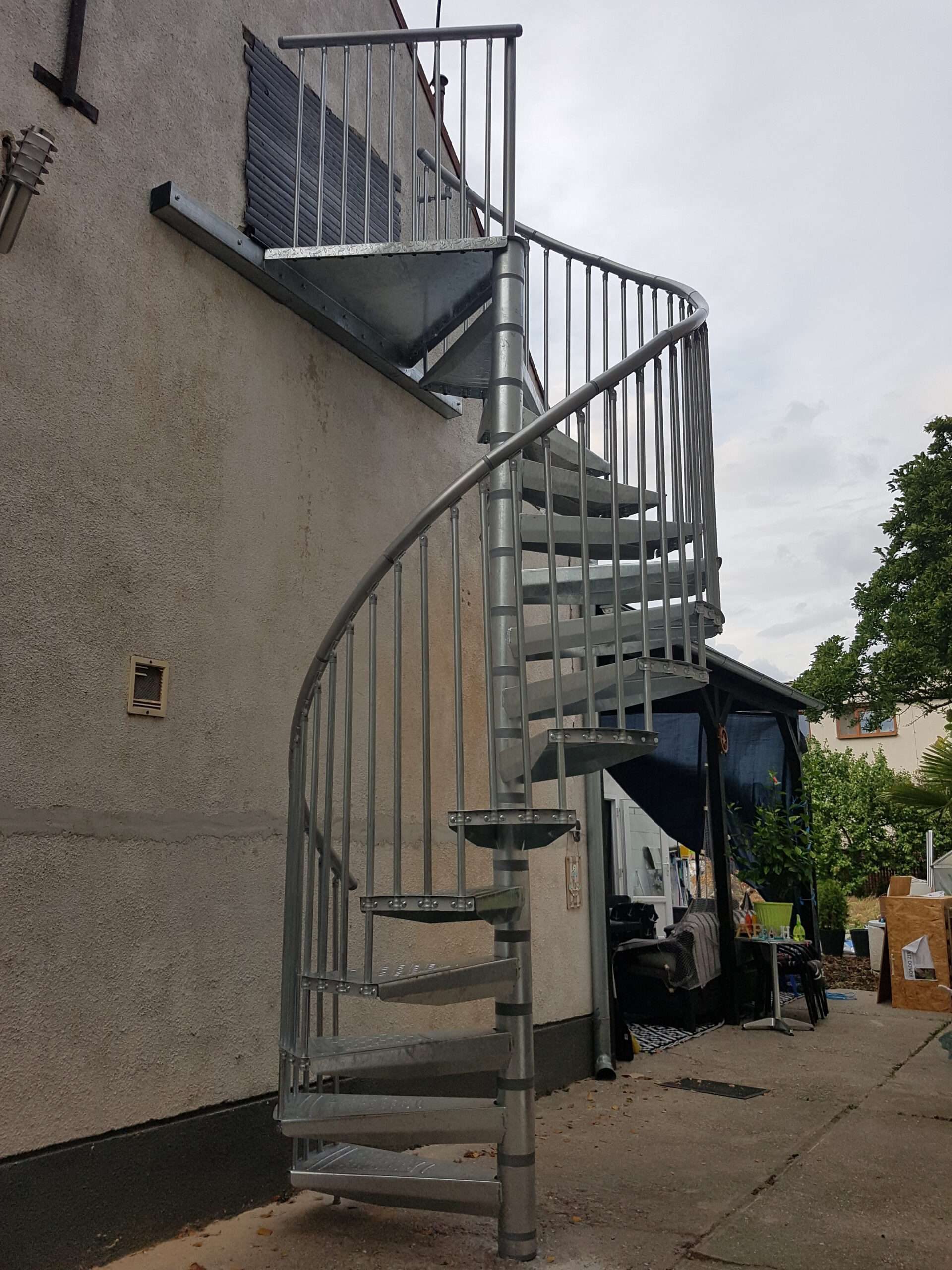 • Gewendelte Außentreppe aus verzinktem Stahl