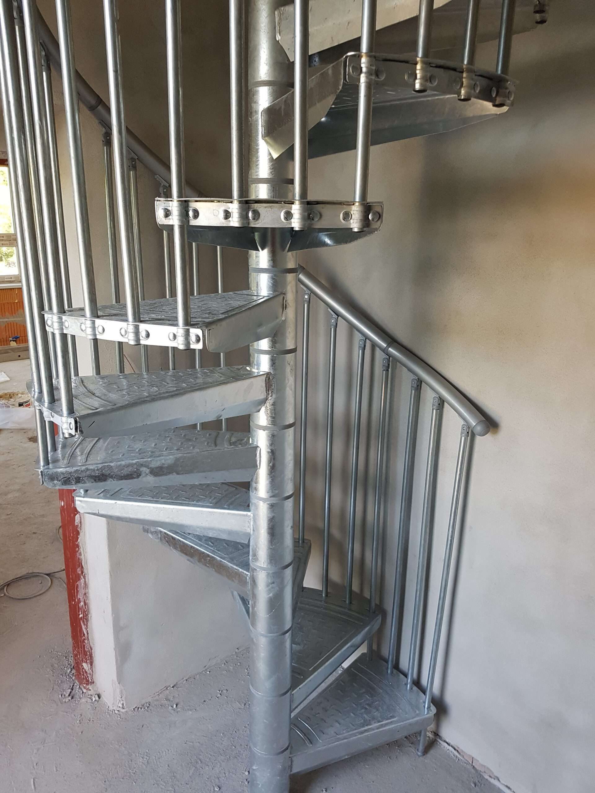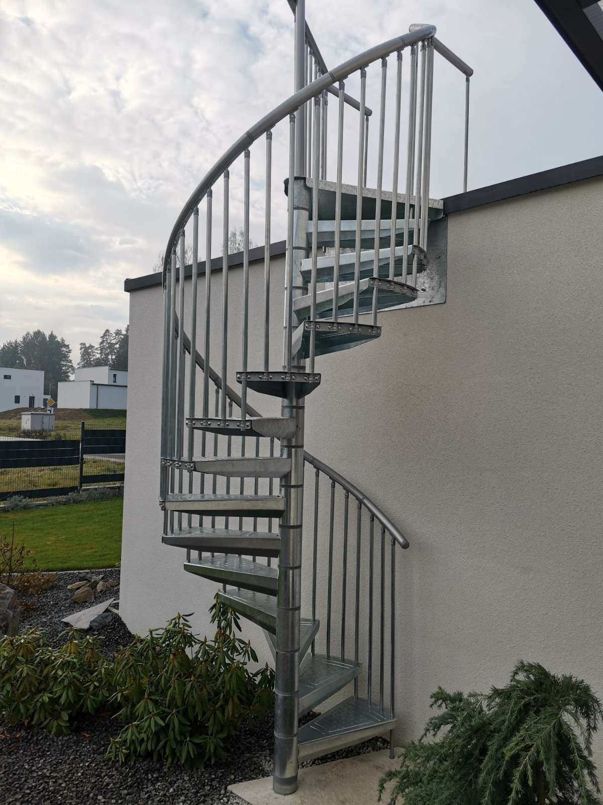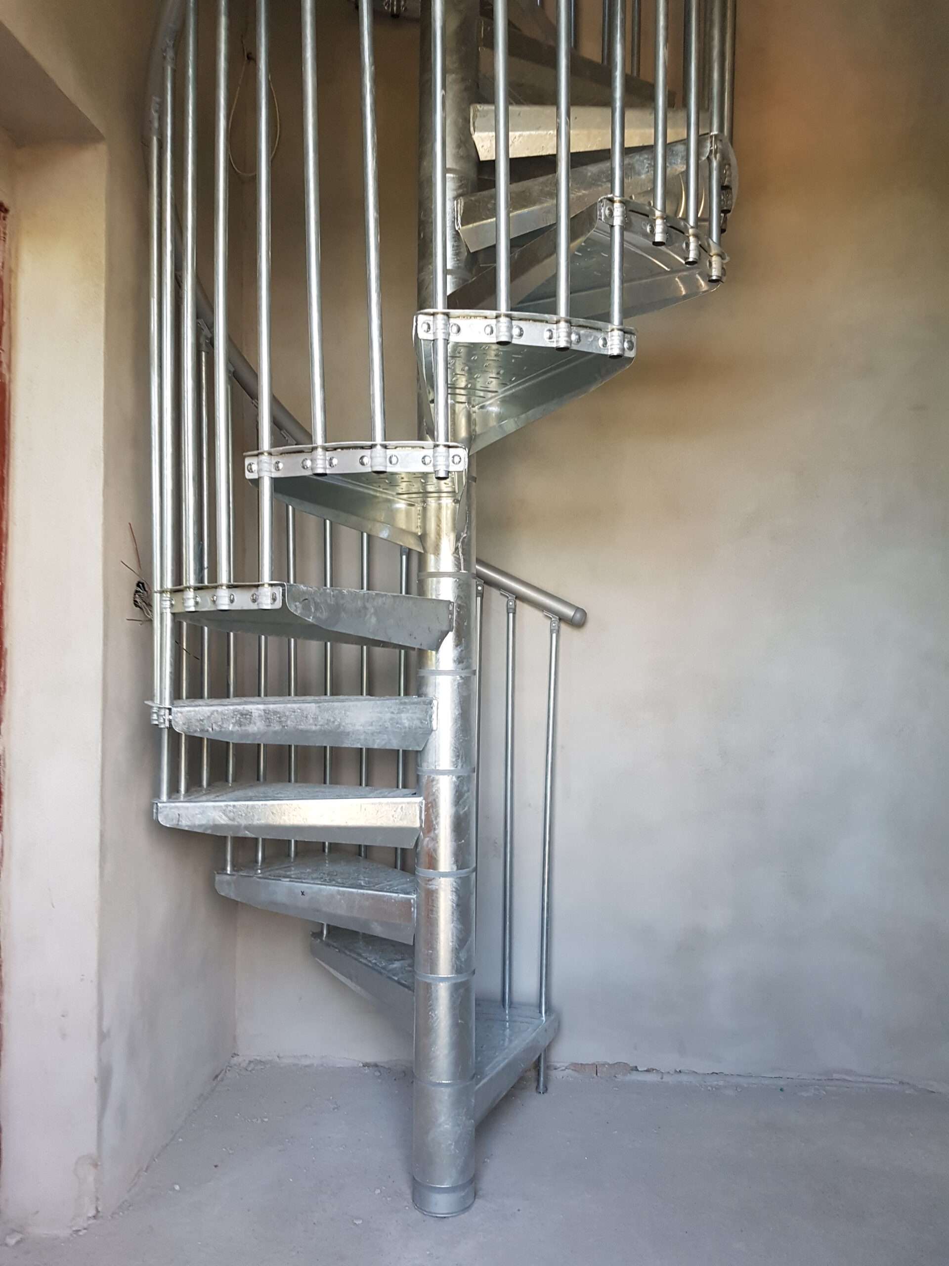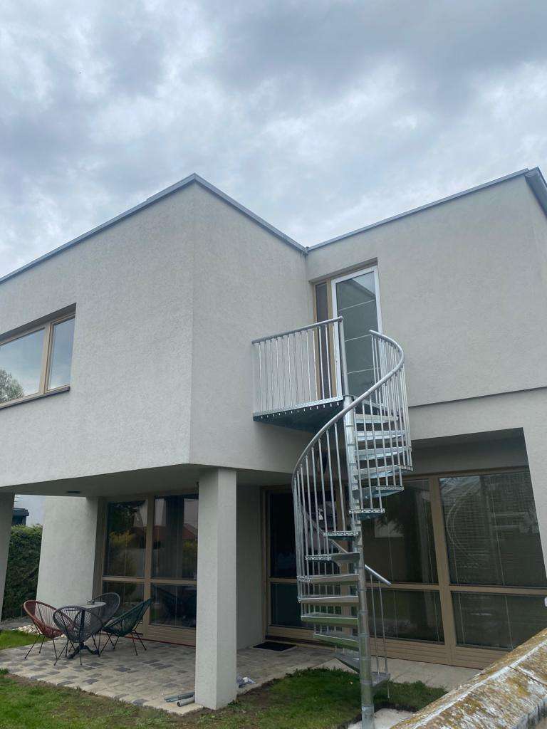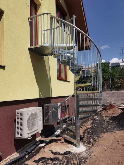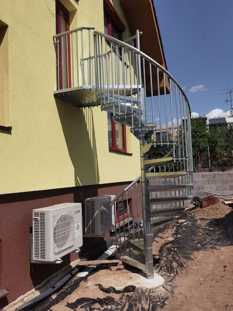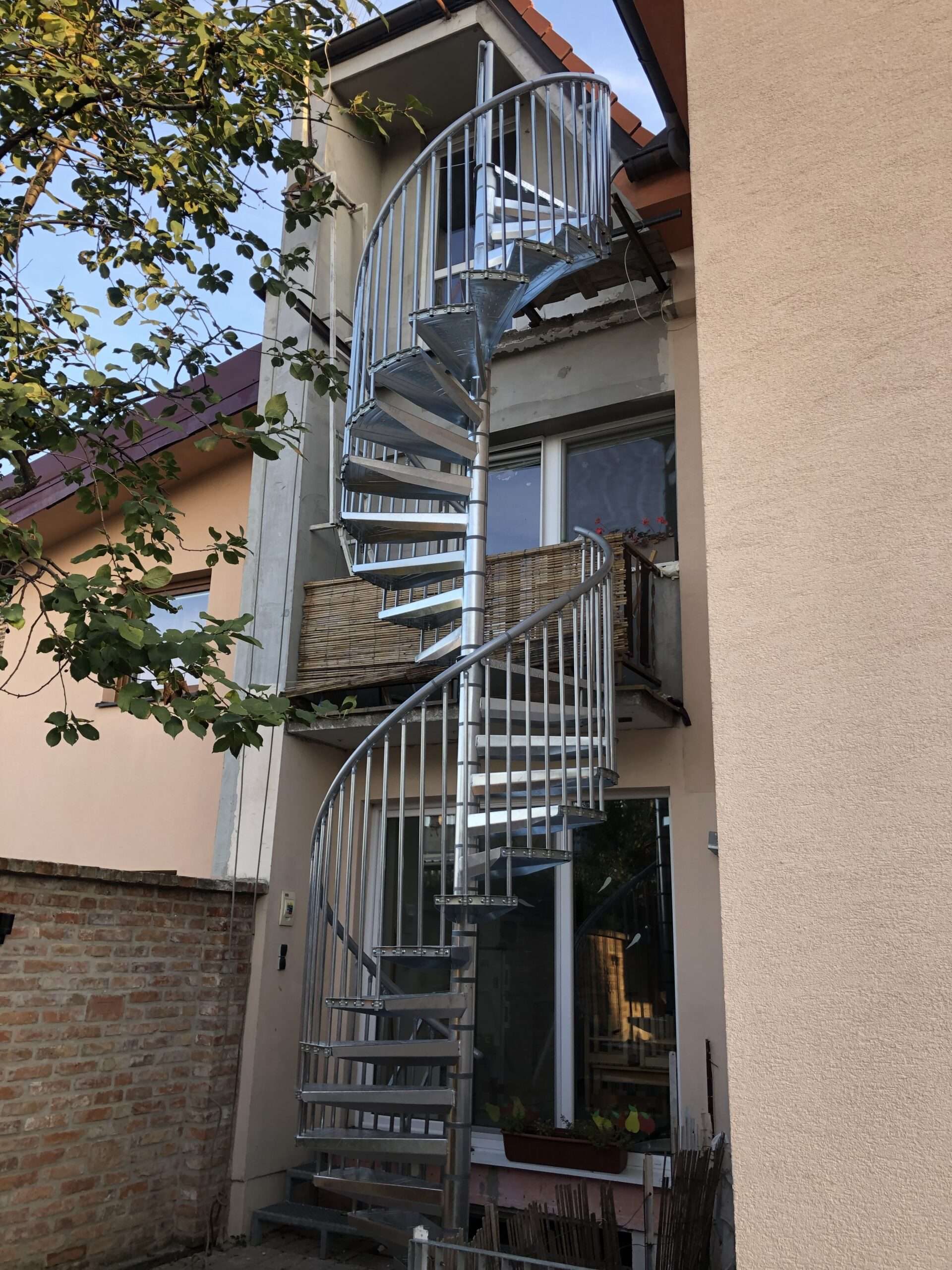 • Gewendelte Außentreppe aus verzinktem Stahl