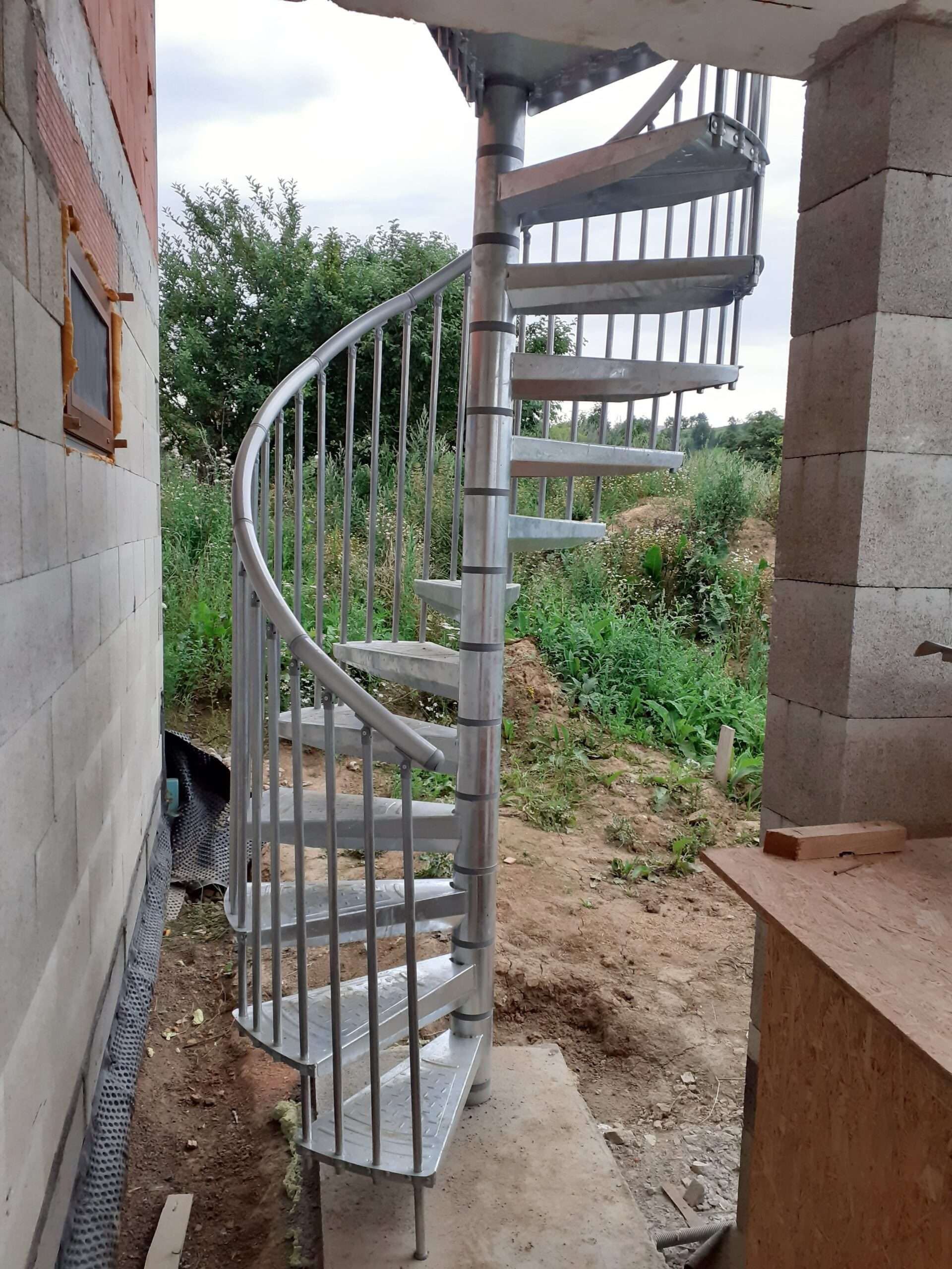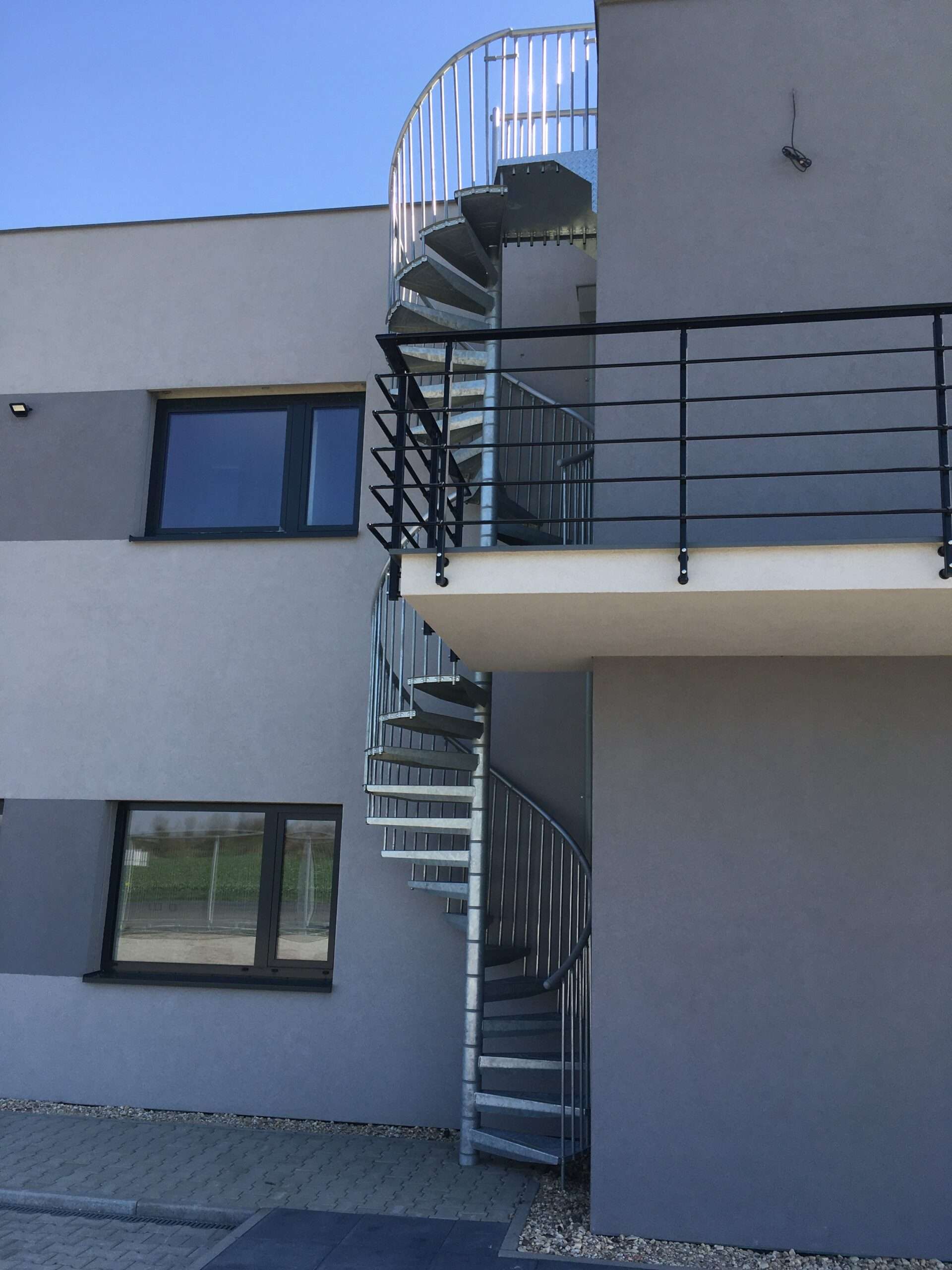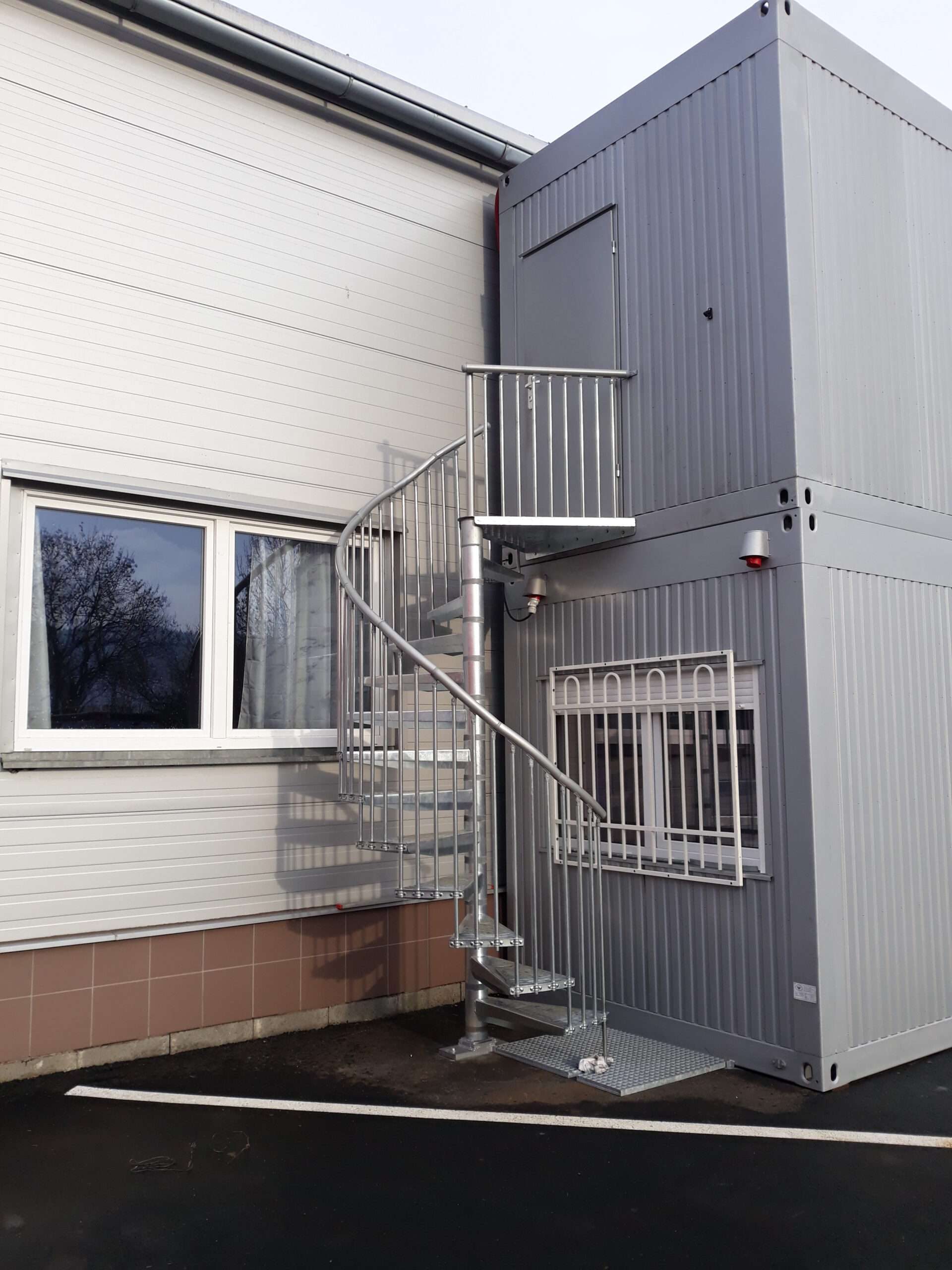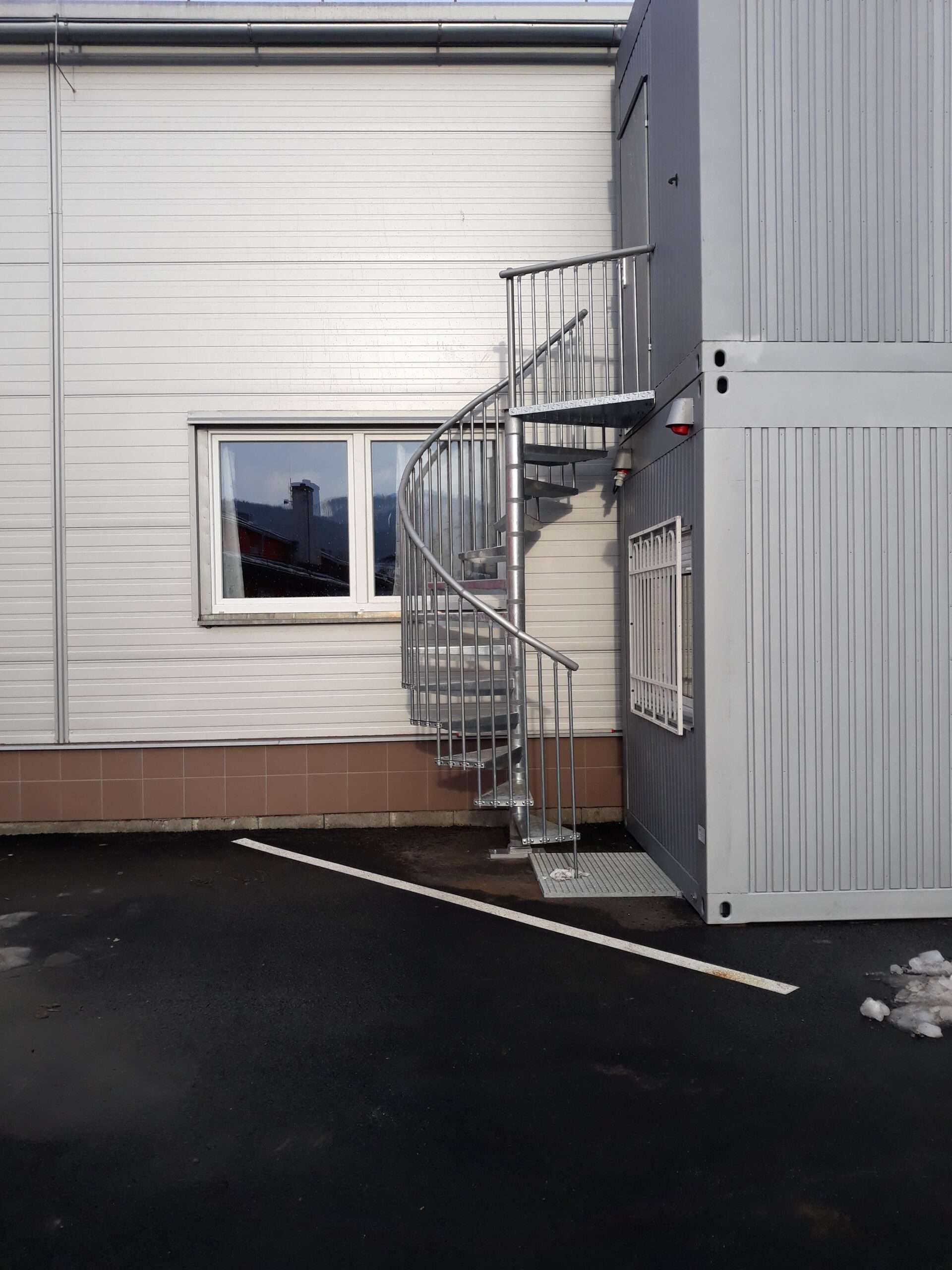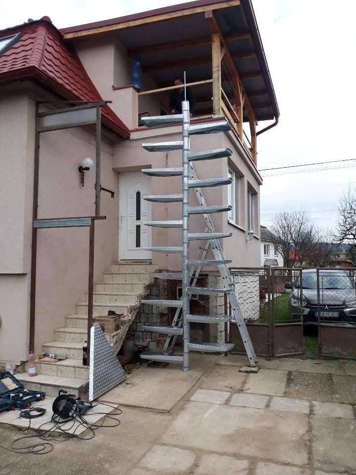 • Gewendelte Außentreppe aus verzinktem Stahl
