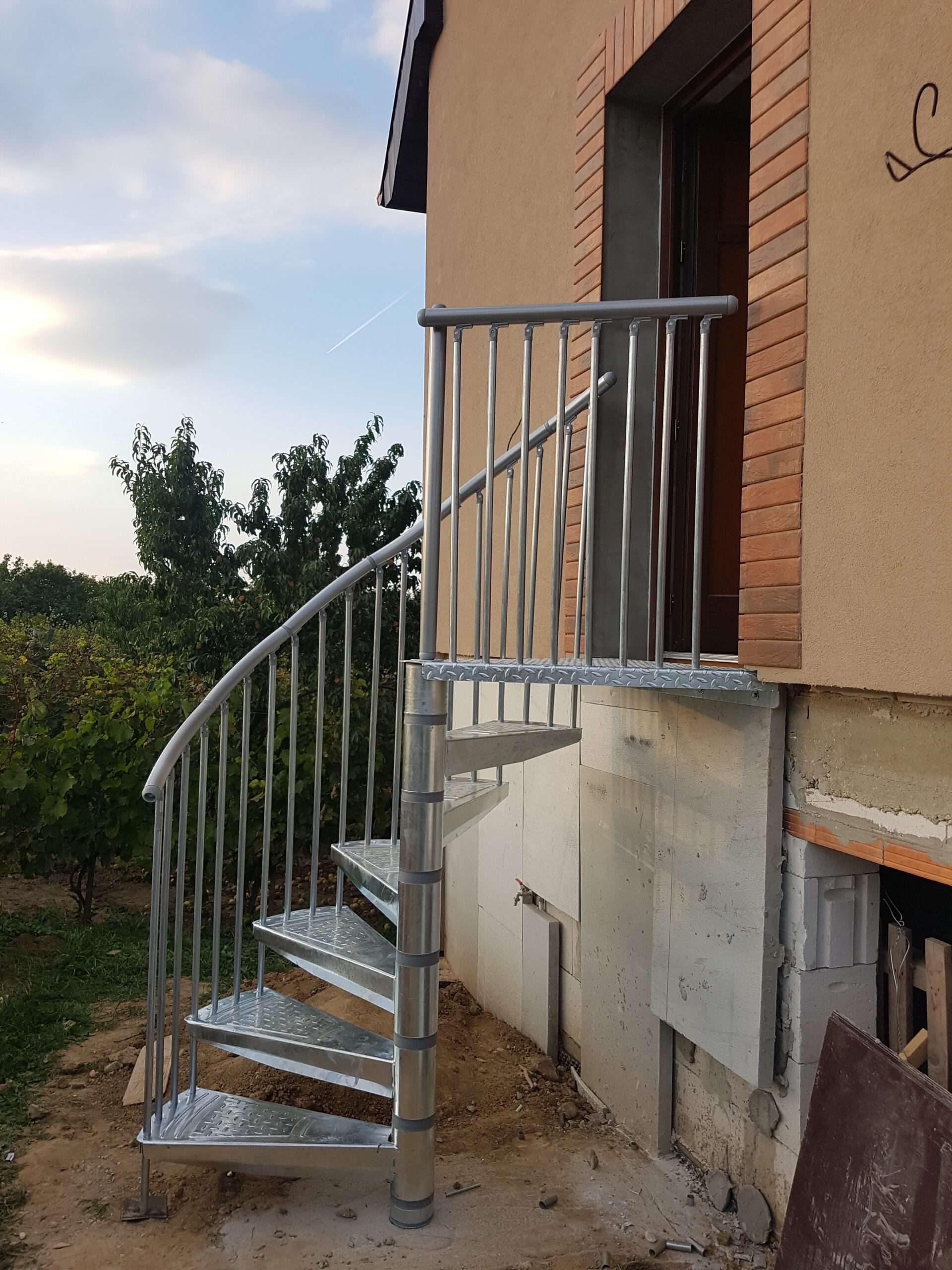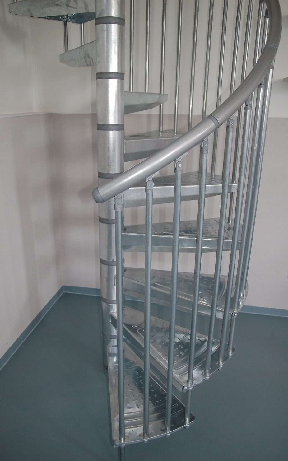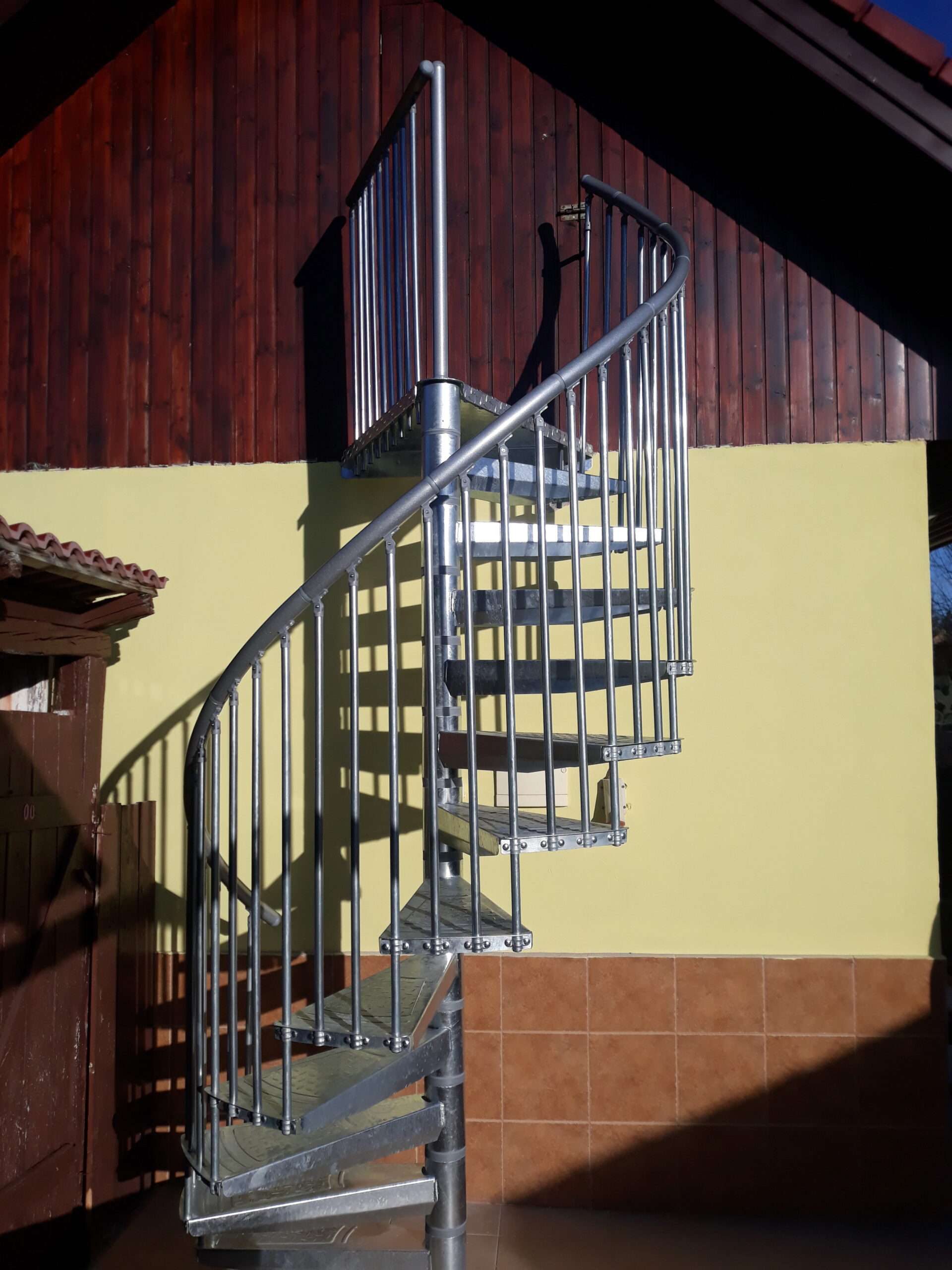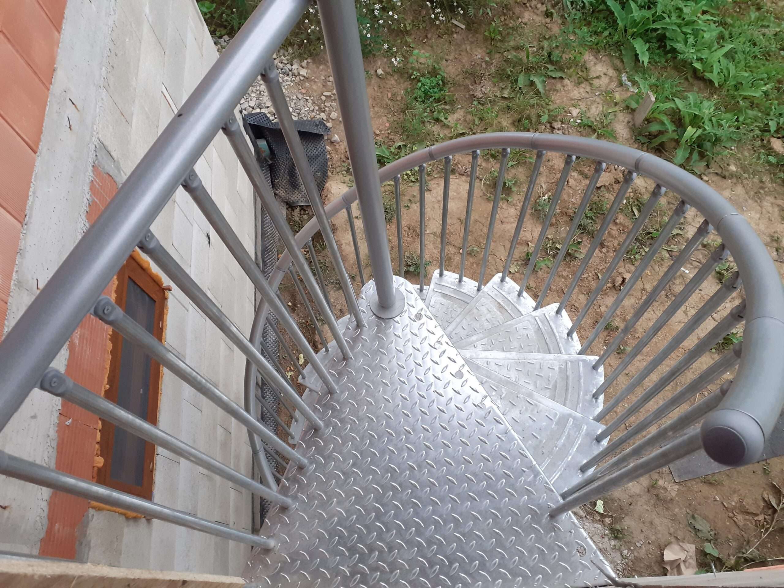 • Gewendelte Außentreppe aus verzinktem Stahl