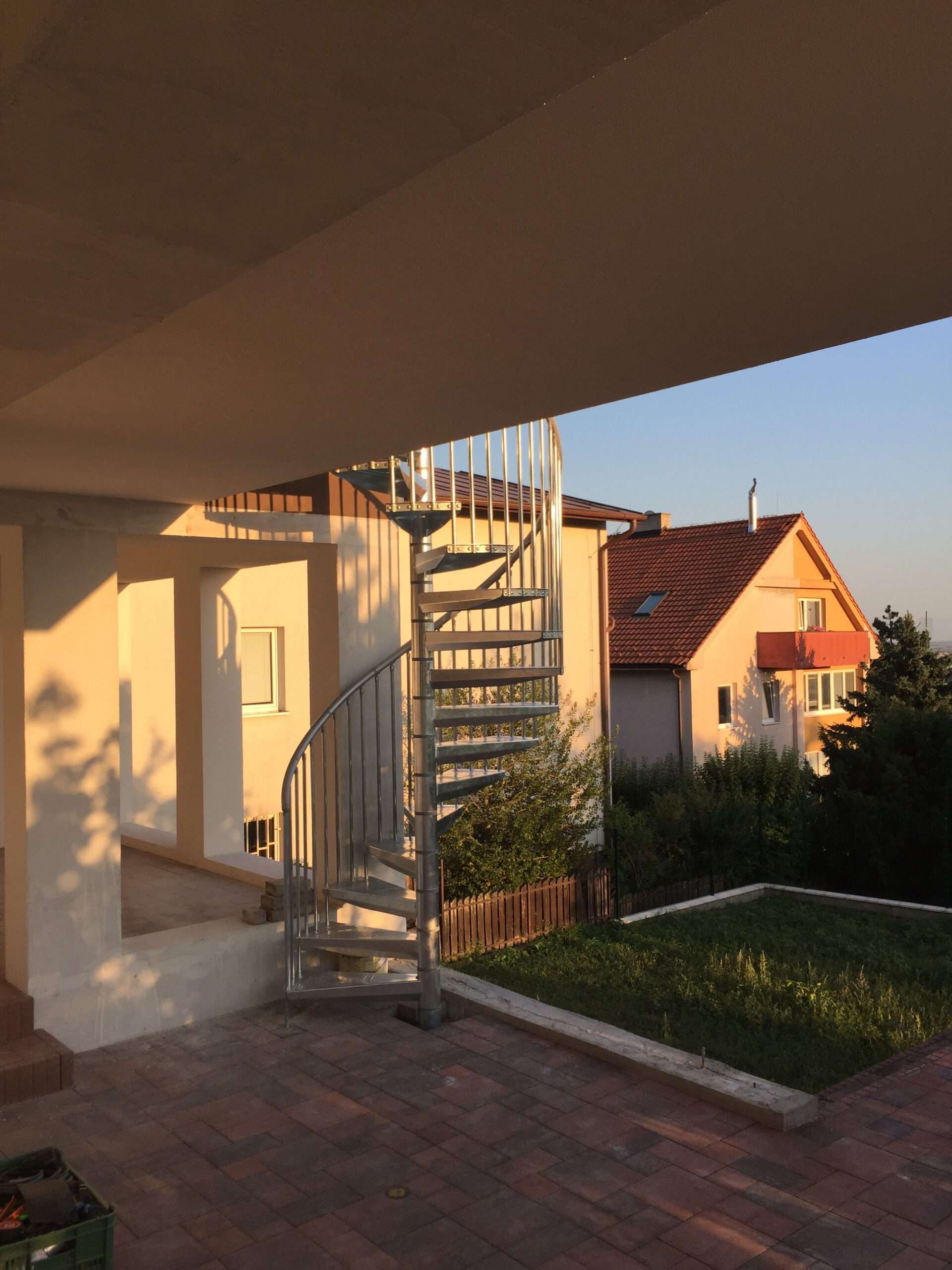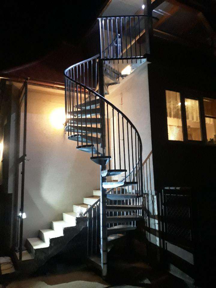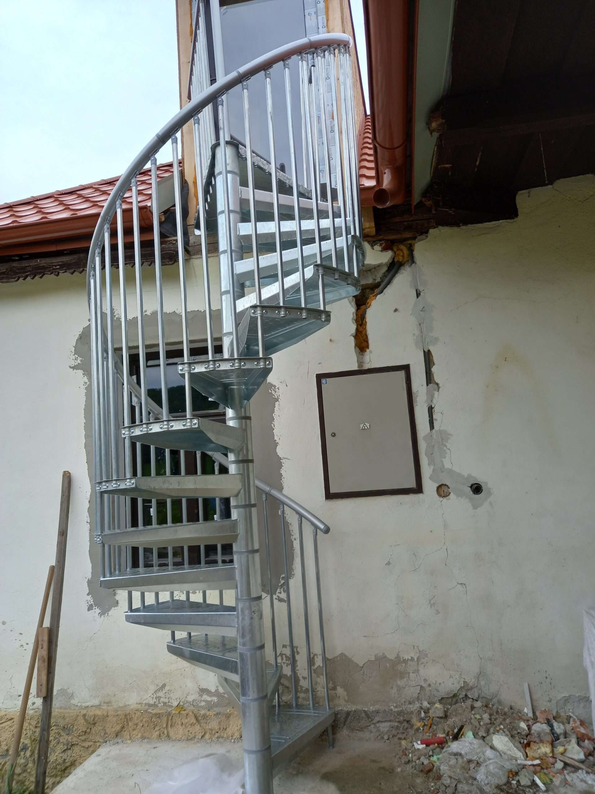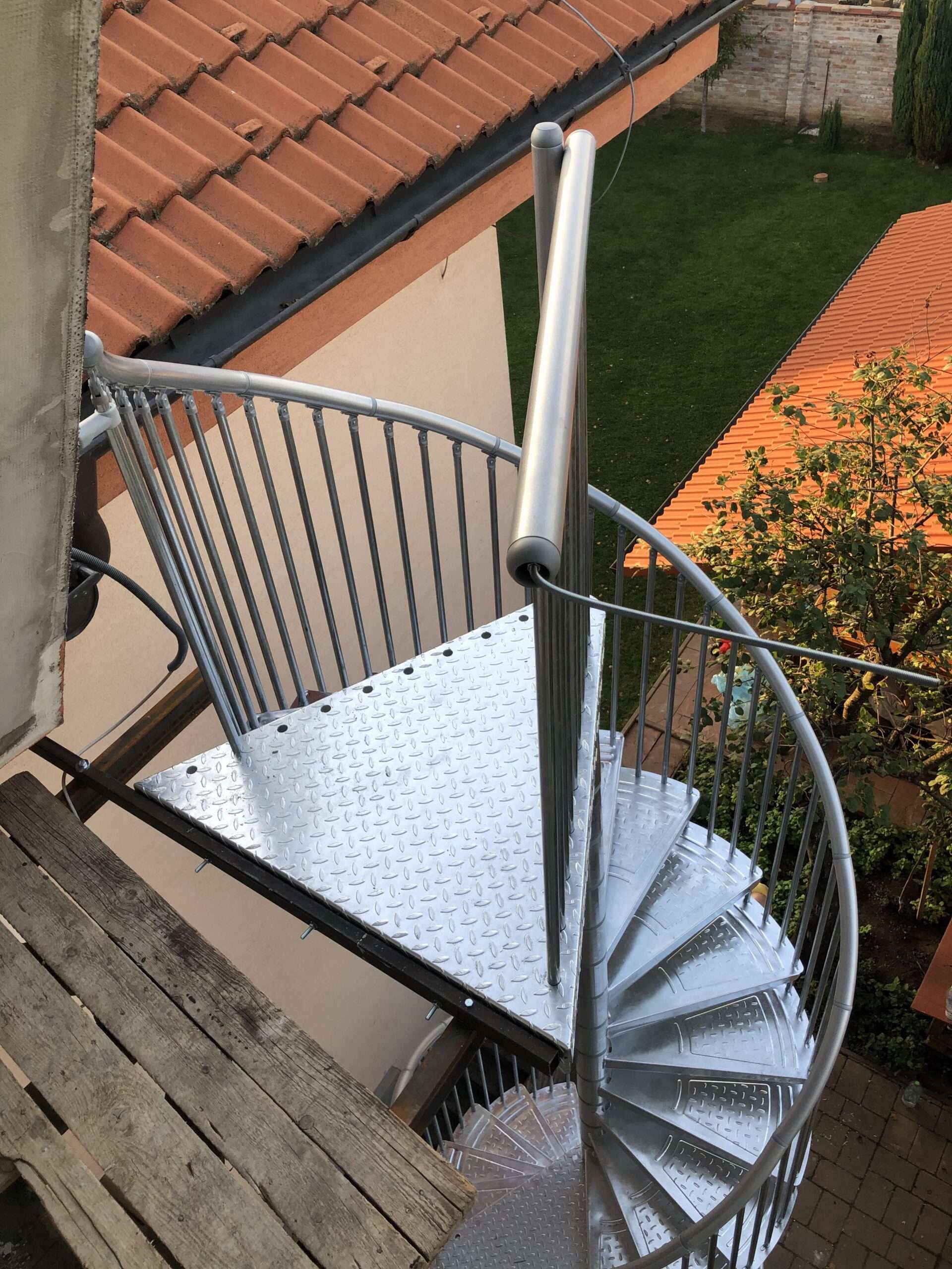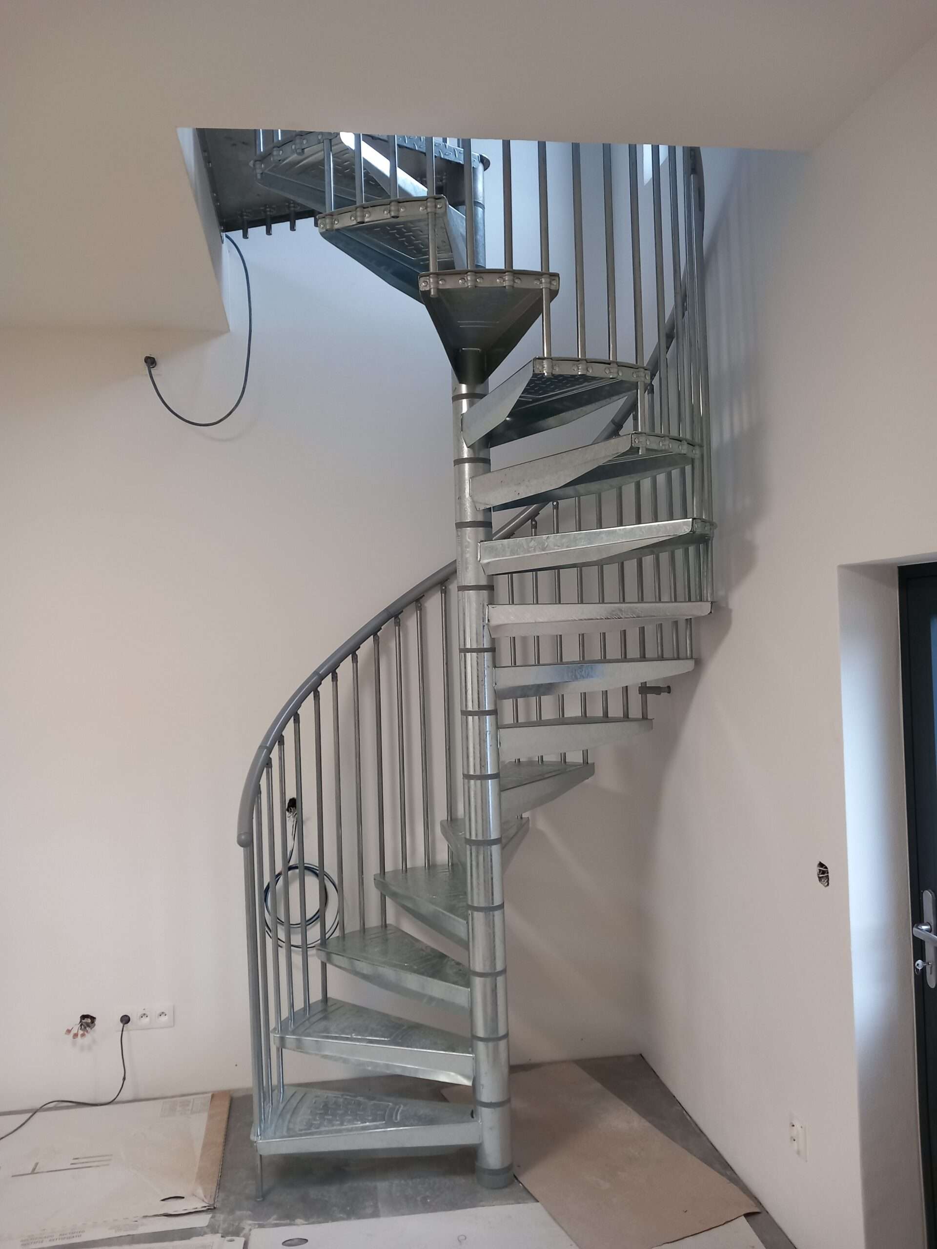 • Gewendelte Außentreppe aus verzinktem Stahl