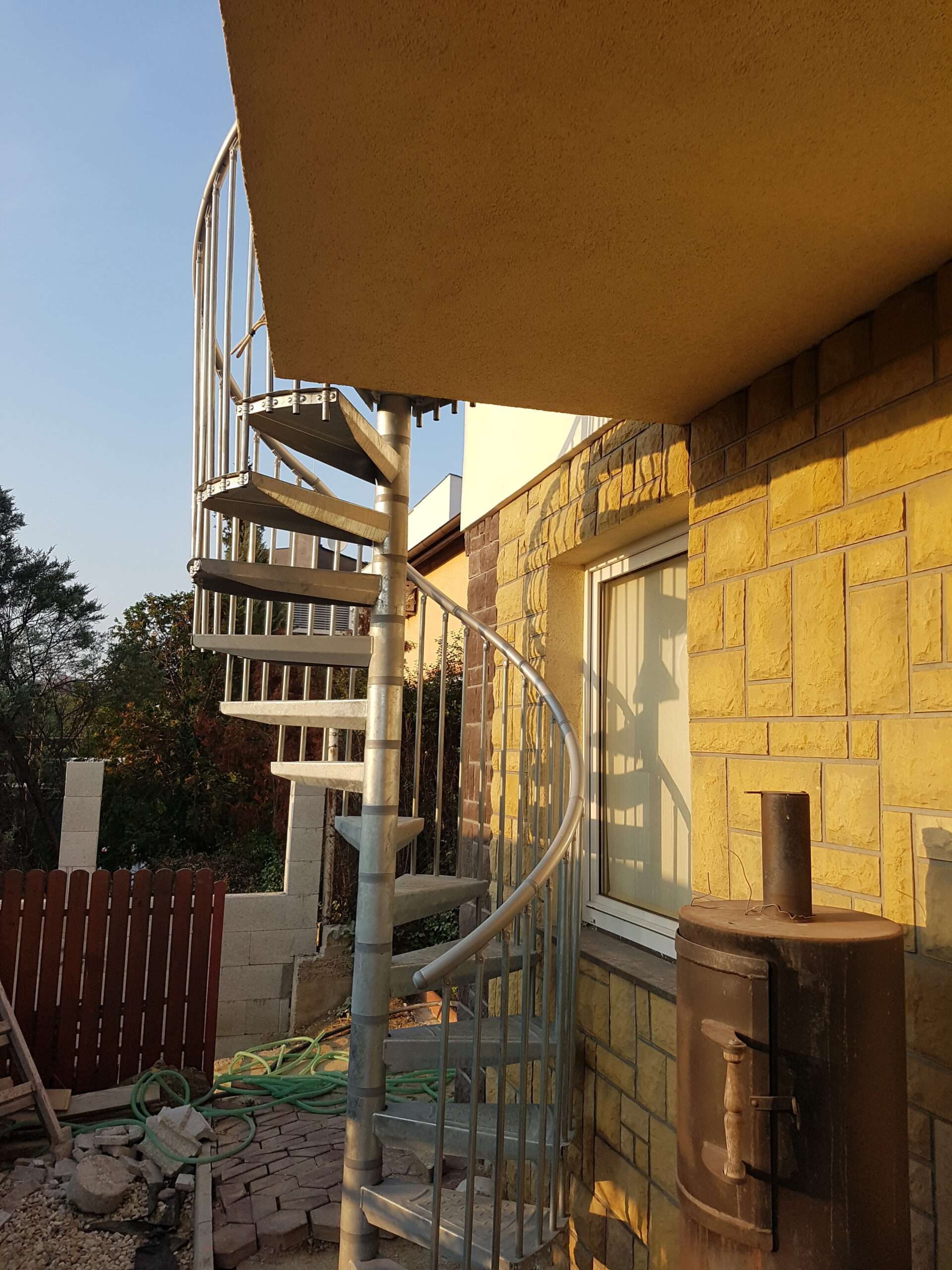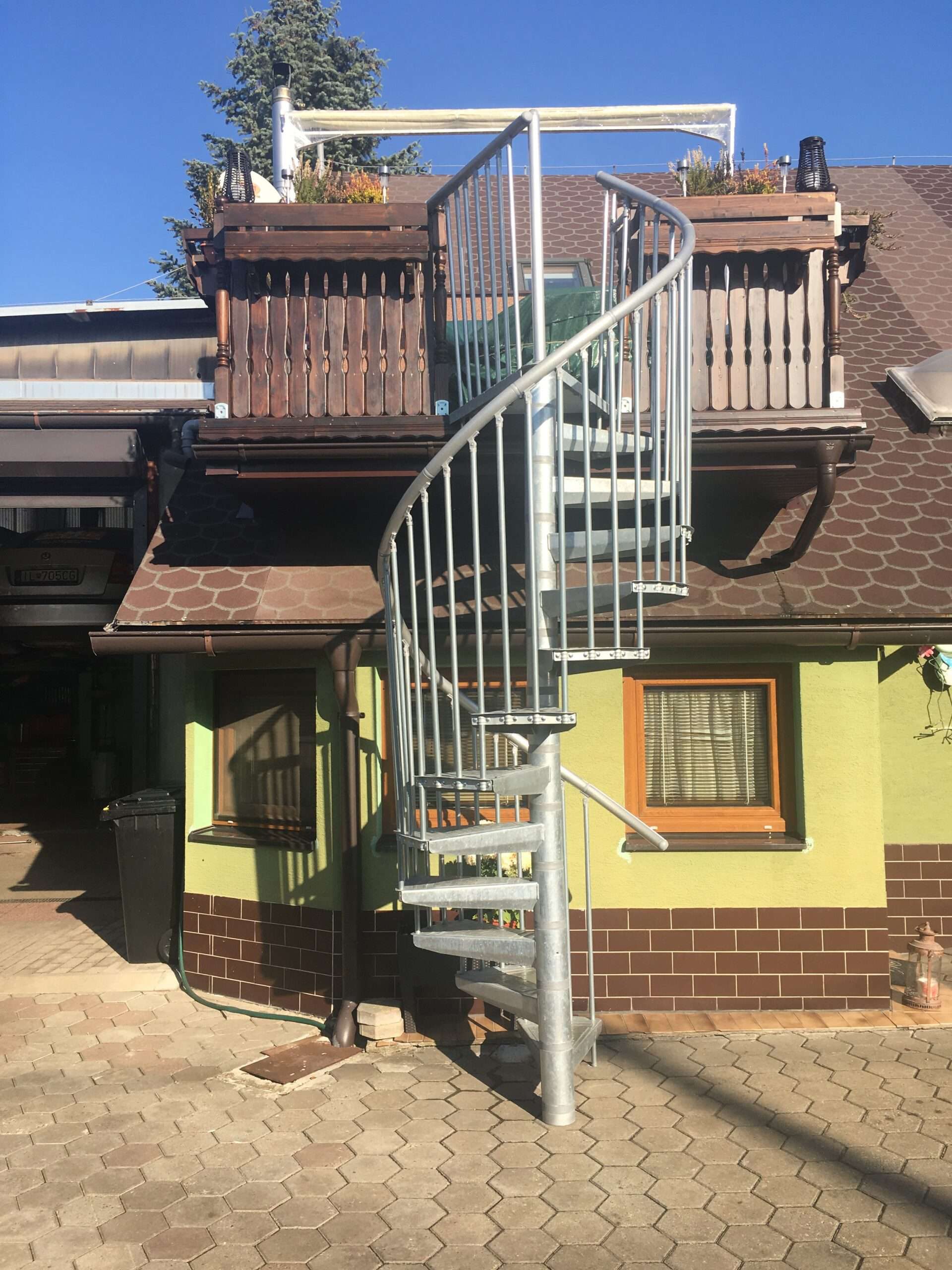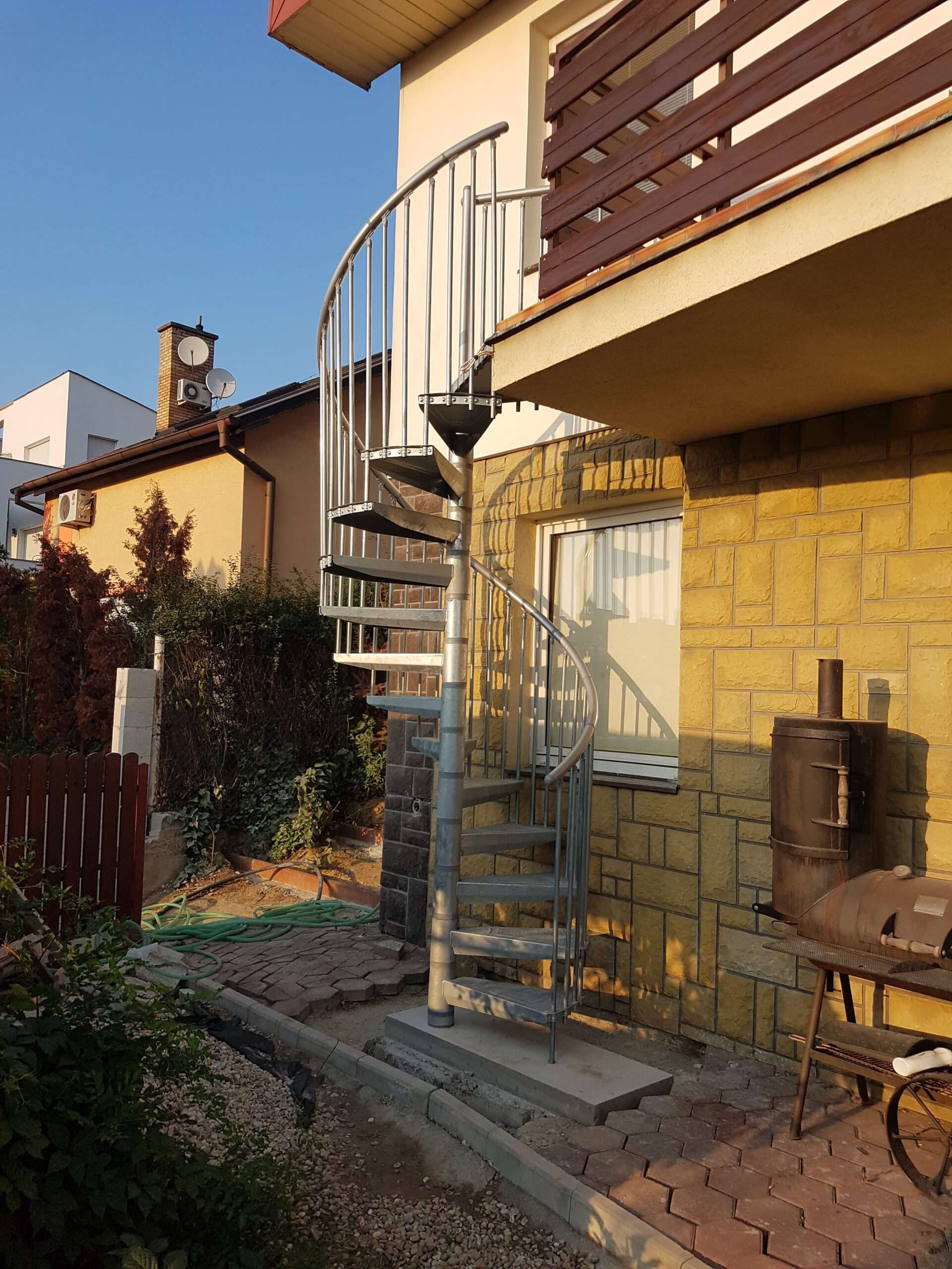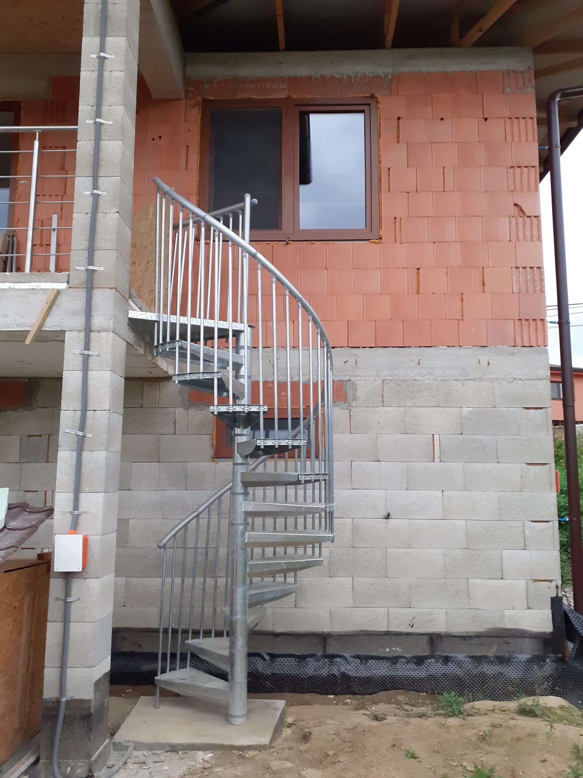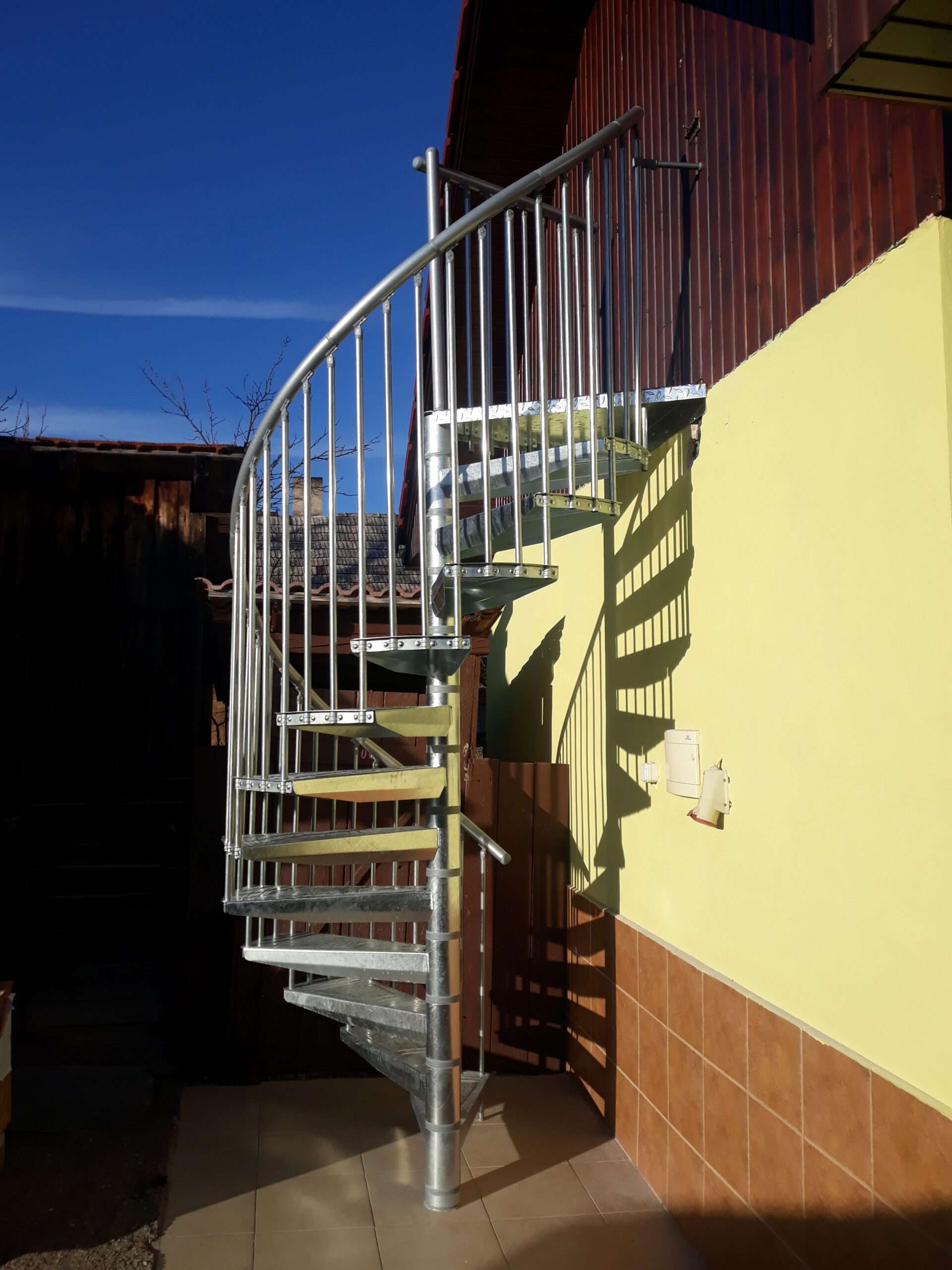 • Gewendelte Außentreppe aus verzinktem Stahl