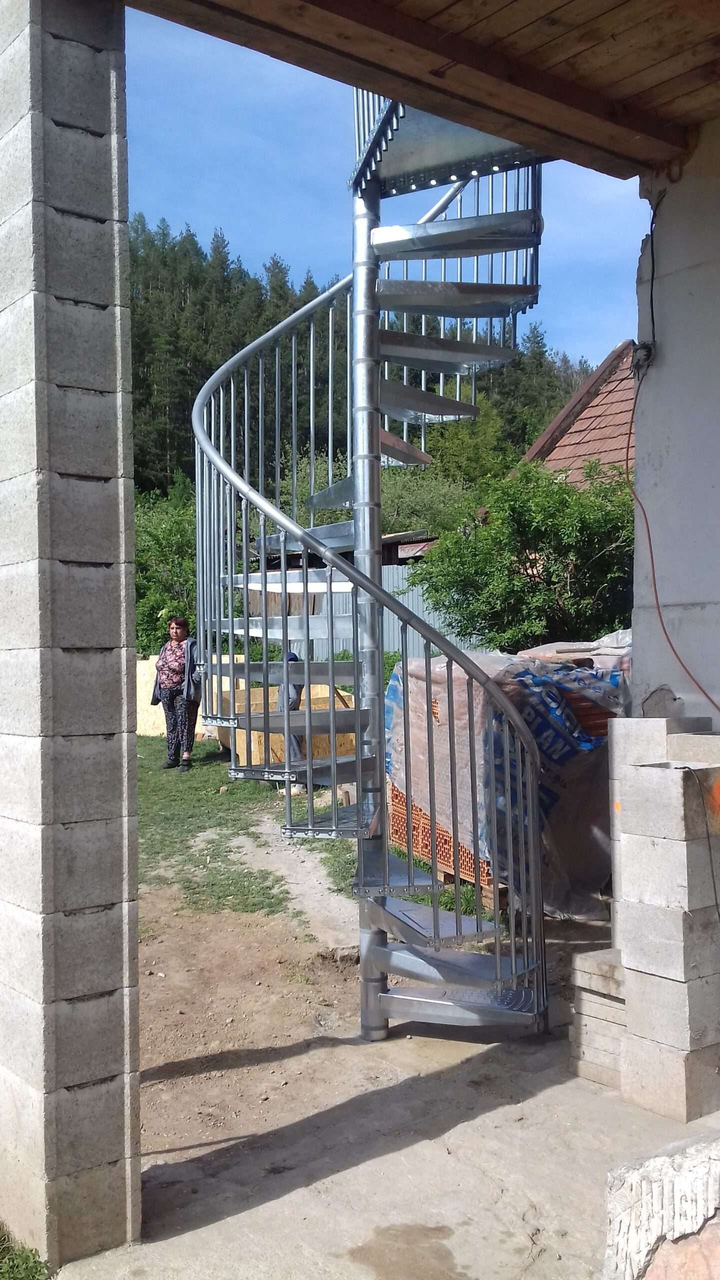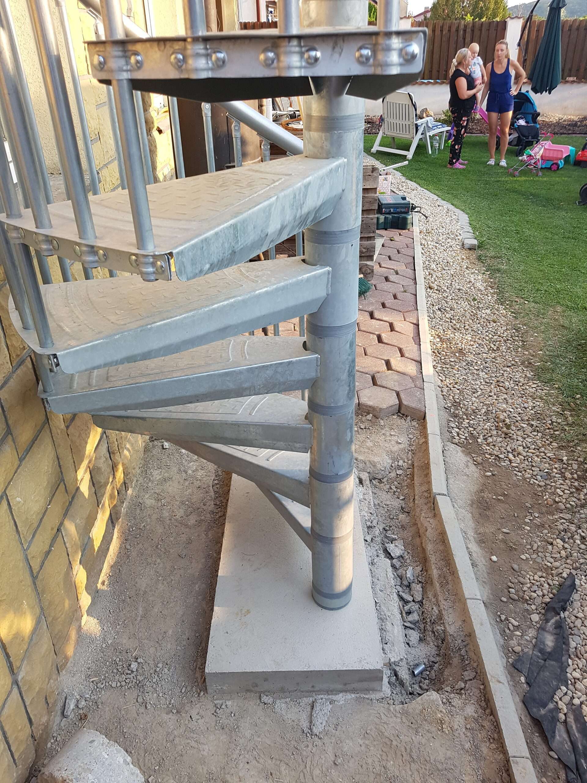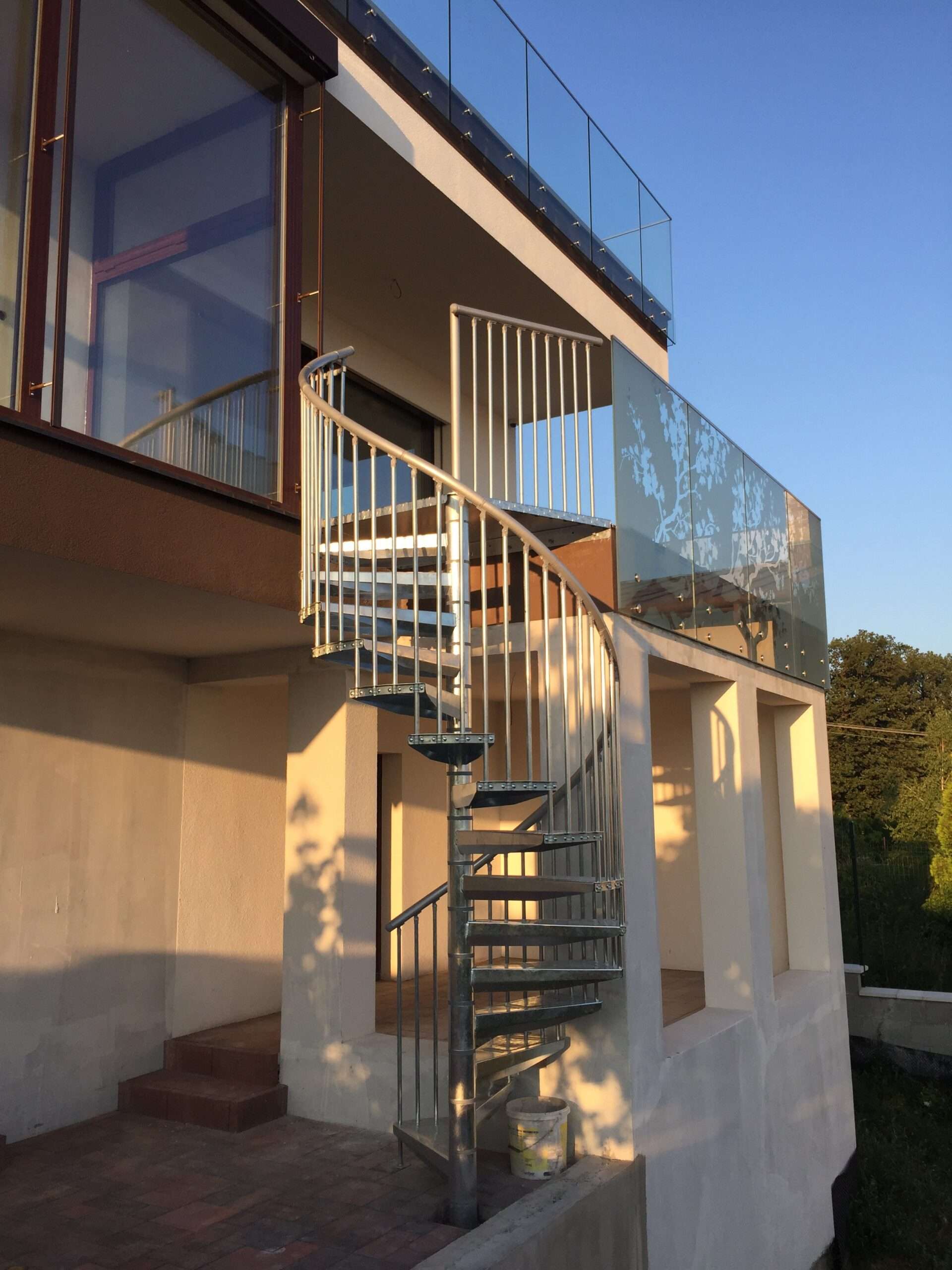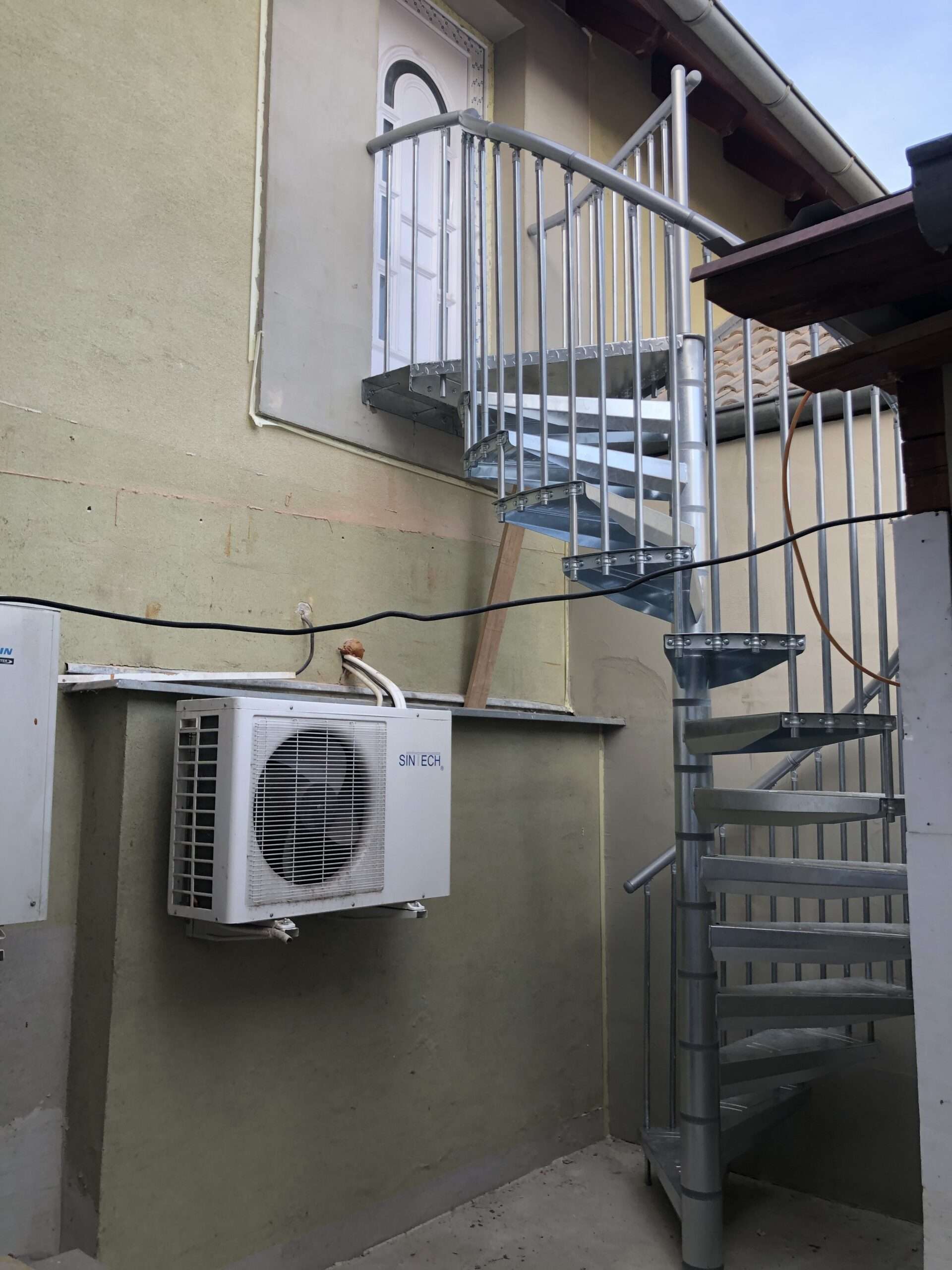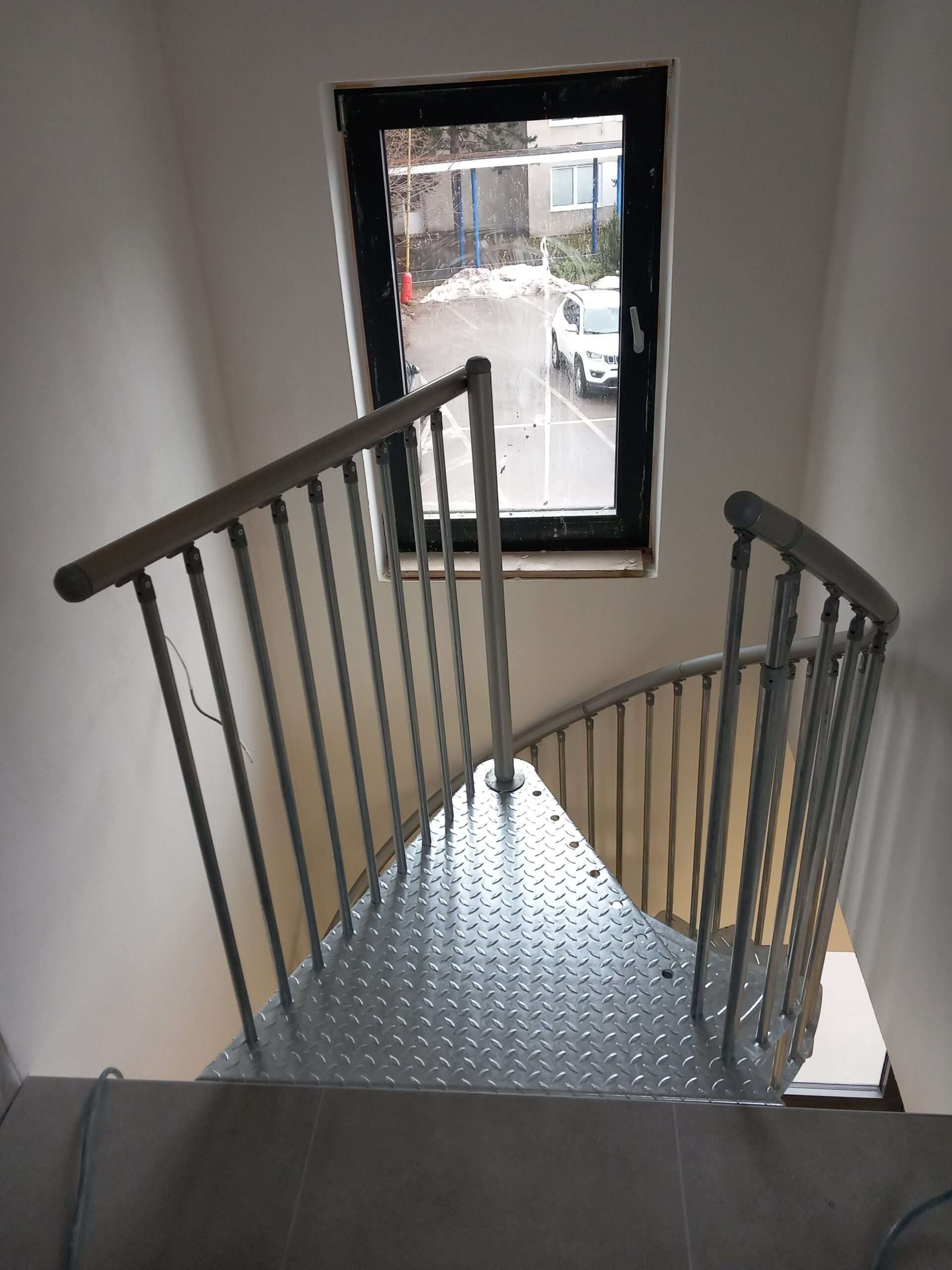 • Gewendelte Außentreppe aus verzinktem Stahl