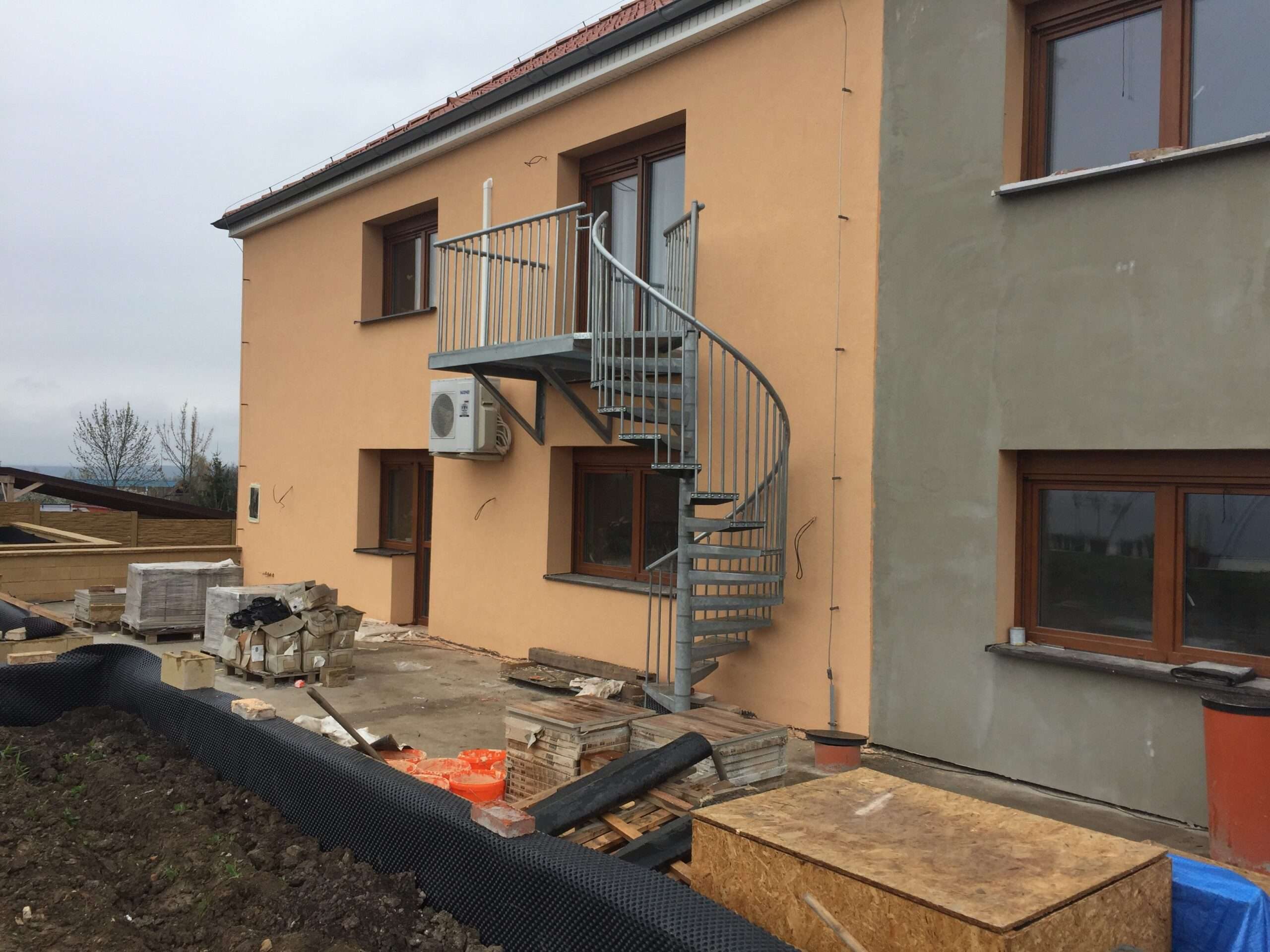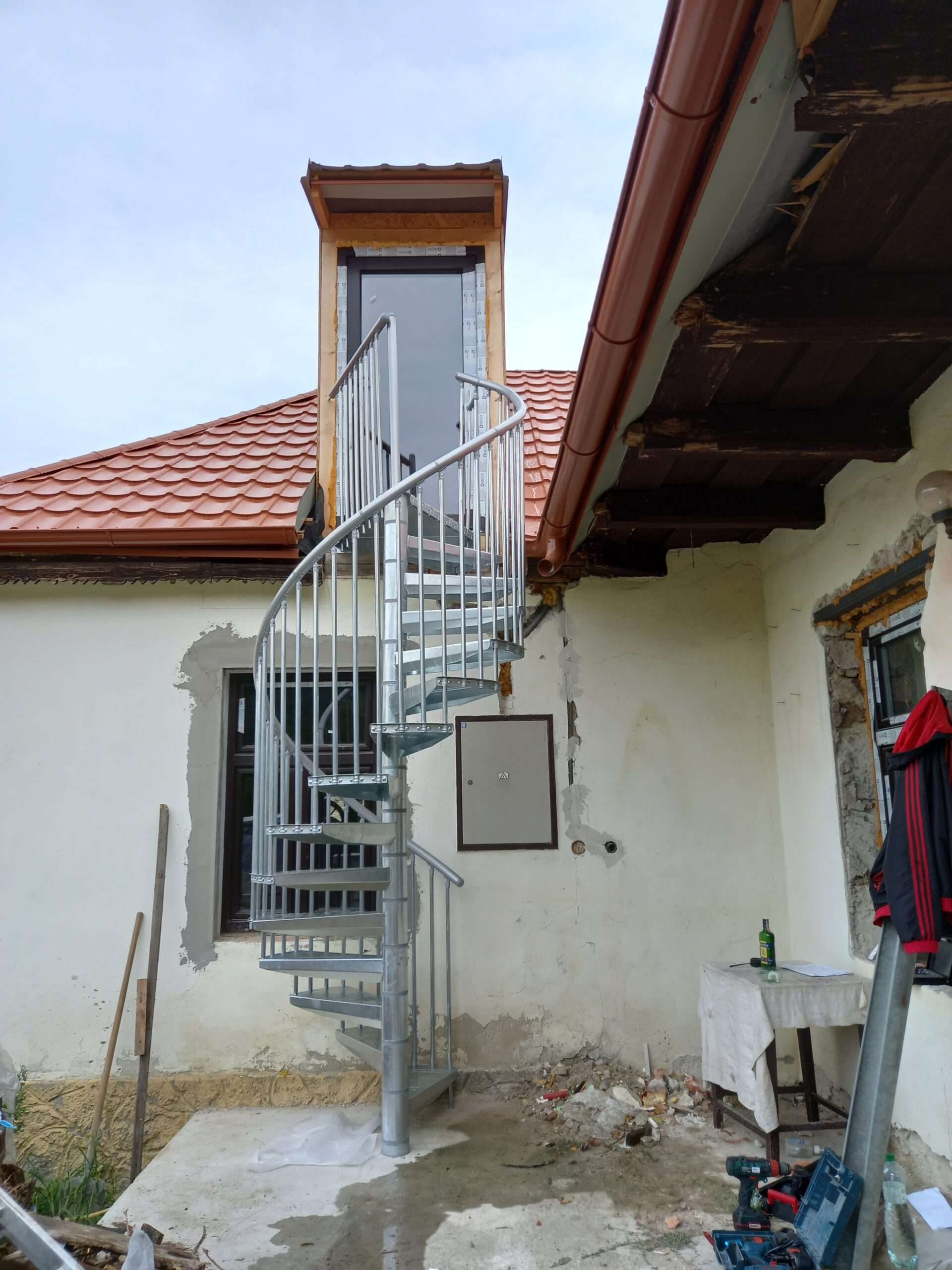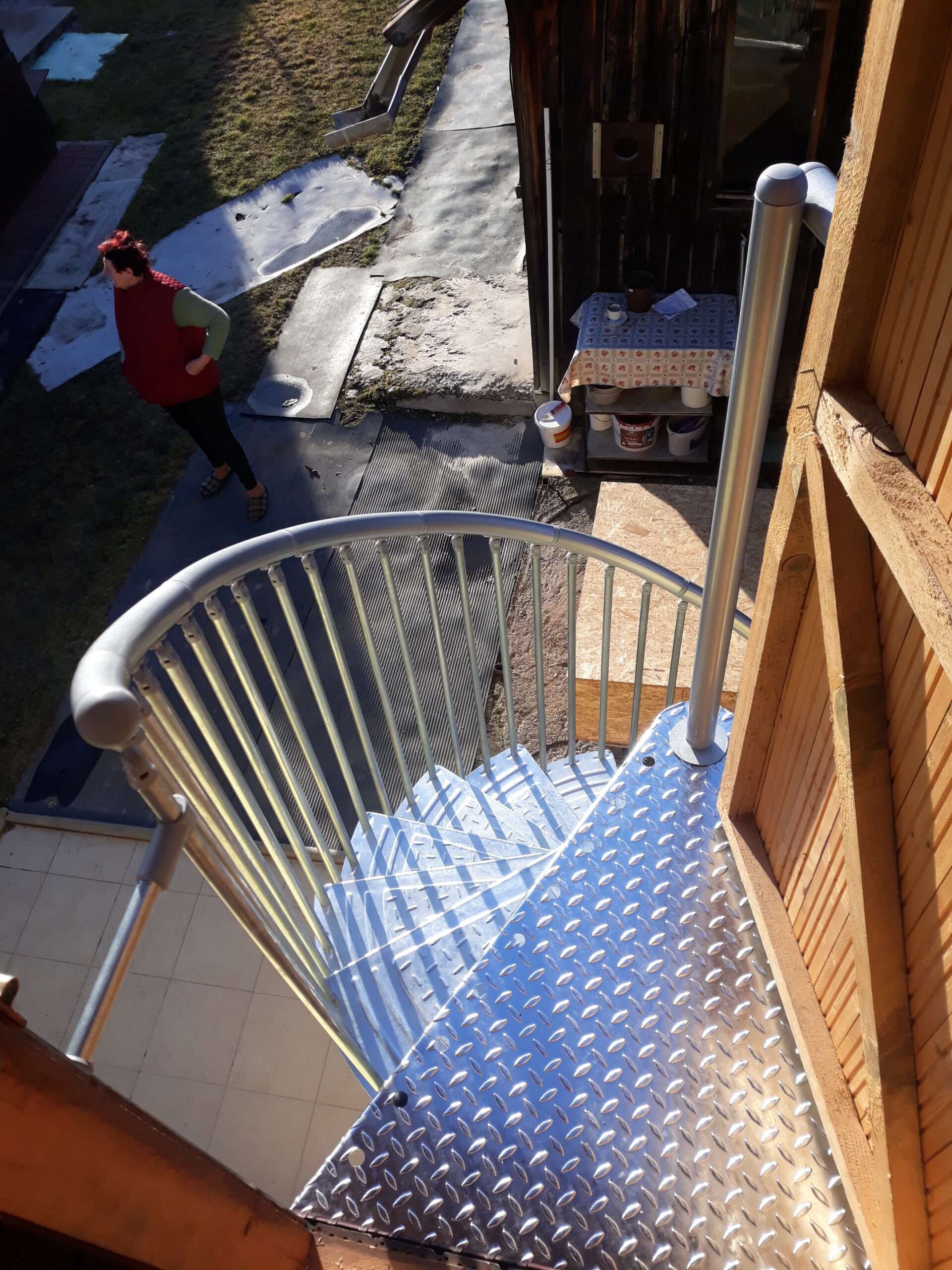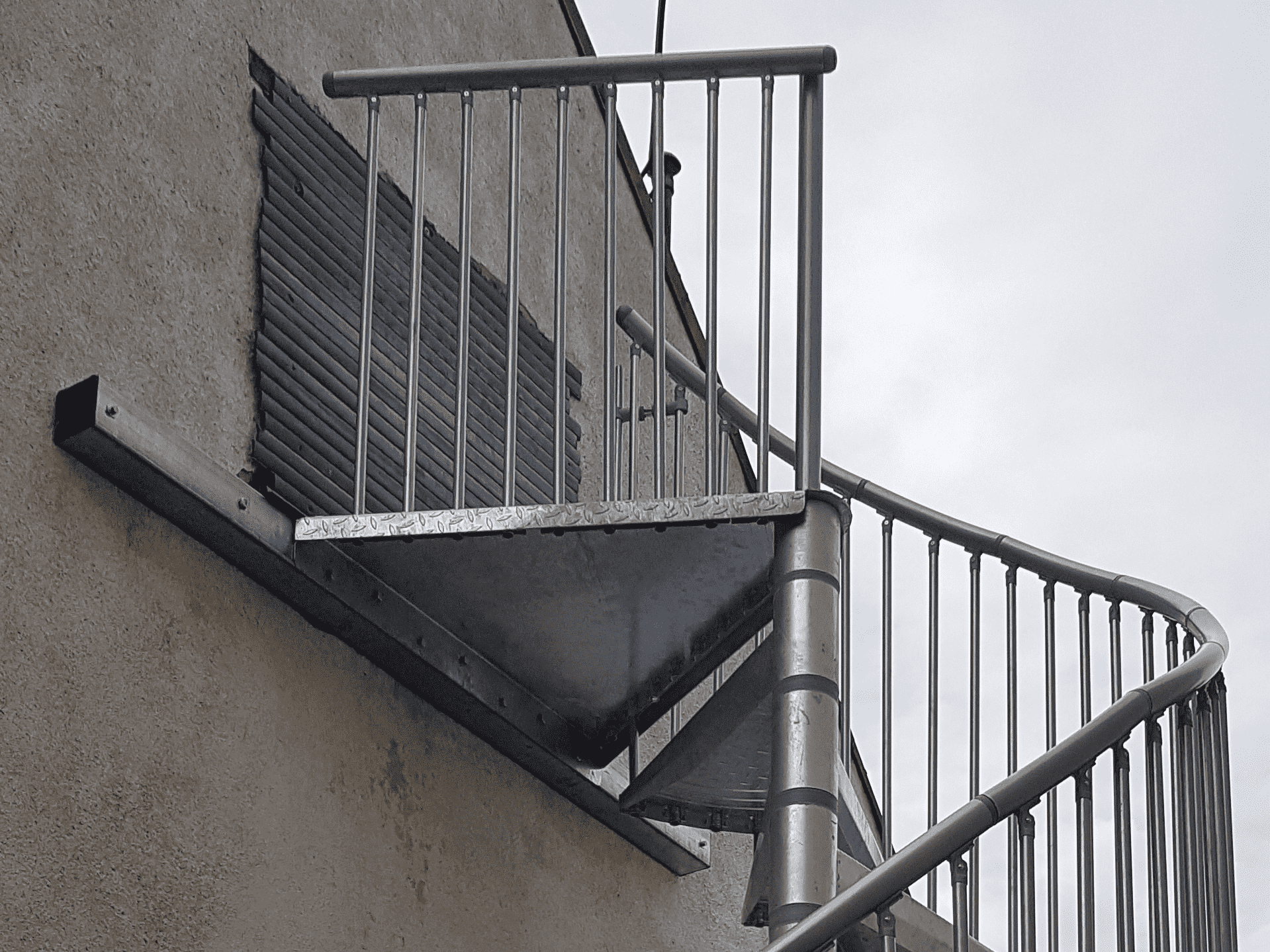 • Gewendelte Außentreppe aus verzinktem Stahl