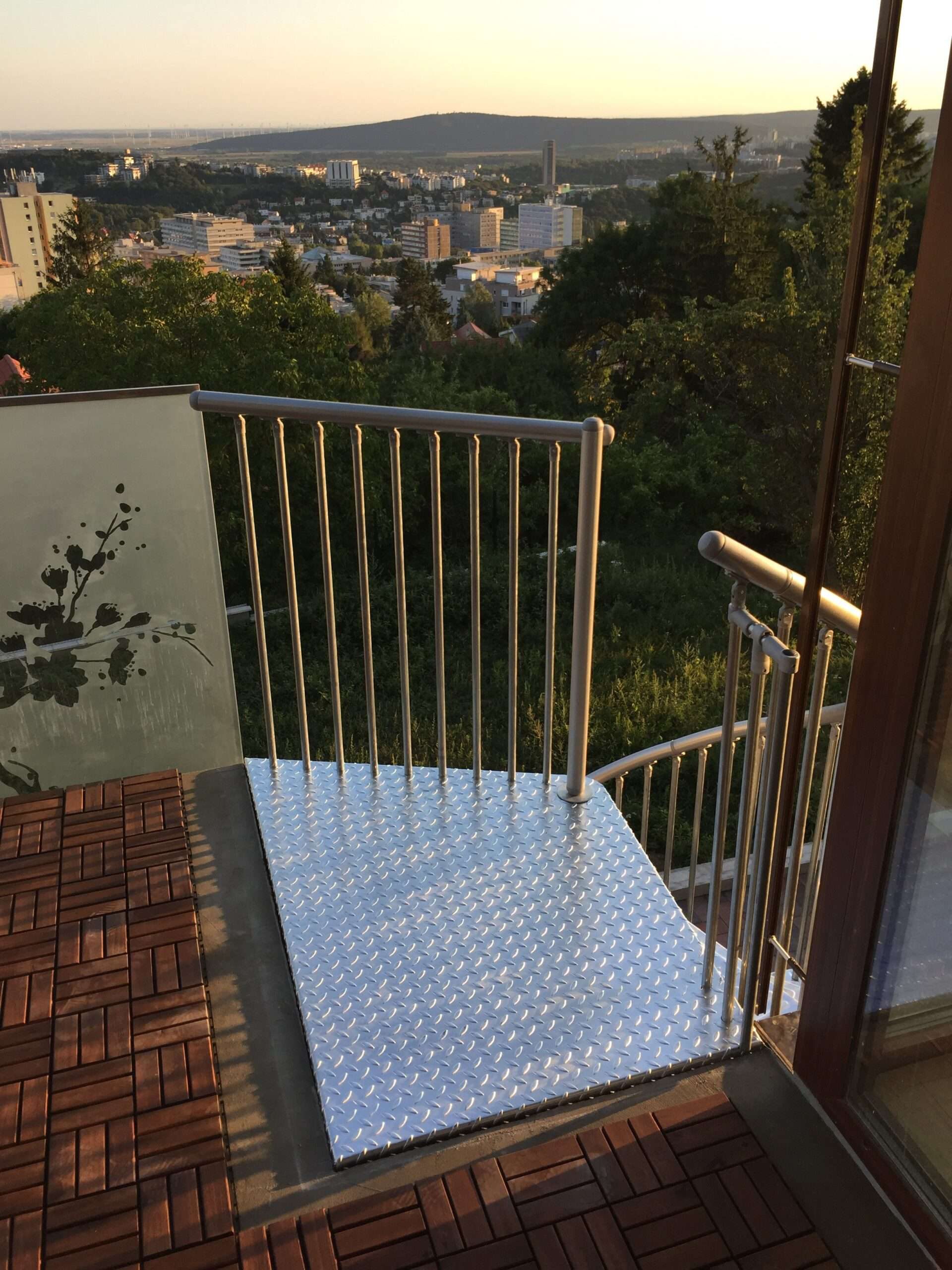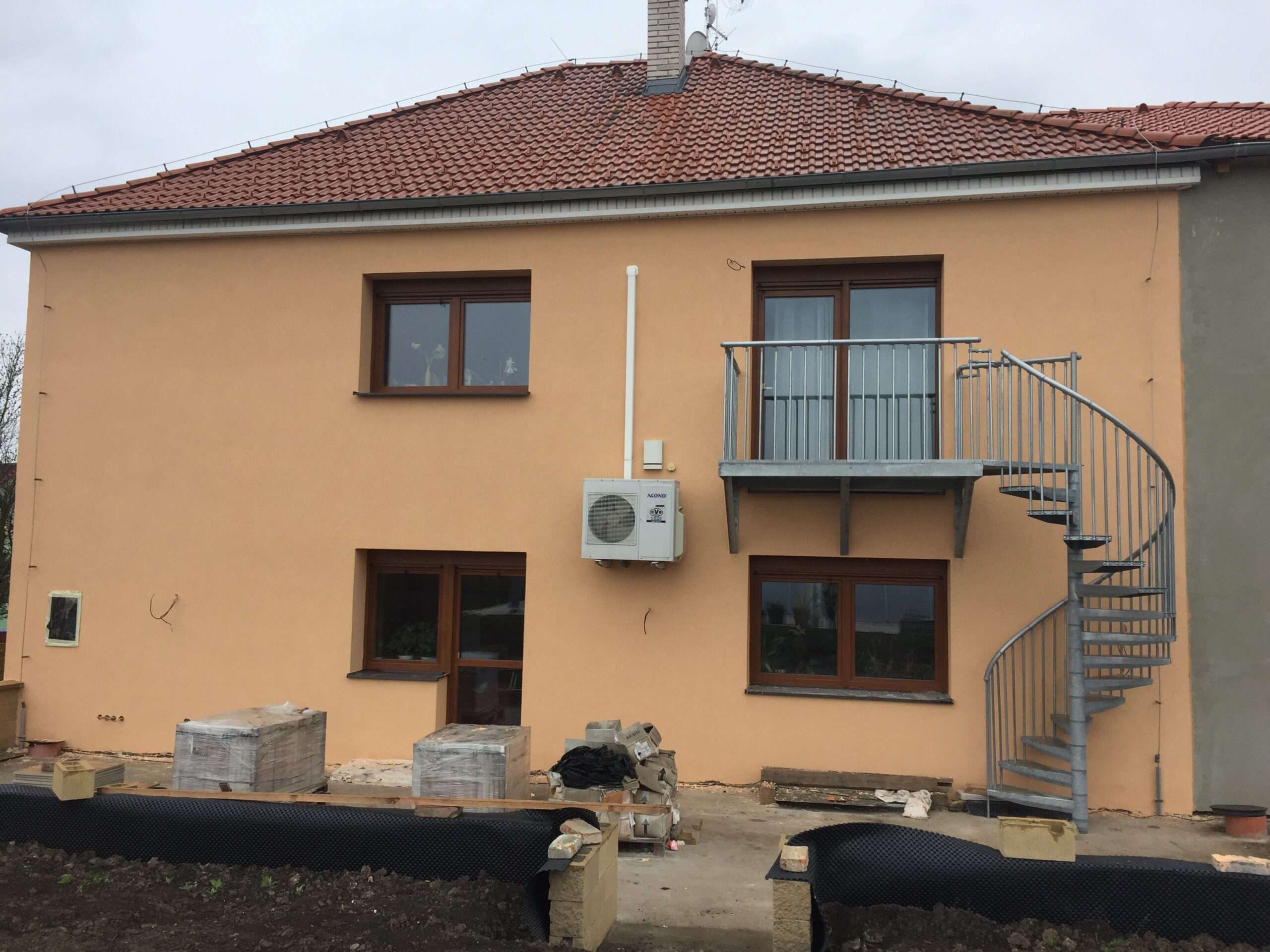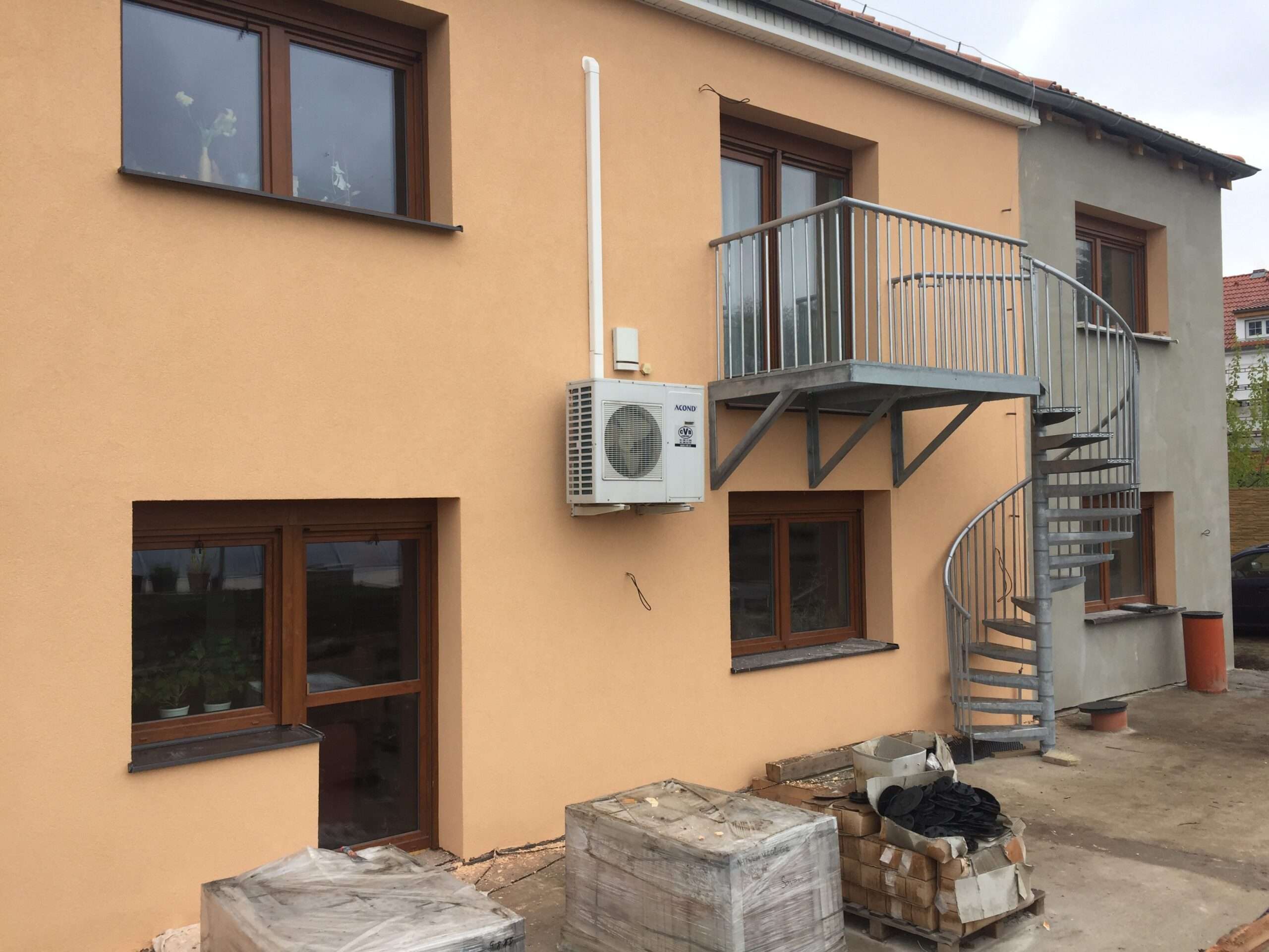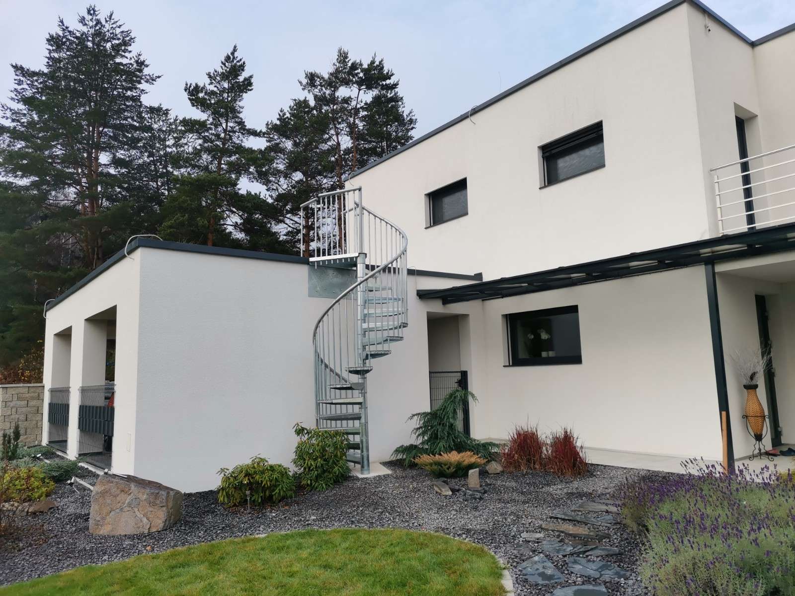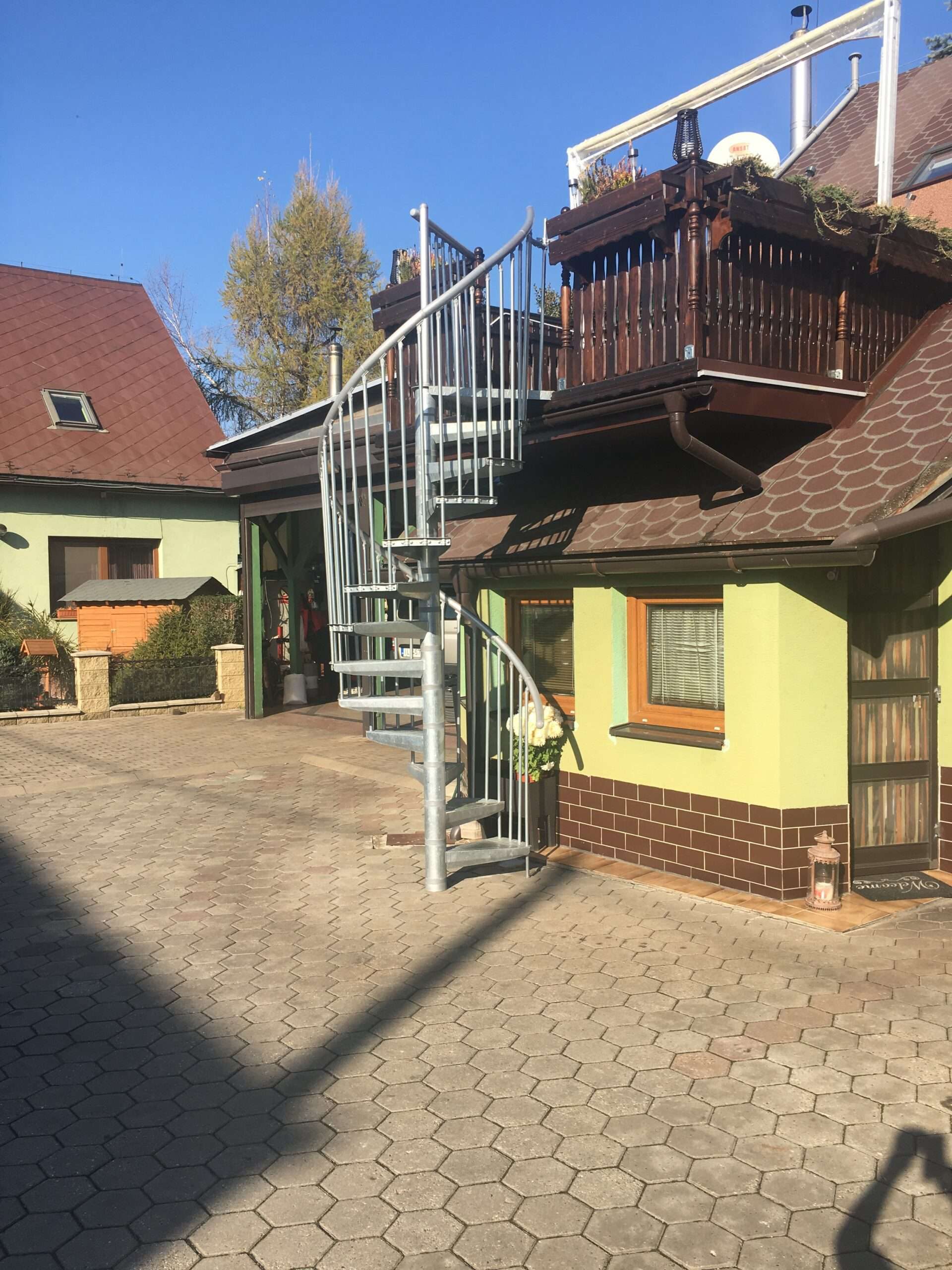 • Gewendelte Außentreppe aus verzinktem Stahl