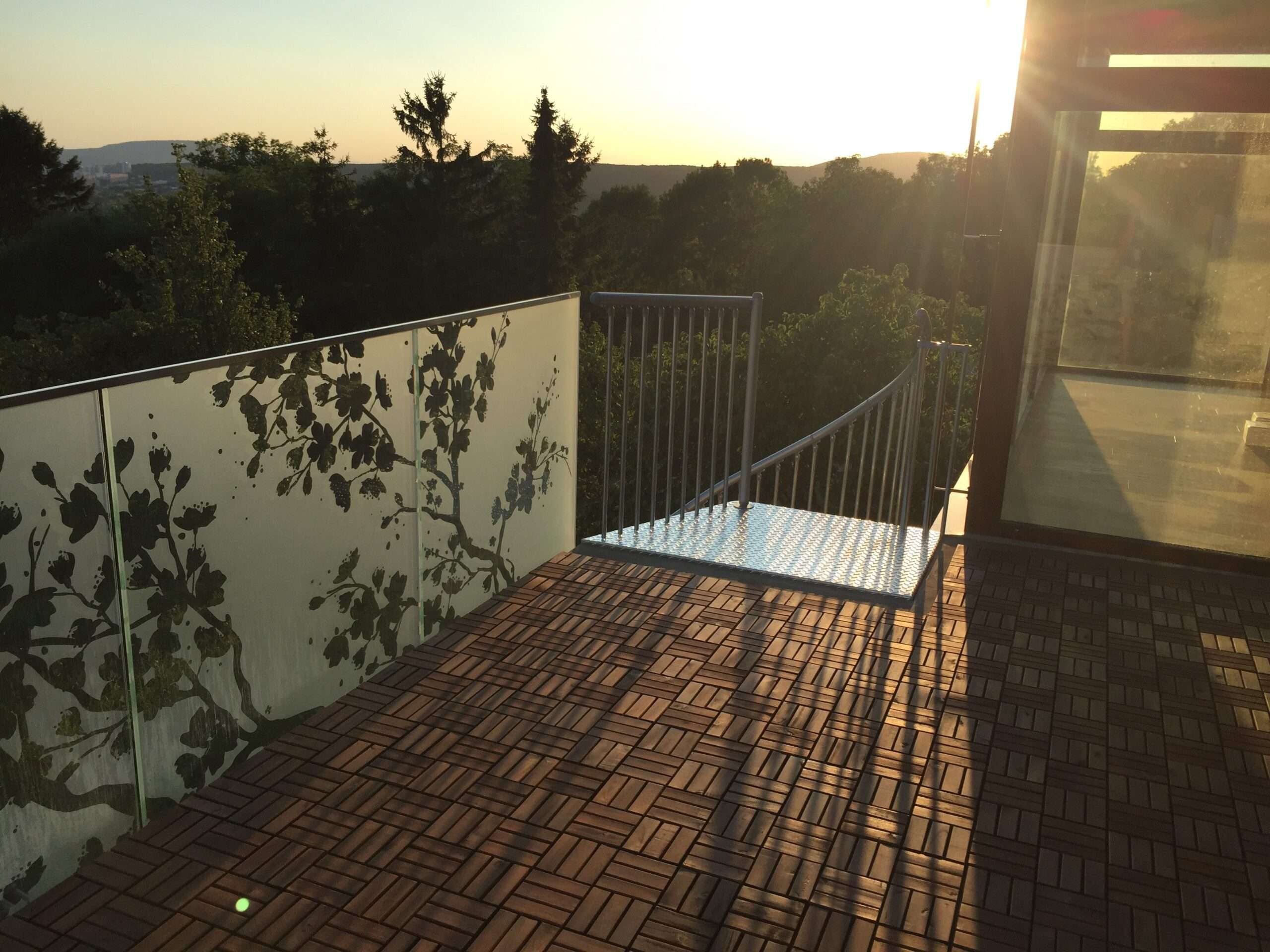 • Stabiles Stabgeländer mit Handlauf aus pulverbeschichtetem Aluminium
