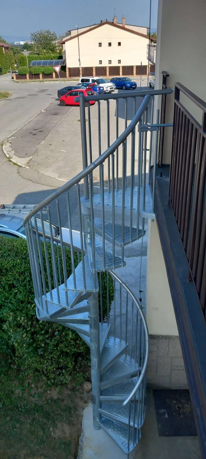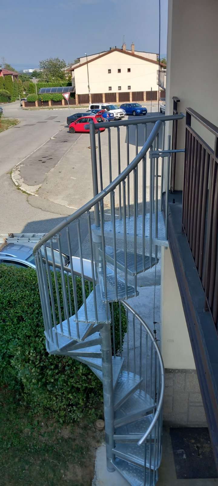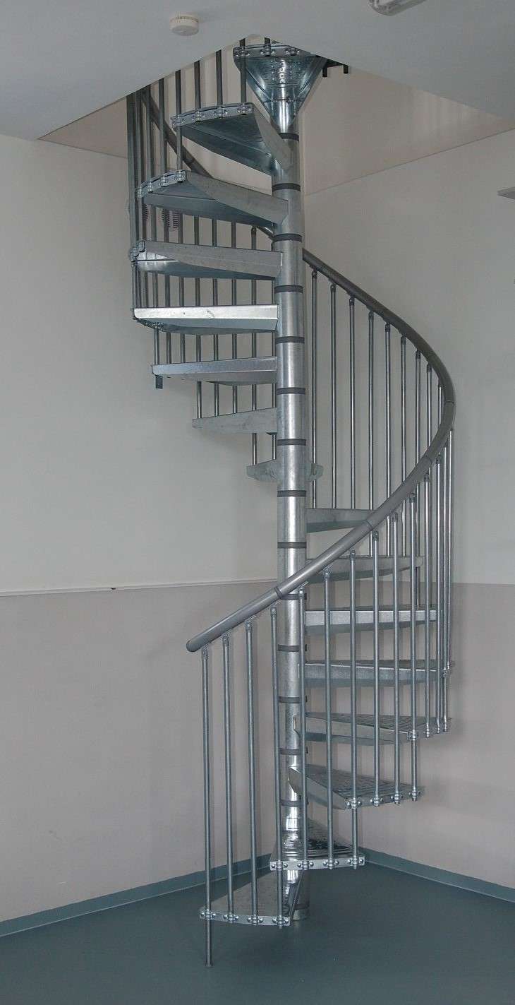• Gewendelte Außentreppe aus verzinktem Stahl