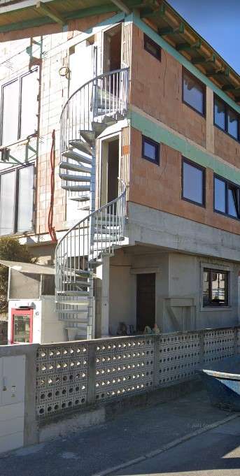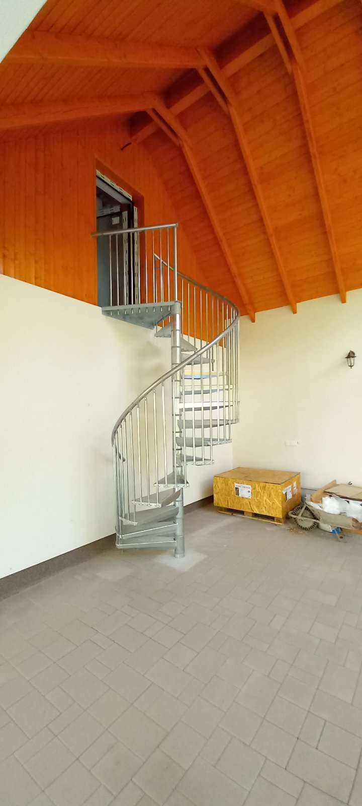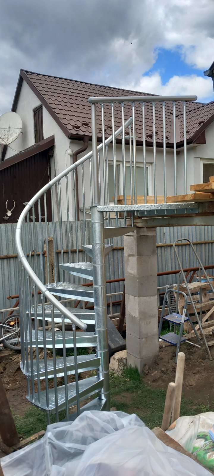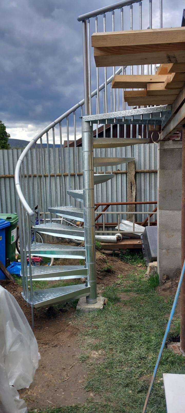 • Gewendelte Außentreppe aus verzinktem Stahl