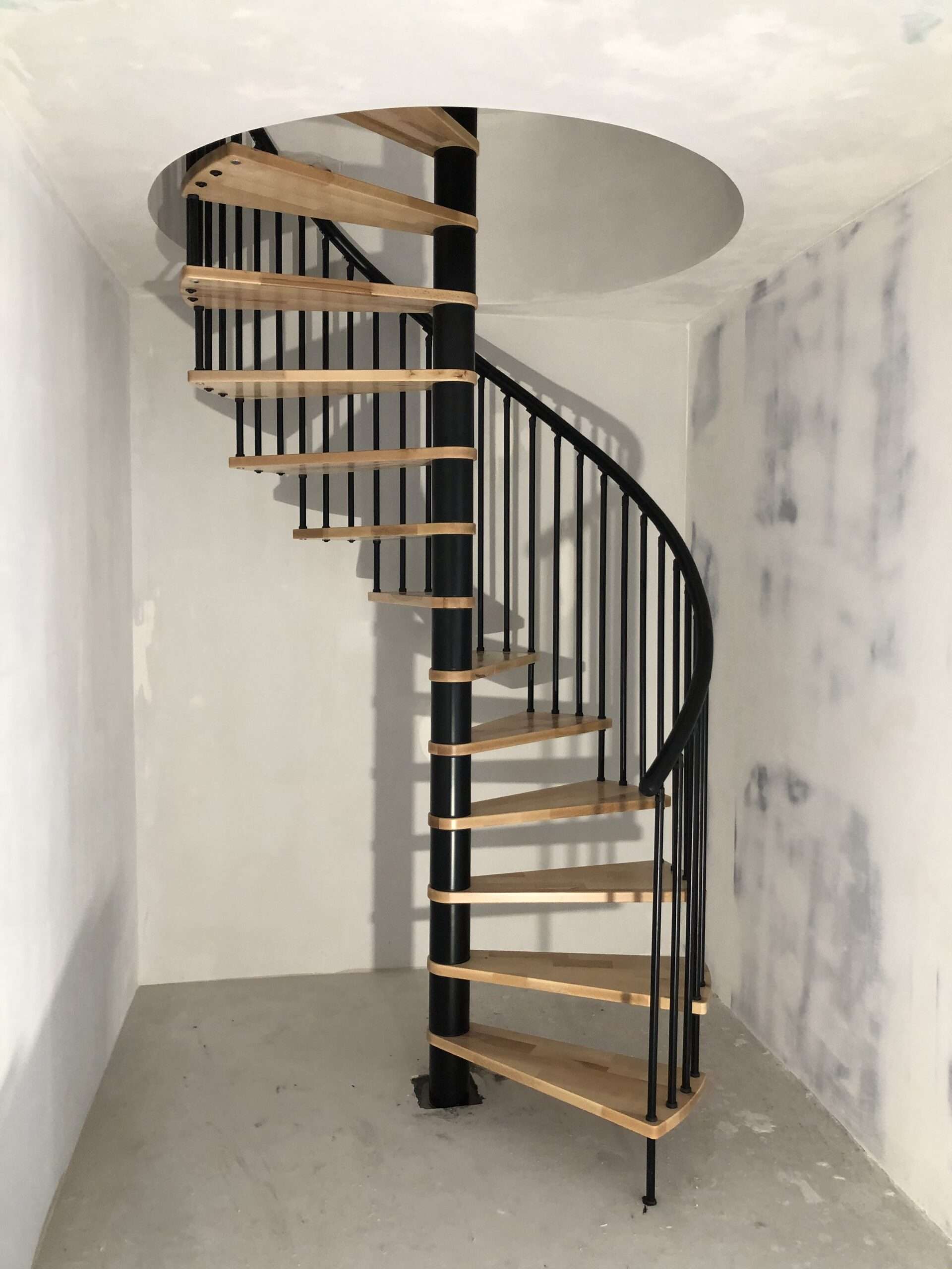 Bei den Holzstufen der Spiral Effect können Sie zwischen Buche, Buche auf Walnuss gebeizt, Eiche und Buche weiß lackiert auswählen. Die Stahlelemente sowie der Handlauf aus Aluminium können in den Farben Schwarz, Grau oder Weiß pulverbeschichtet sein. Aber nicht nur die Farben lassen sich individuell an Ihre Wünsche anpassen, sondern auch hinsichtlich der Größe haben Sie gewissen Spielraum. So ist die Spindeltreppe Spiral Effect in den drei Durchmessern 120, 140 und 160 cm erhältlich.