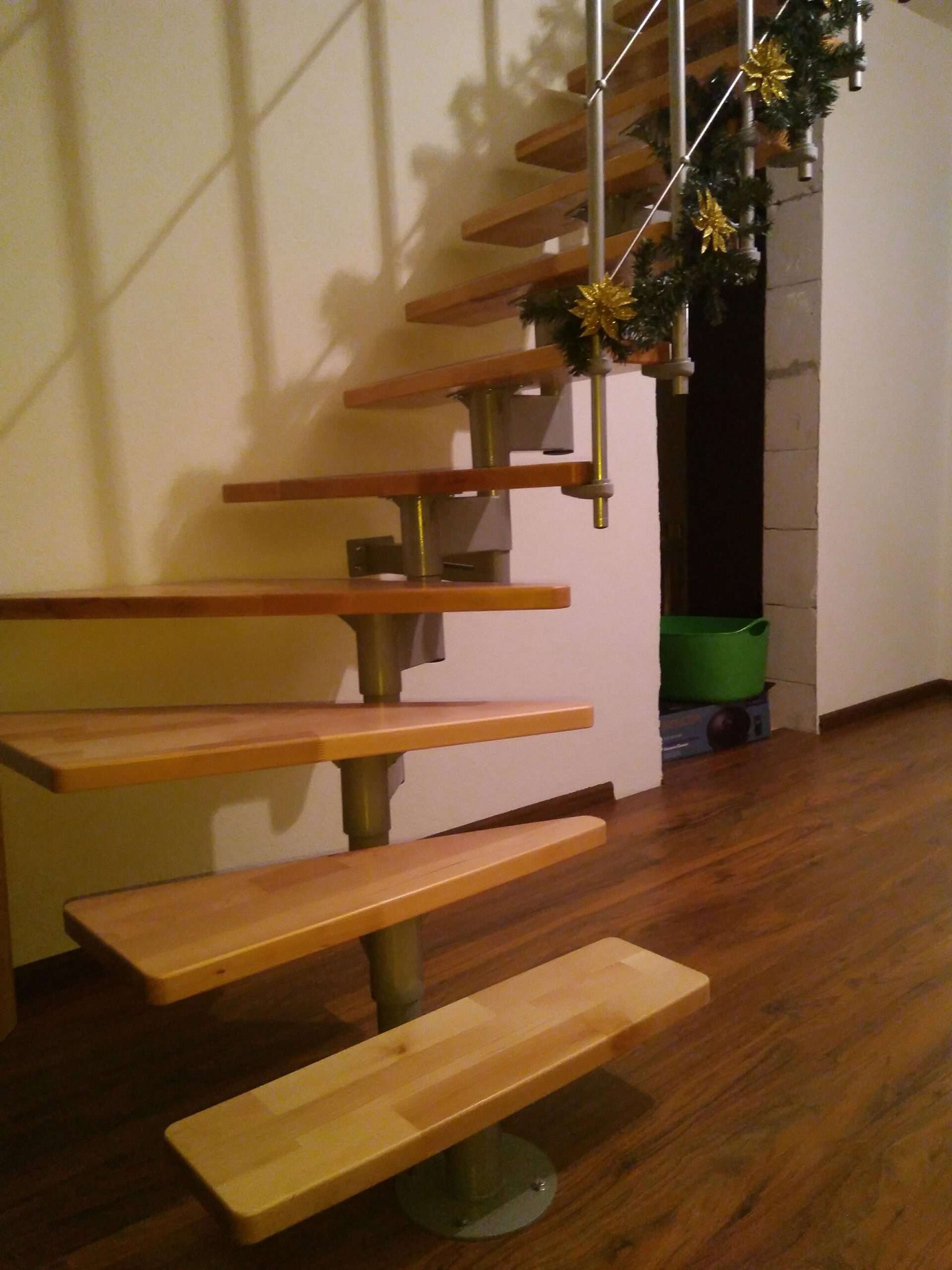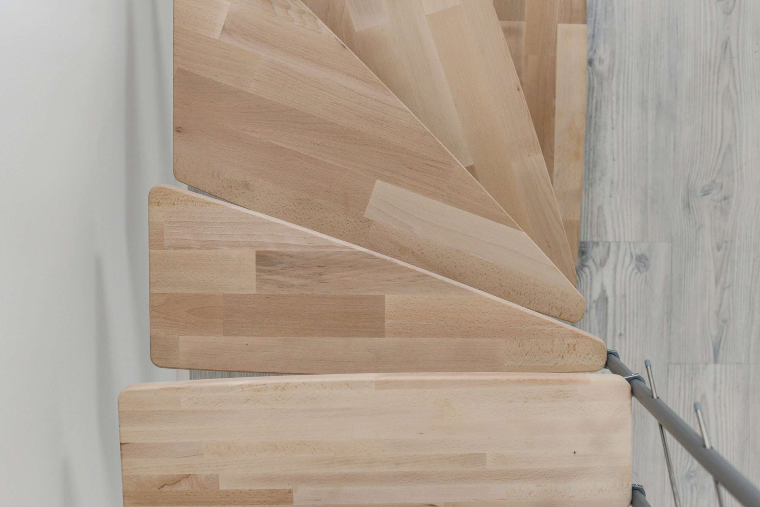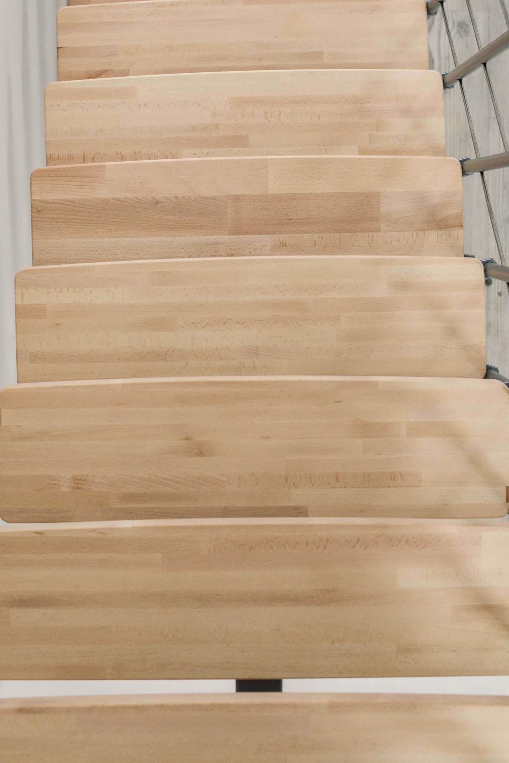 - Stufen aus Buchenholz in natürlicher Optik oder auf eine dunklere Walnussoptik gebeizt