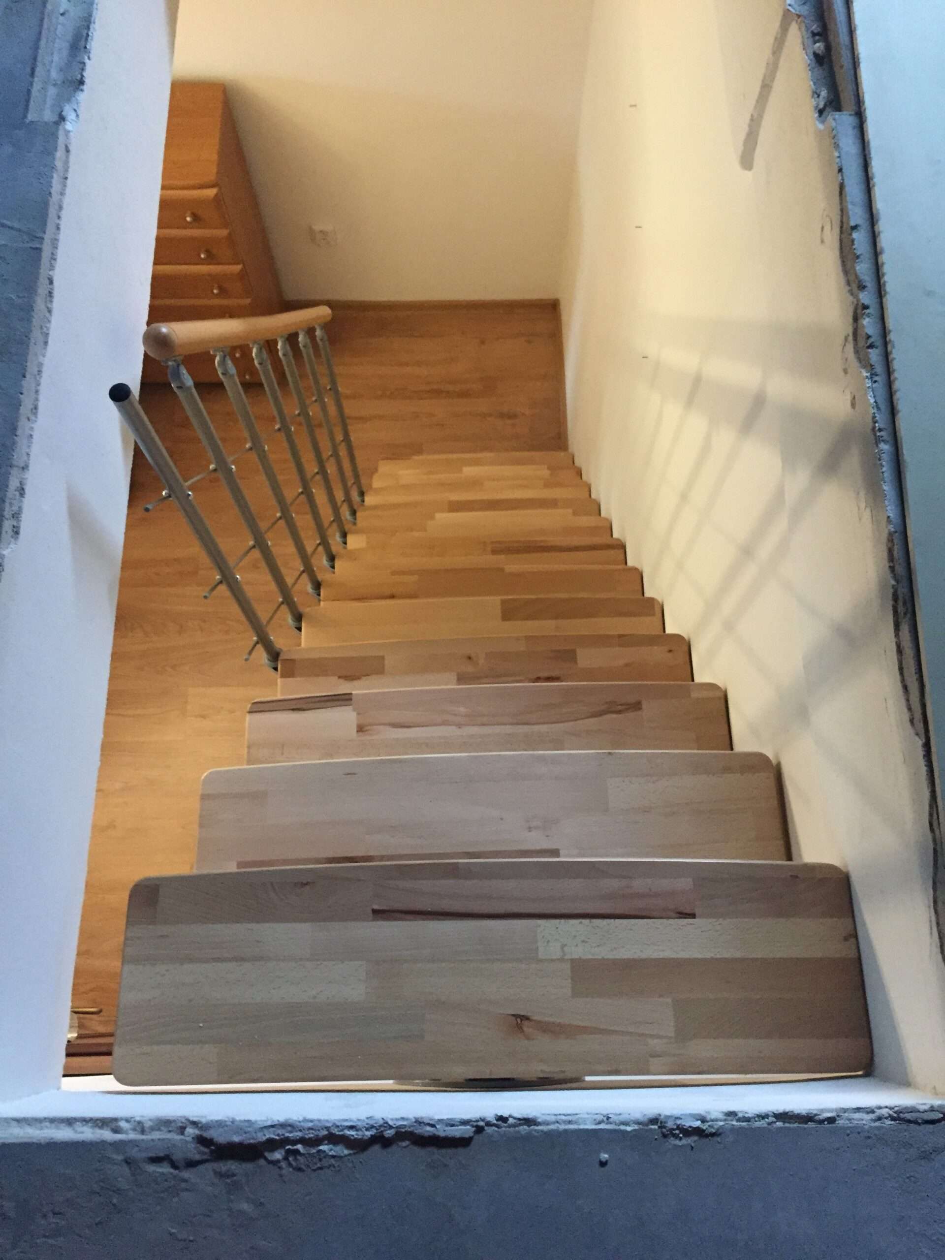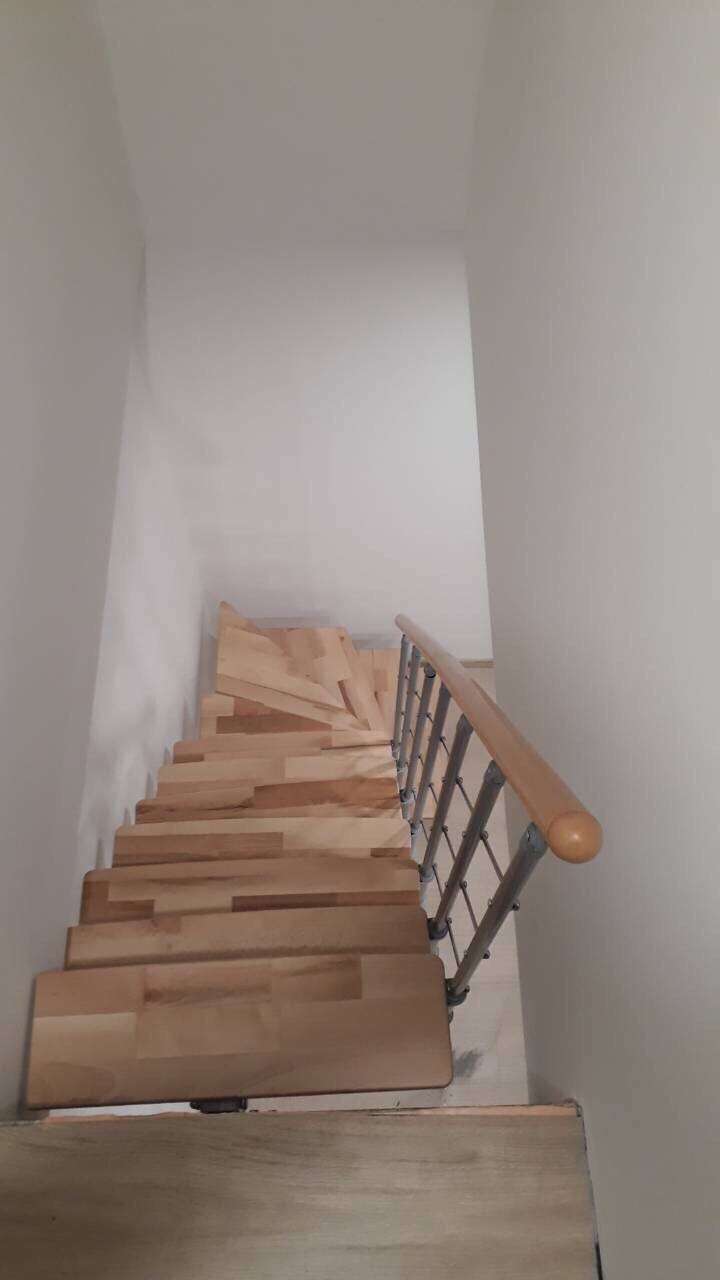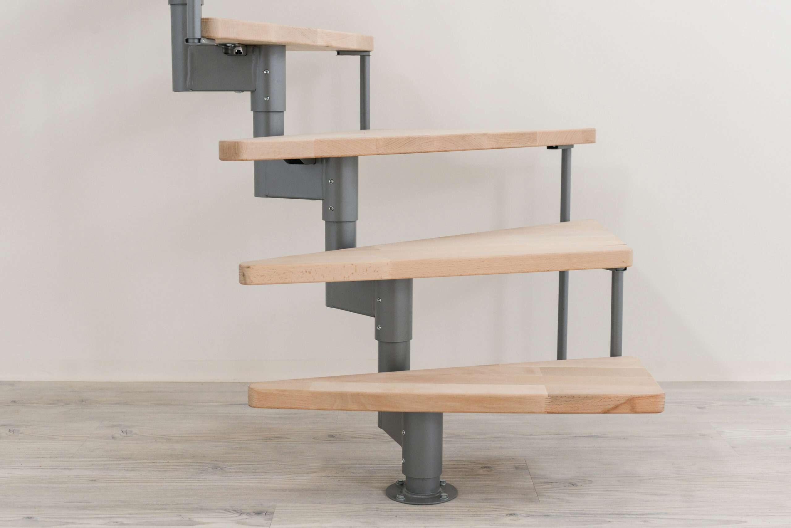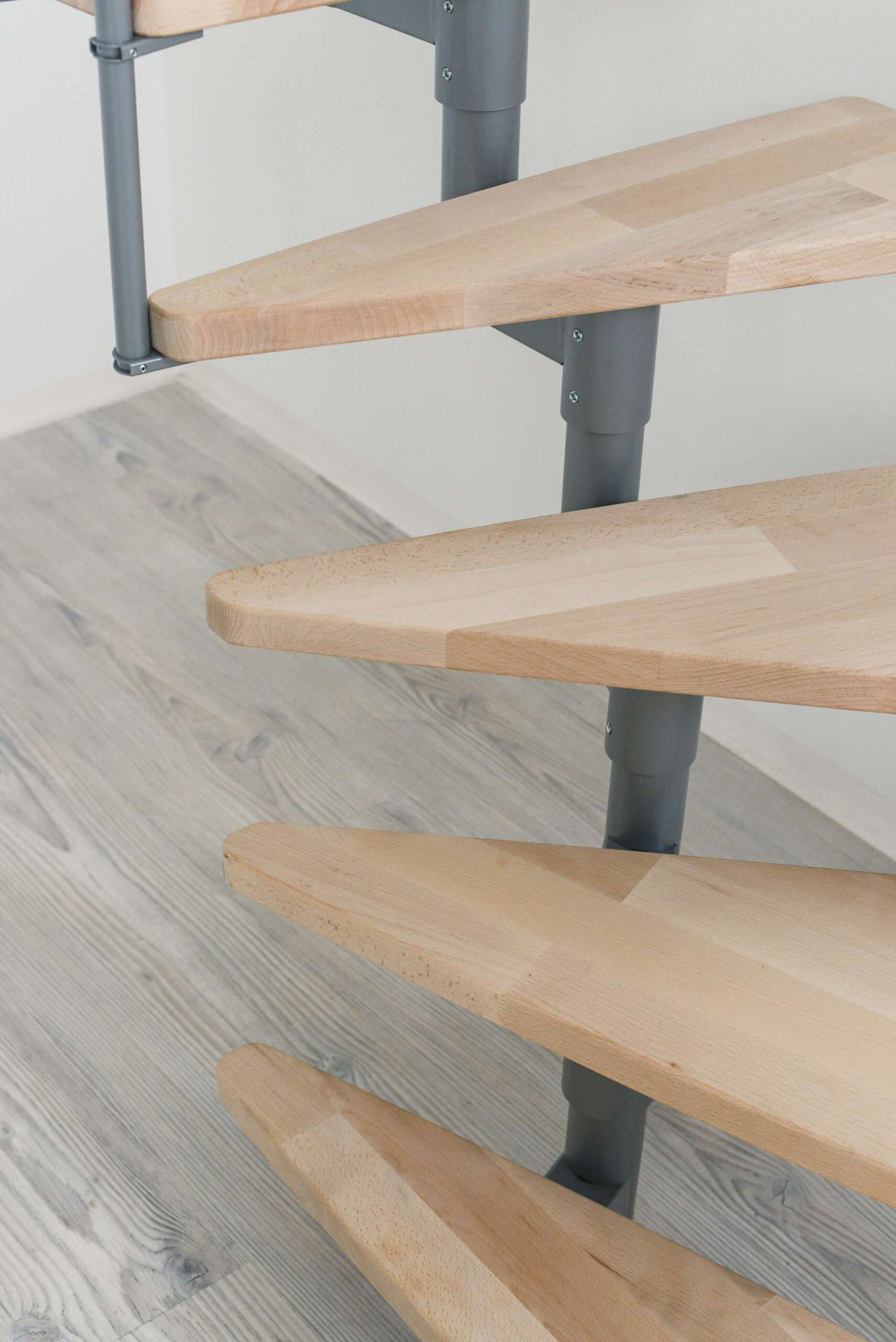 - Stufen aus Buchenholz in natürlicher Optik oder auf eine dunklere Walnussoptik gebeizt