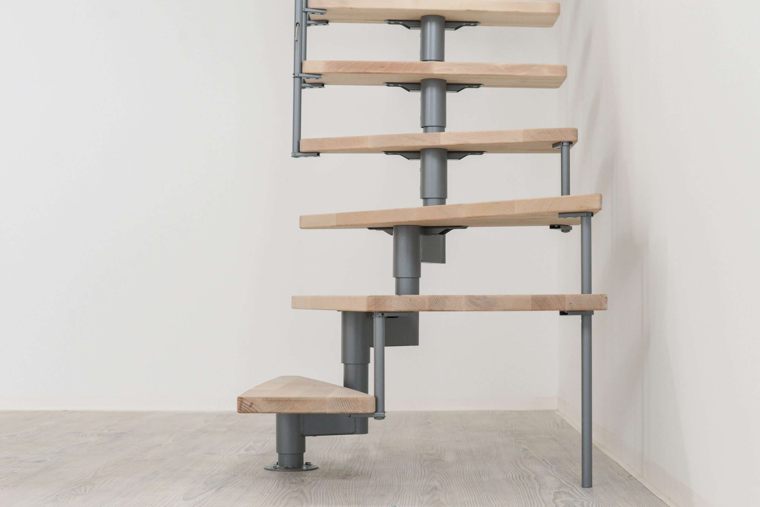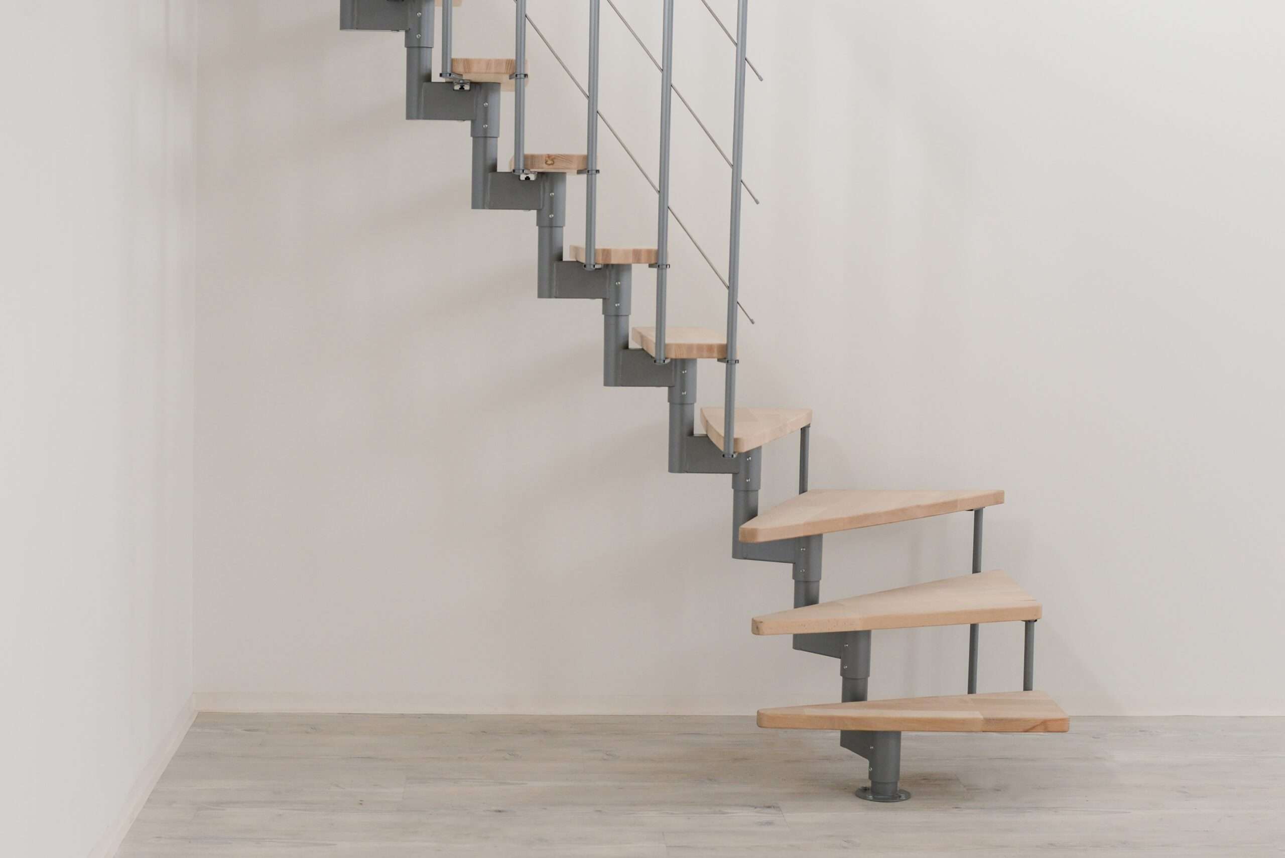 Um die Ecke gedacht hat Minka mit der Raumspartreppe Style Turn. Diese kommt mit Stufen, die auf eine 90-Grad-Wendelung ausgelegt sind. Somit haben Sie die Möglichkeit, die Treppe nach links oder nach rechts gewendelt zu montieren. Damit ist die Style Turn ein wahres Platzwunder, das obendrein noch stylisch aussieht.