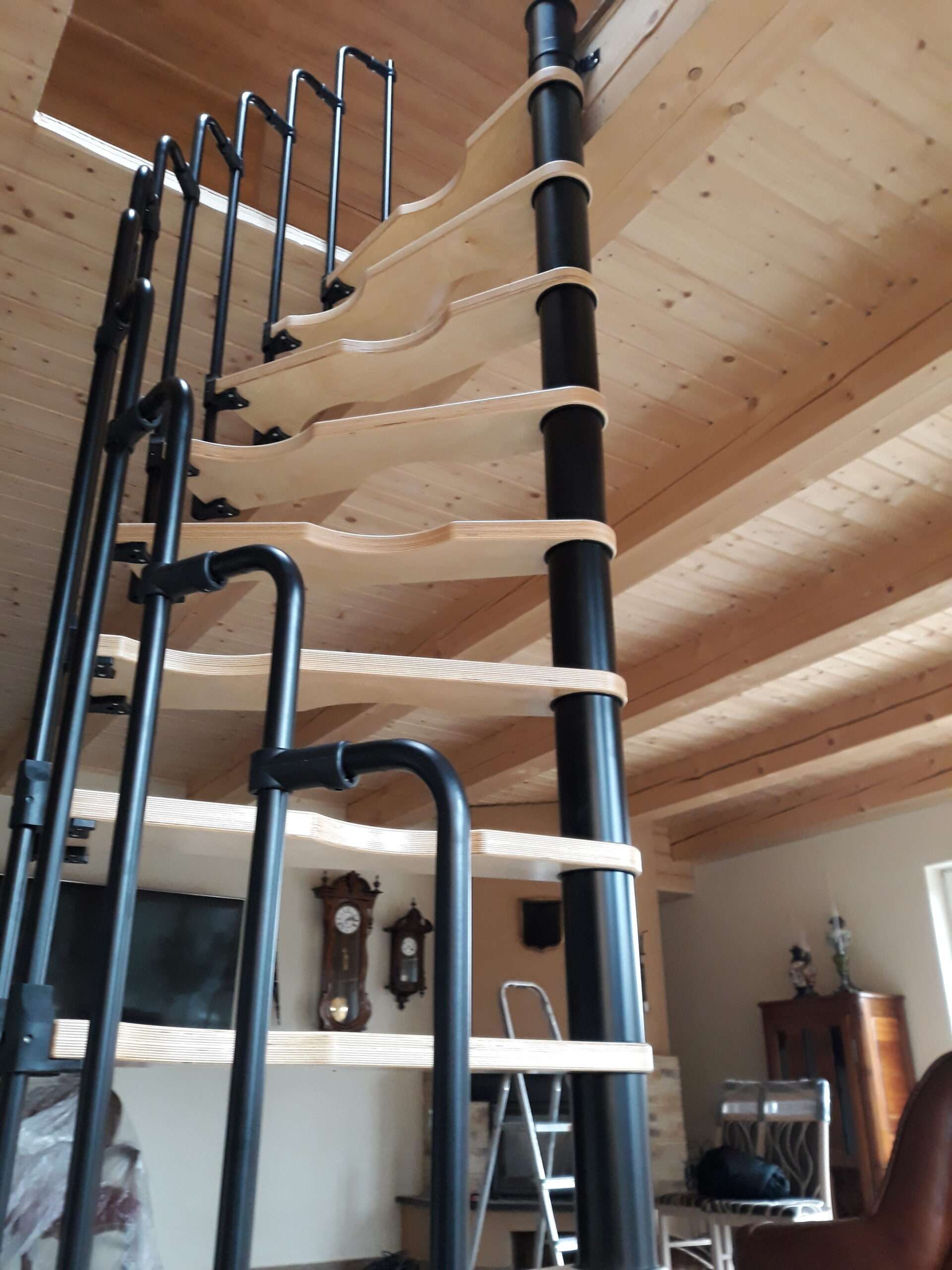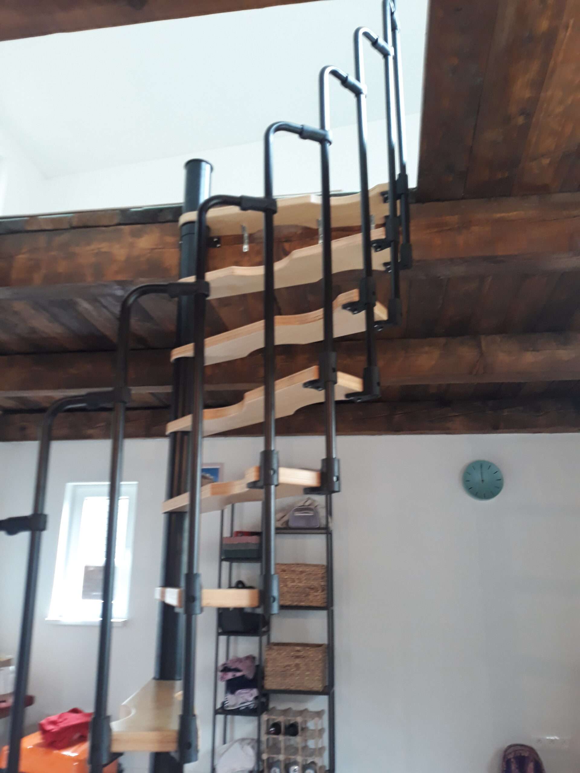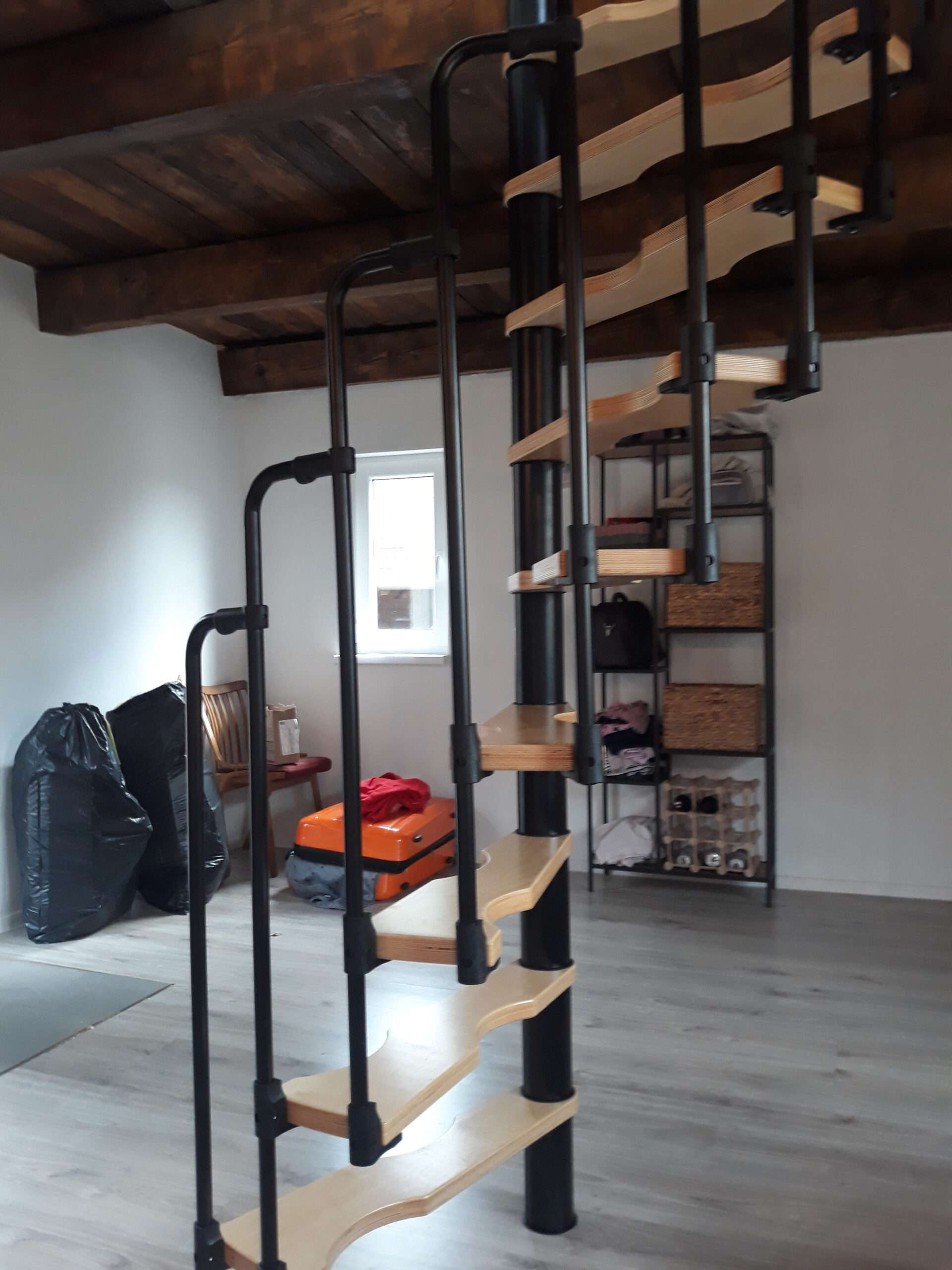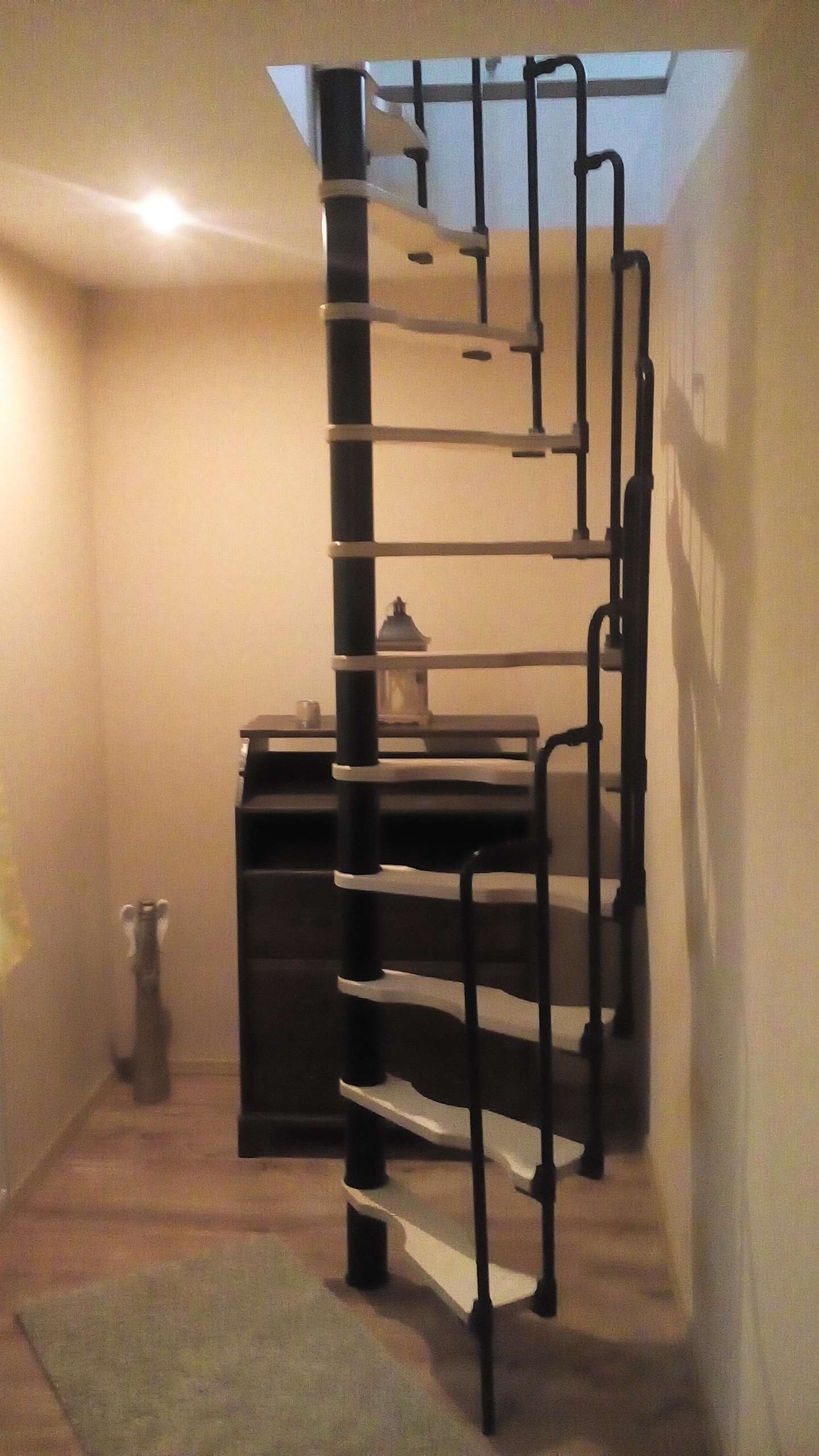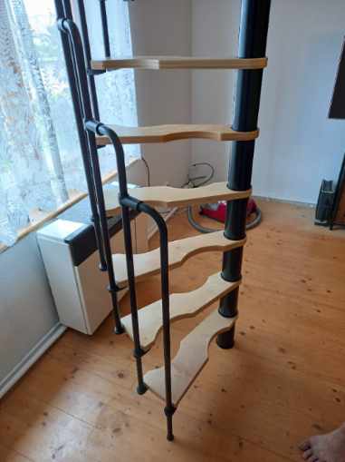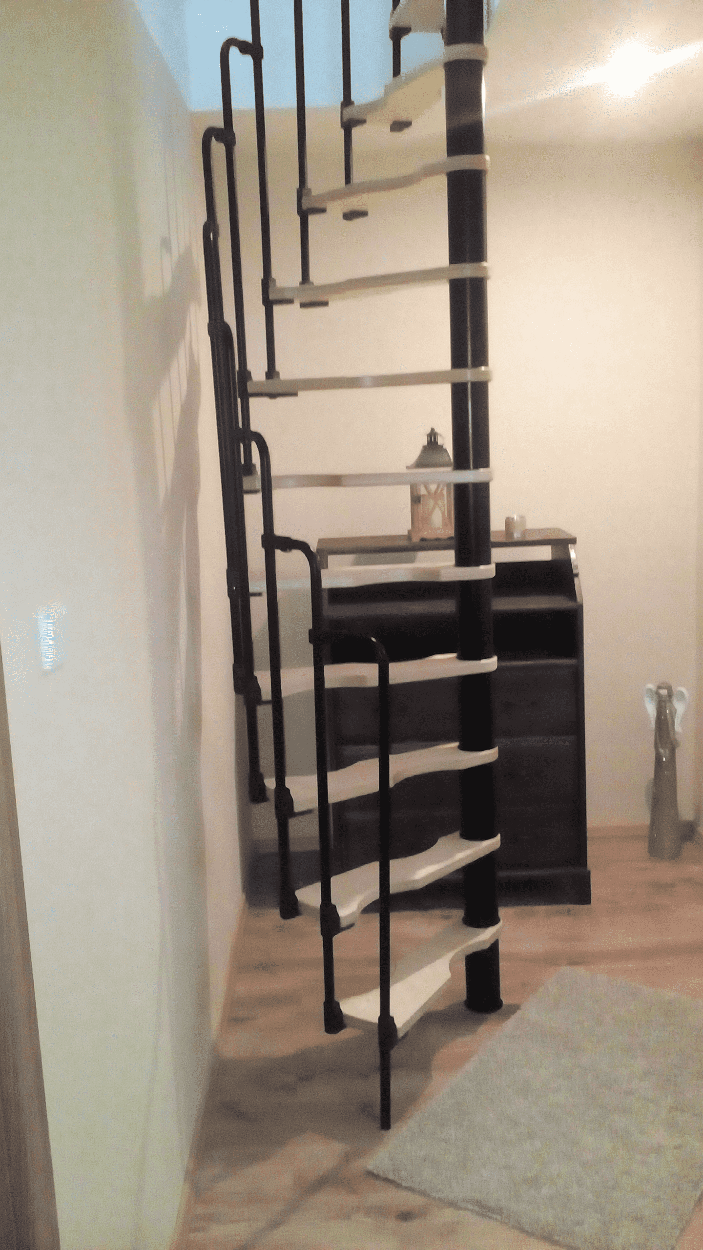 - Platzsparende Spindeltreppe mit schickem Stufengeländer