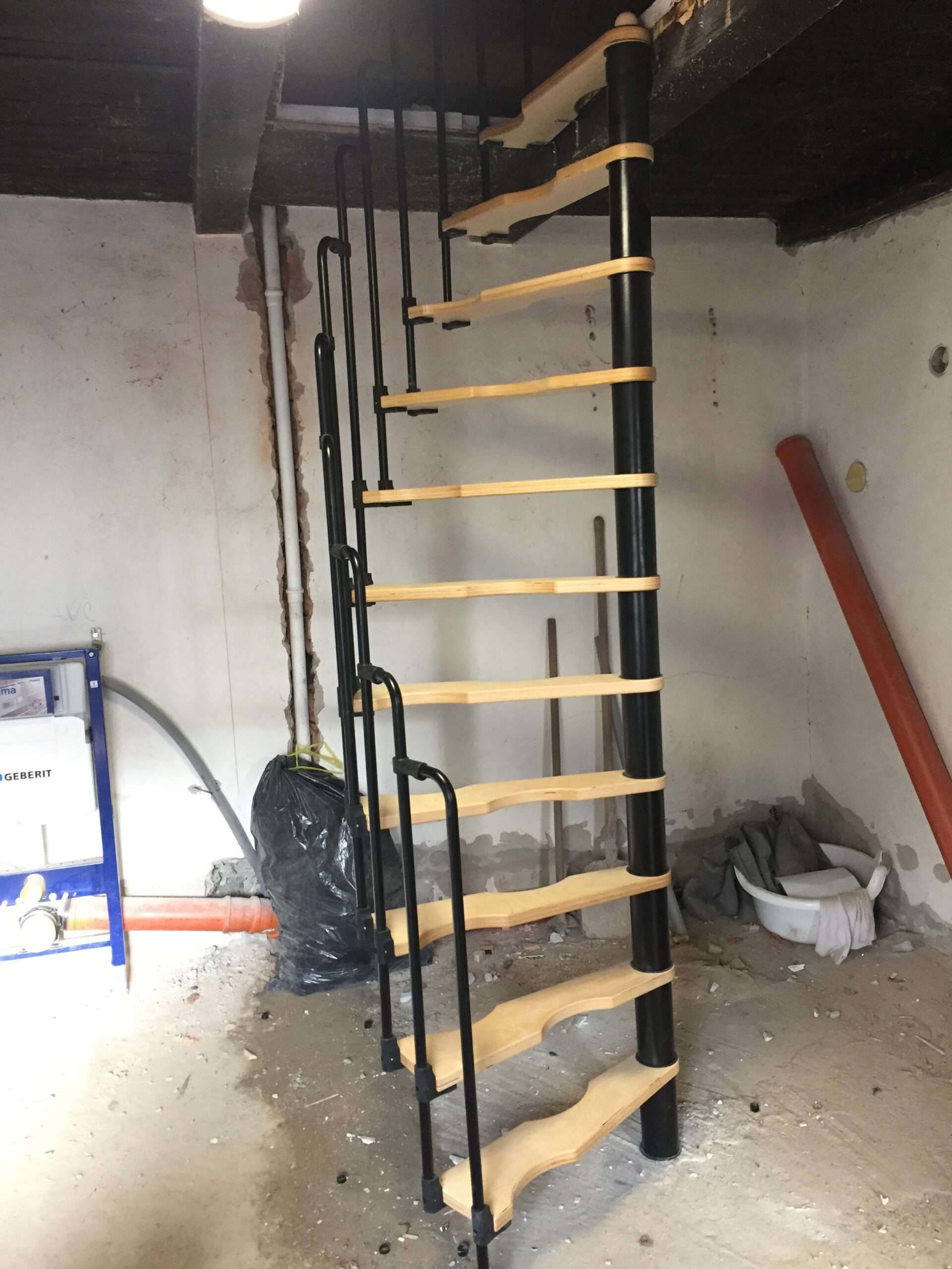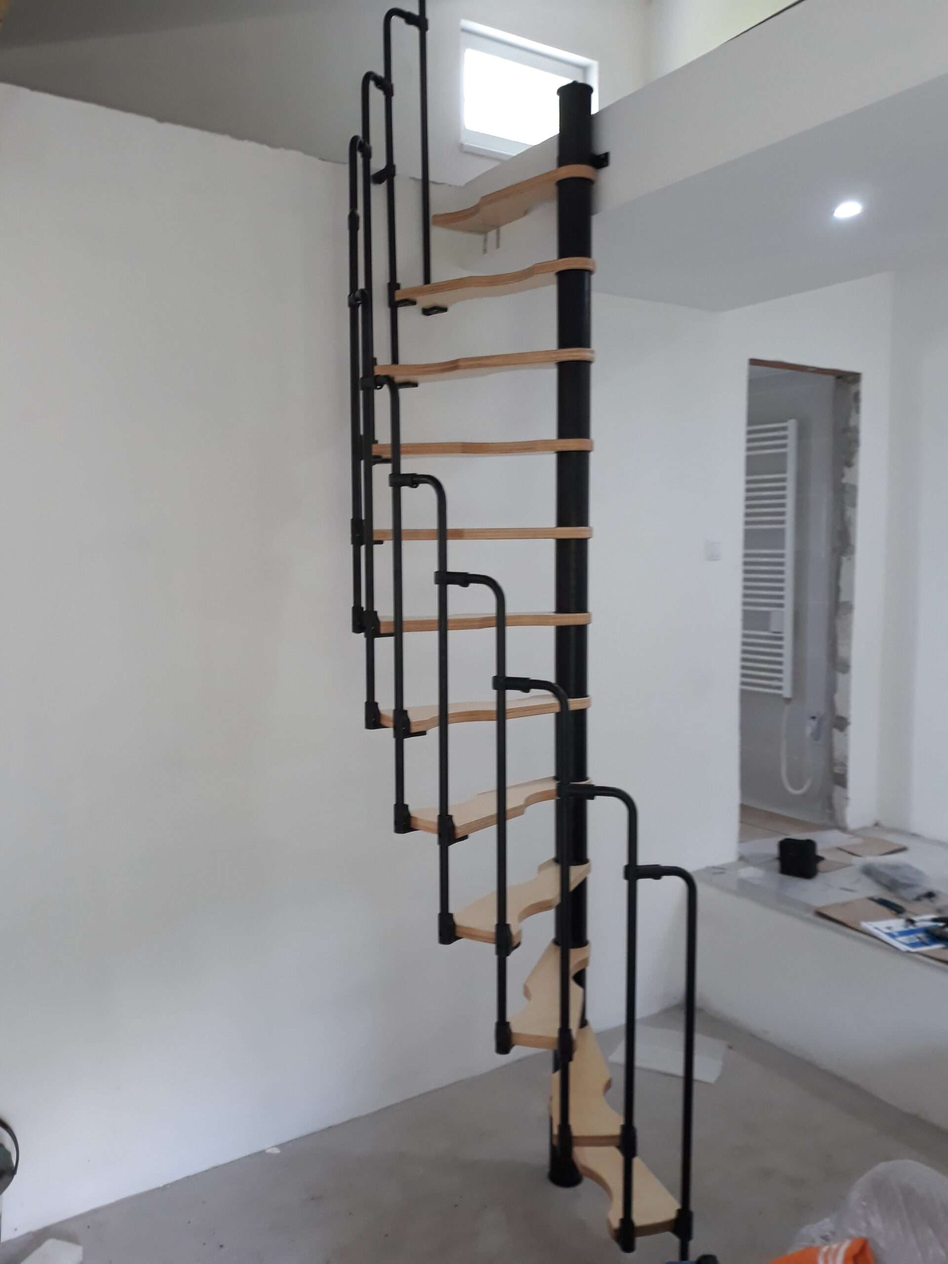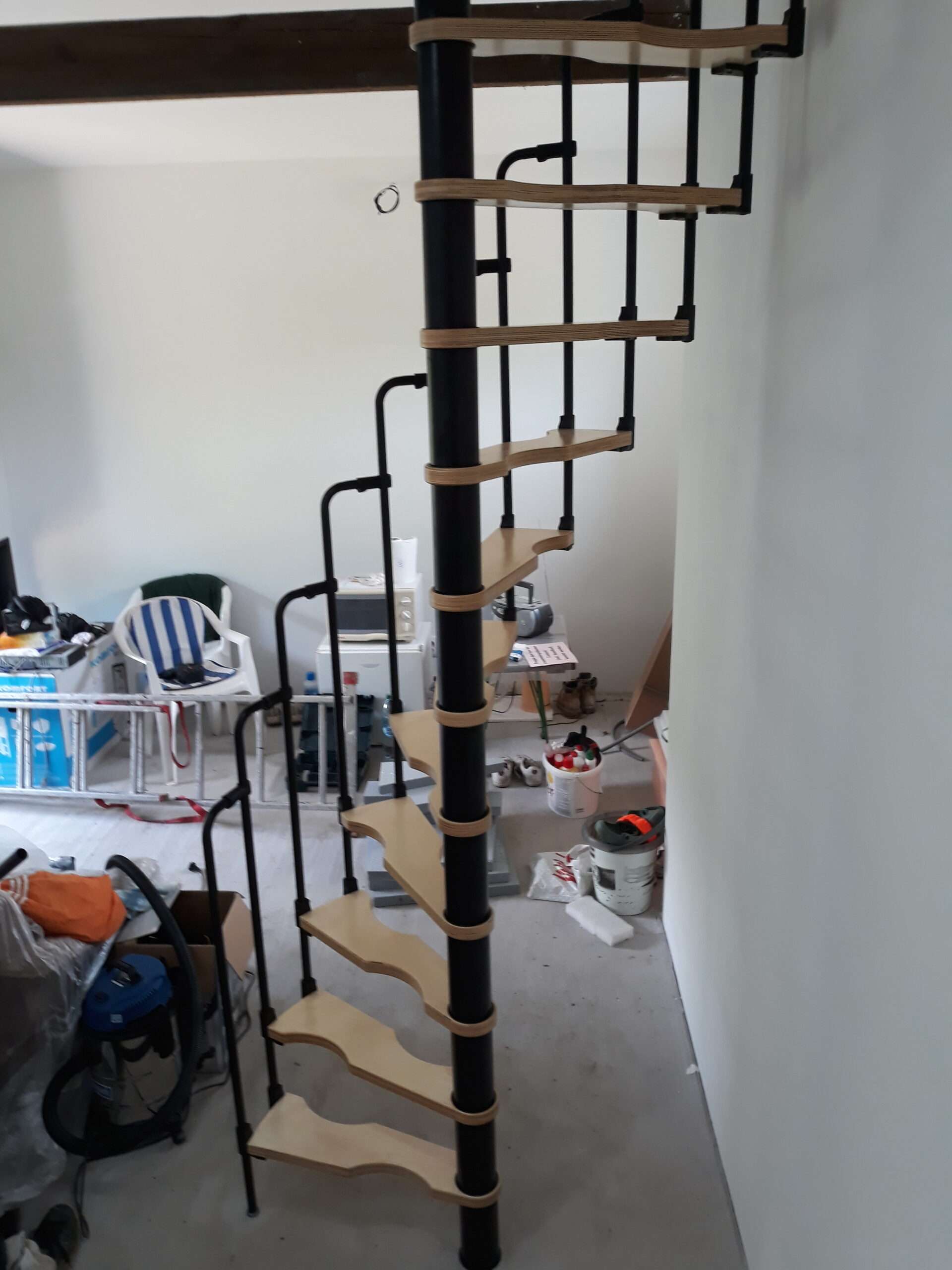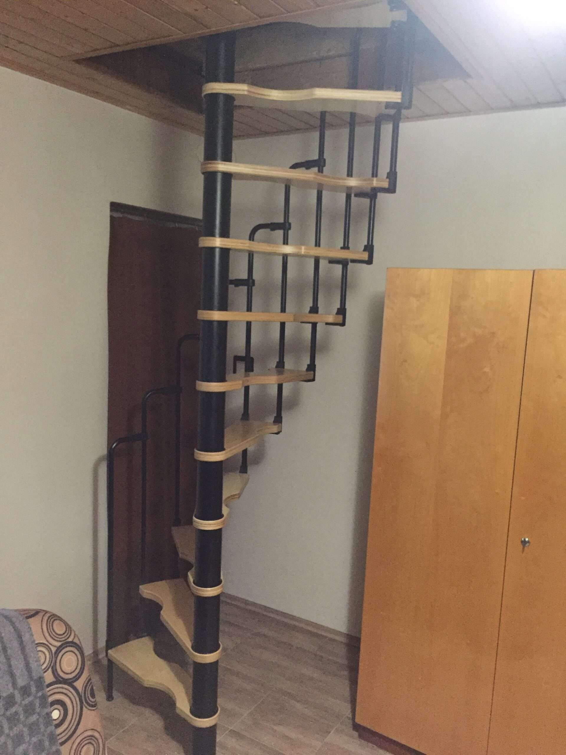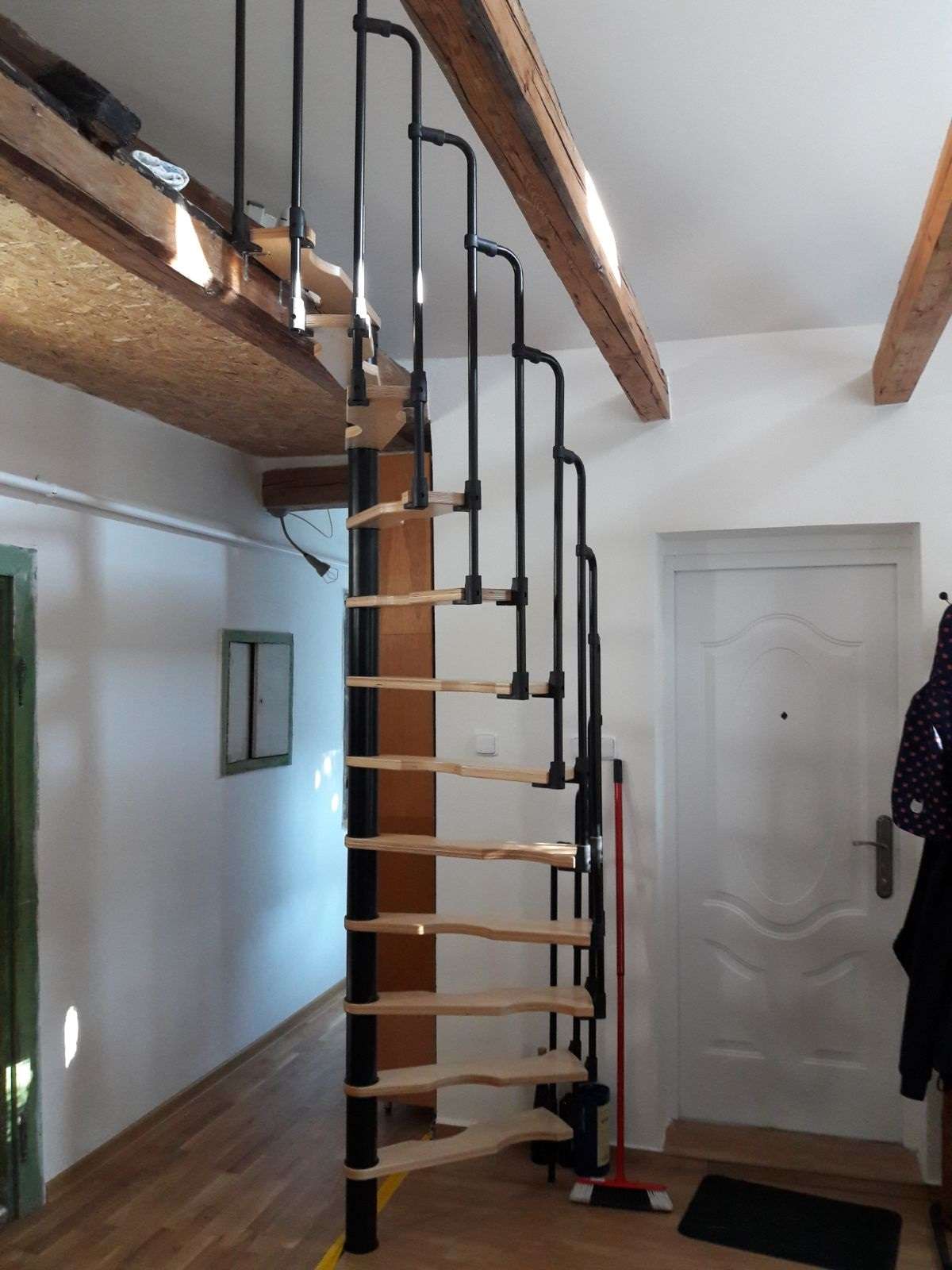 - Platzsparende Spindeltreppe mit schickem Stufengeländer