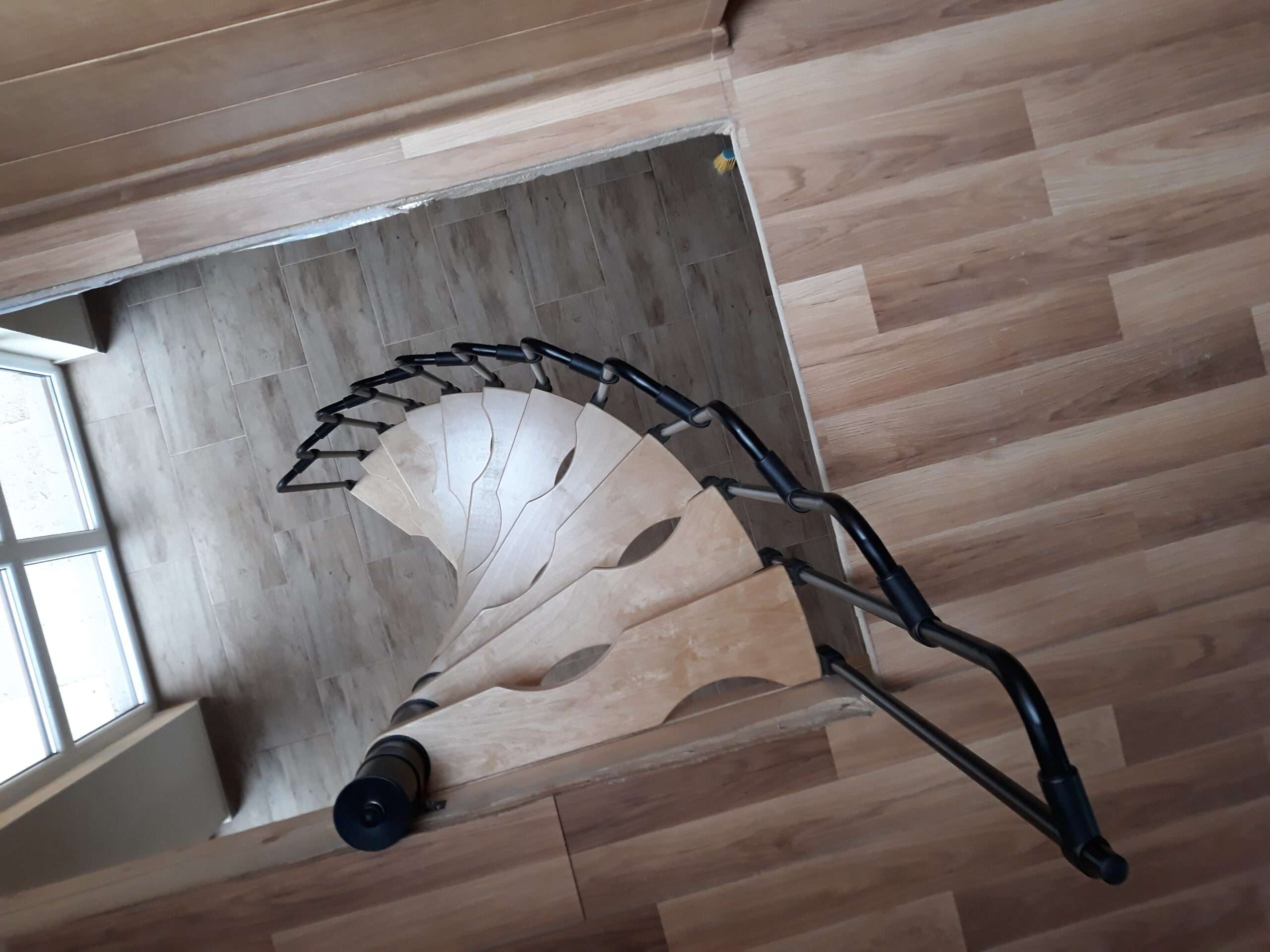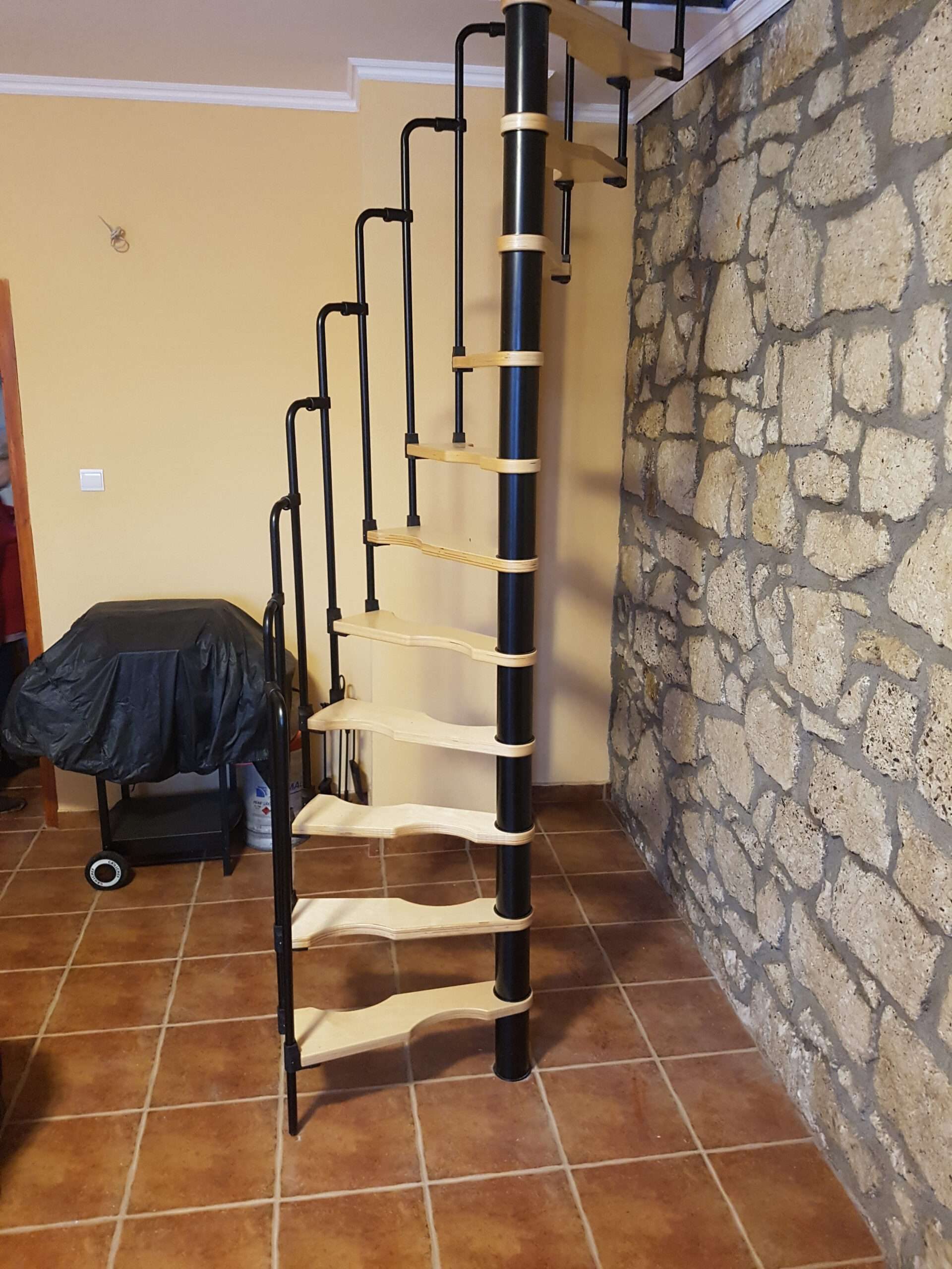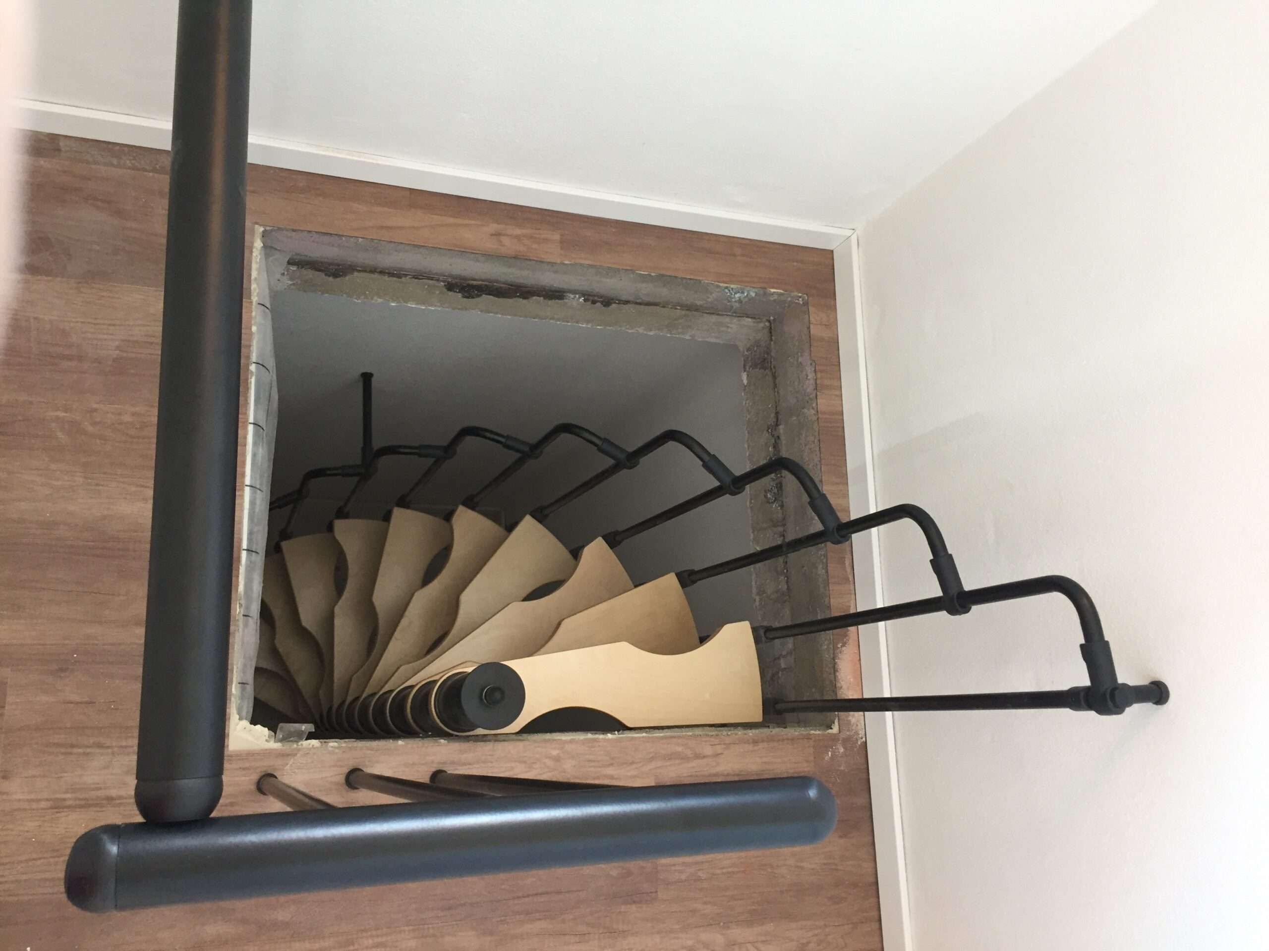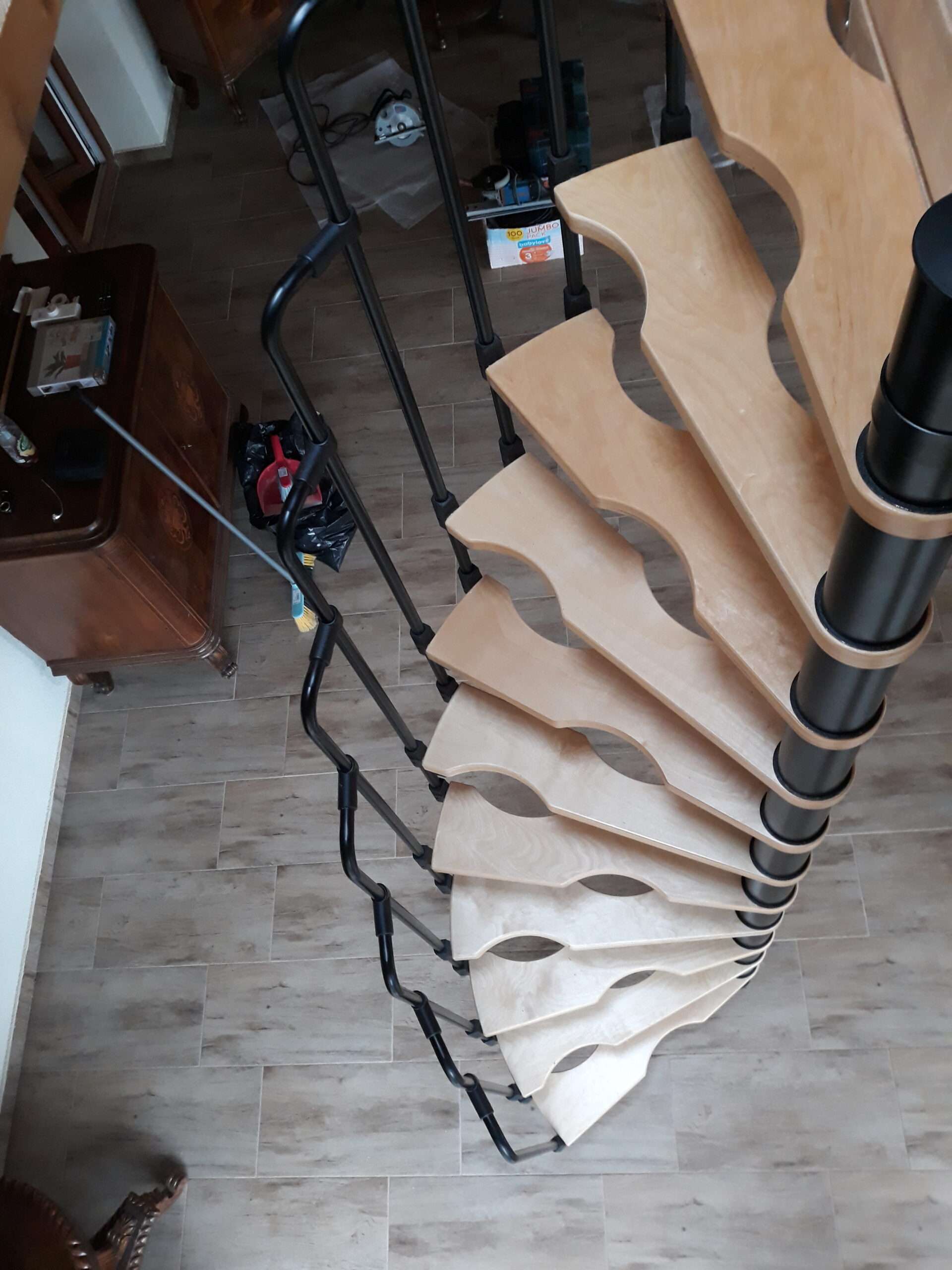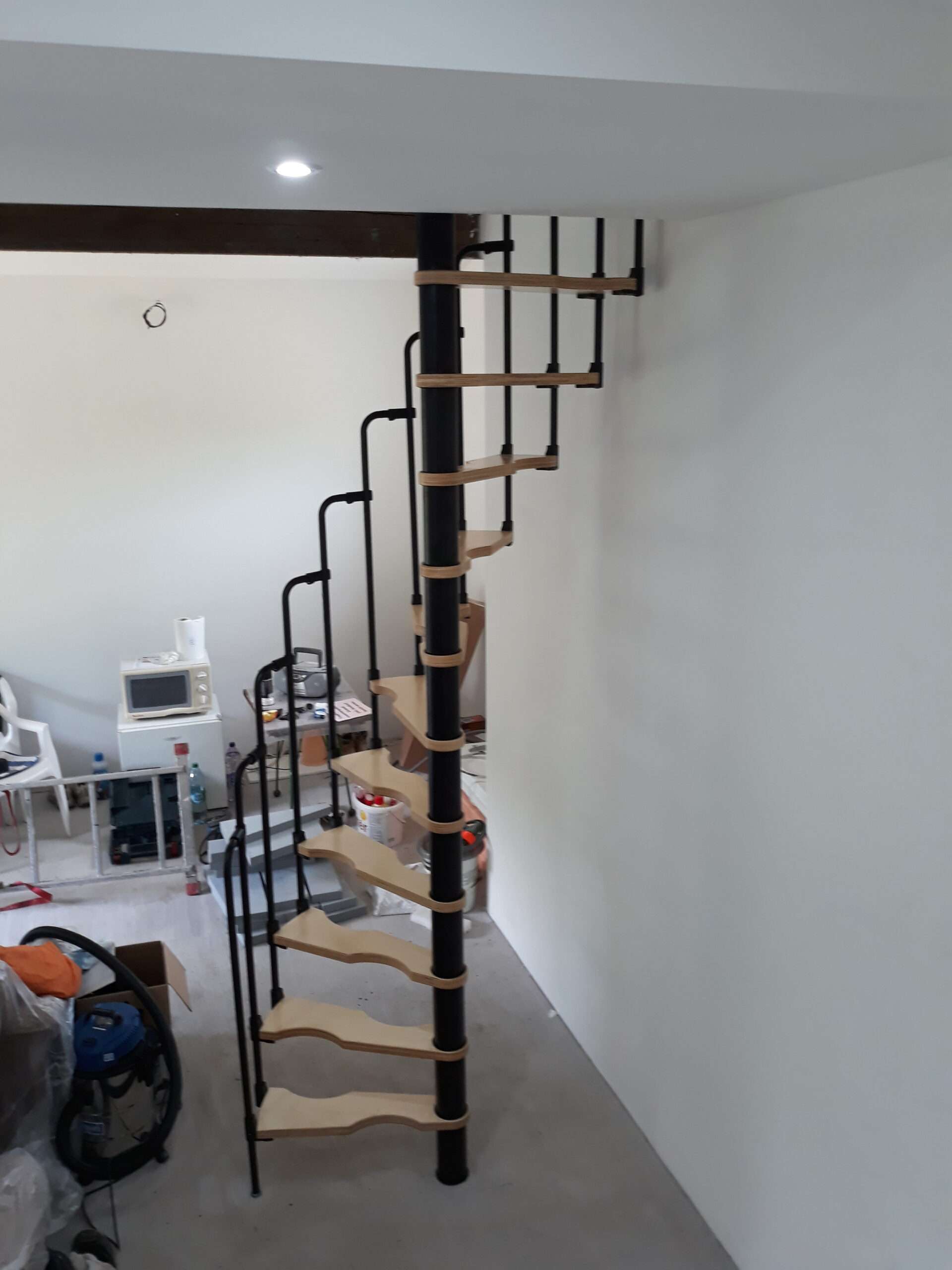 - Platzsparende Spindeltreppe mit schickem Stufengeländer