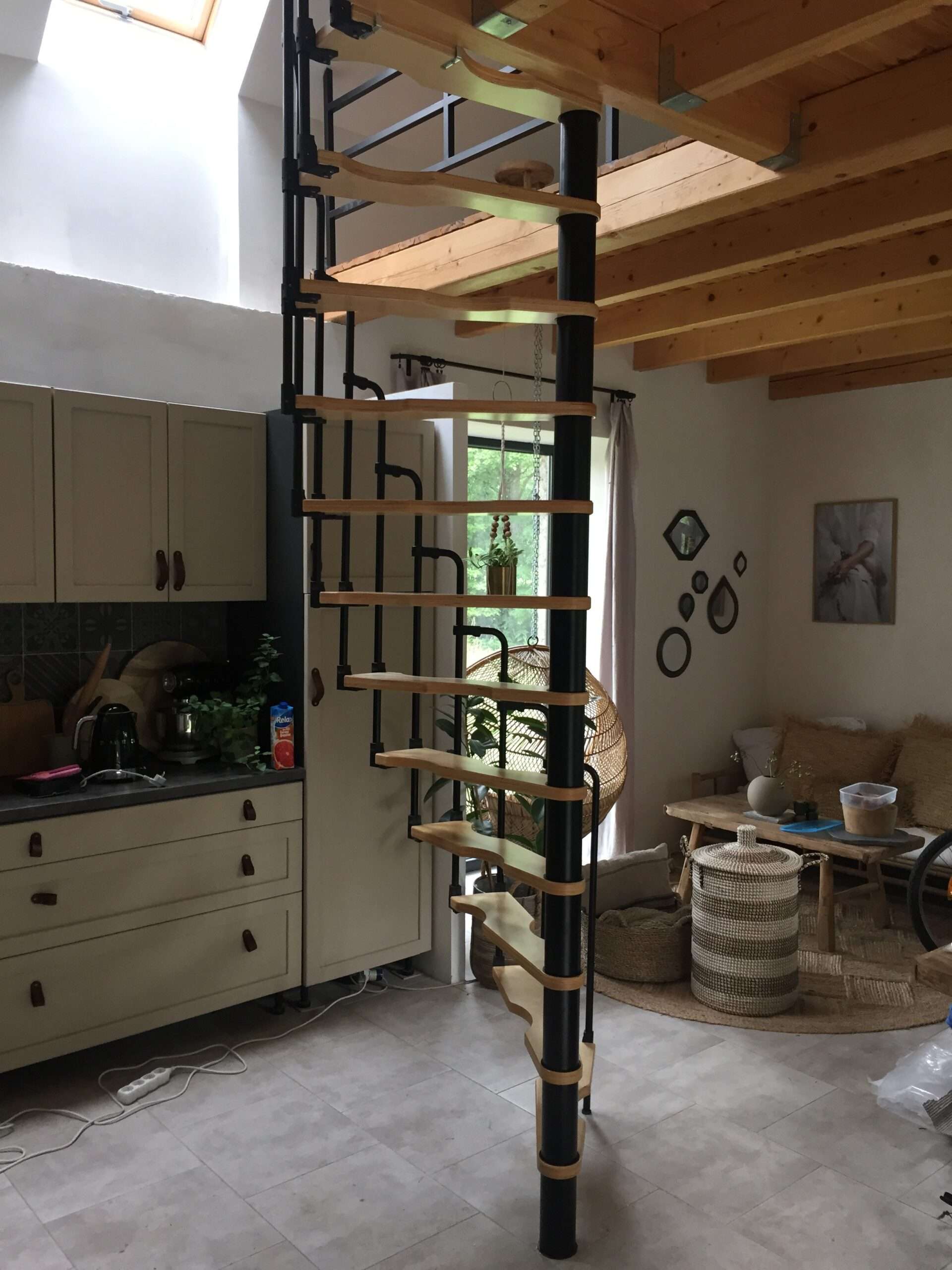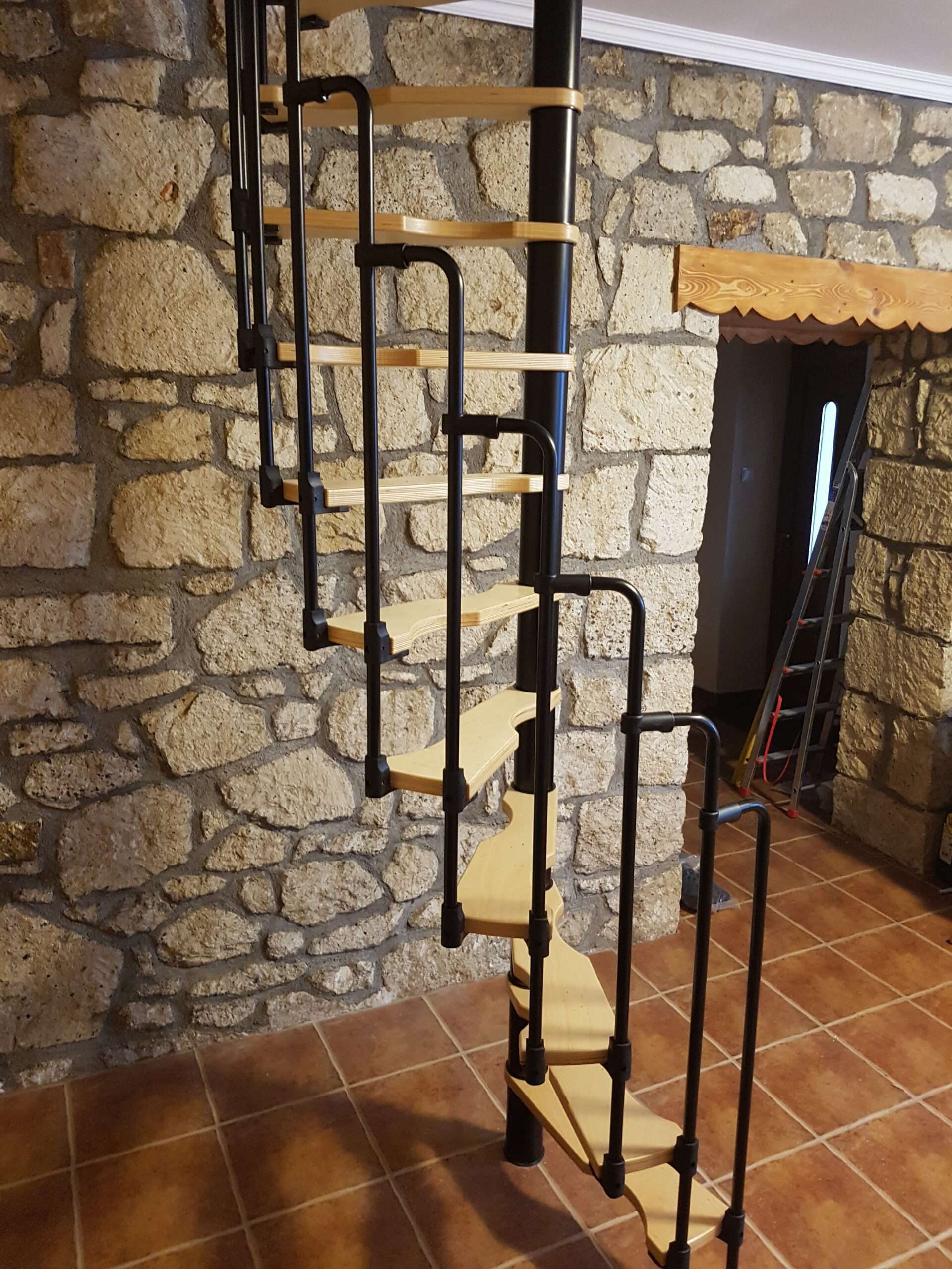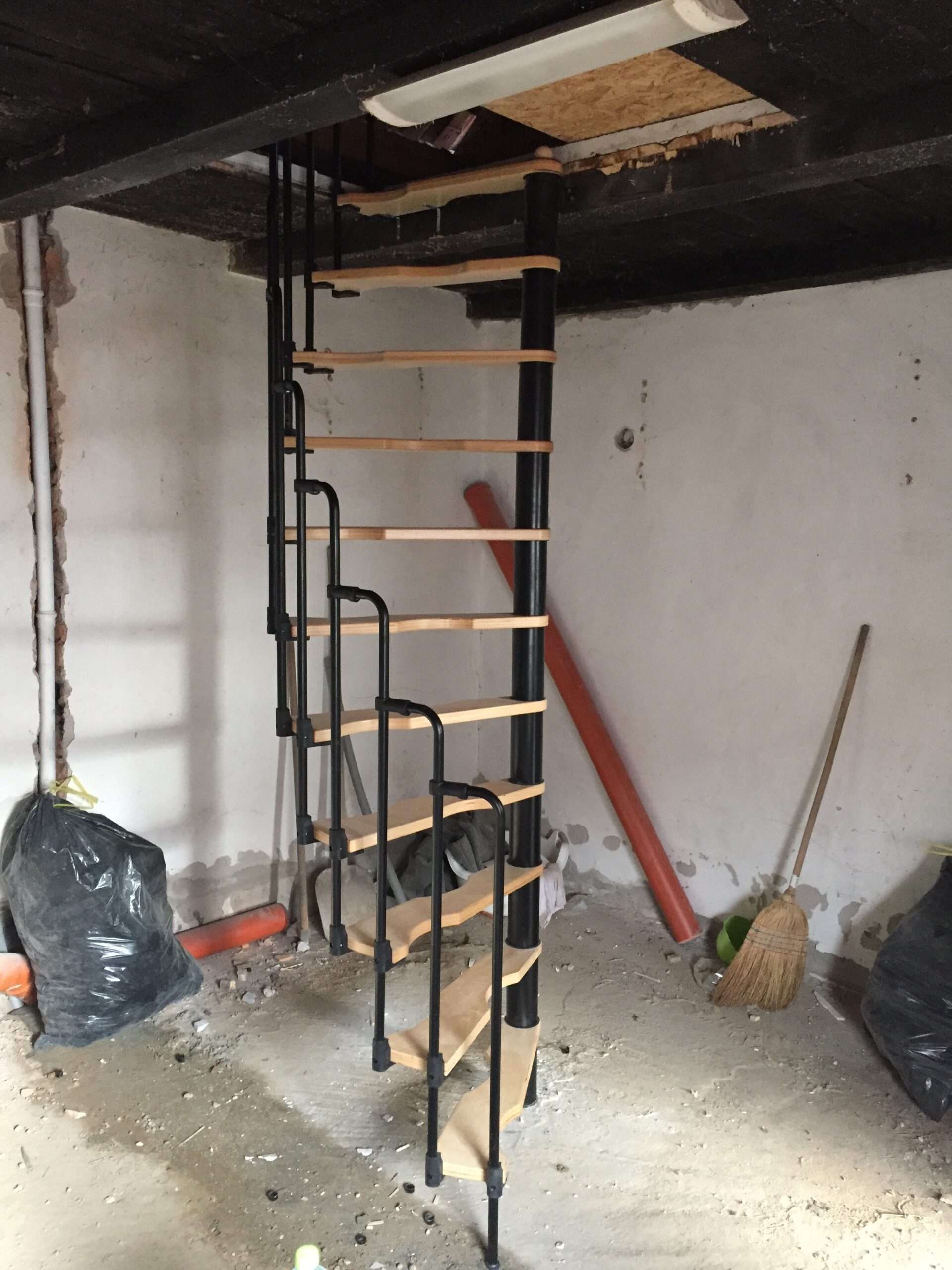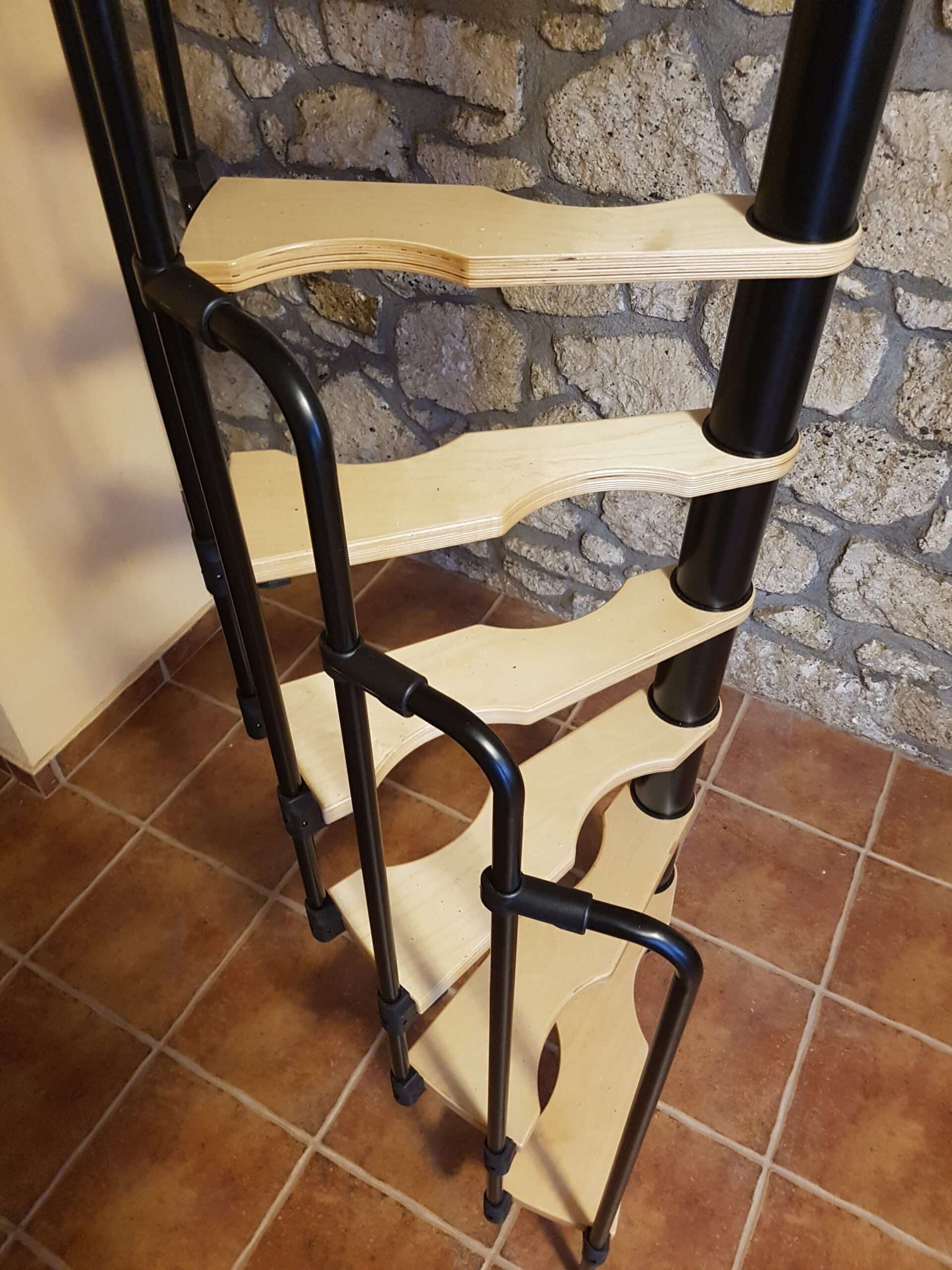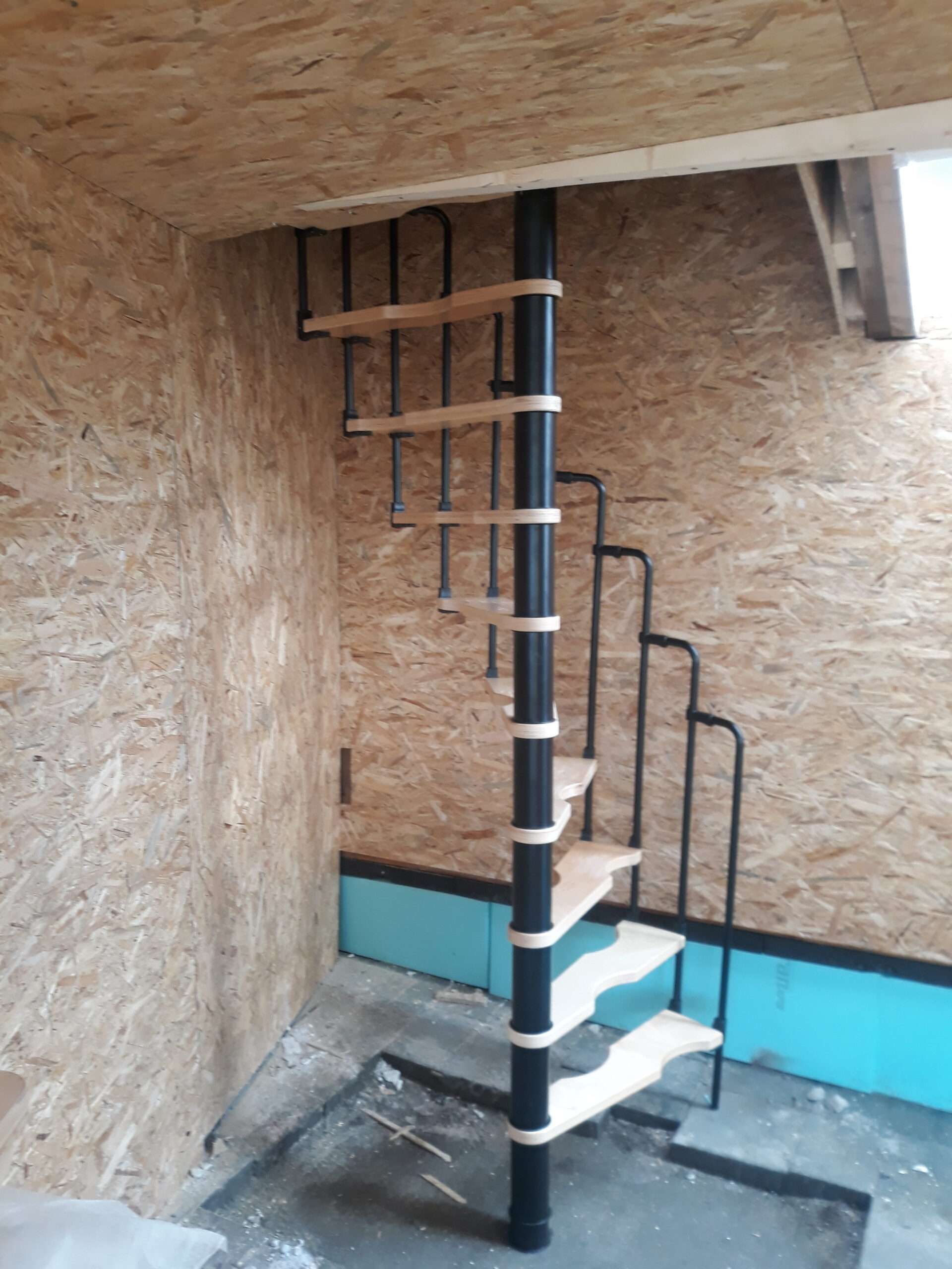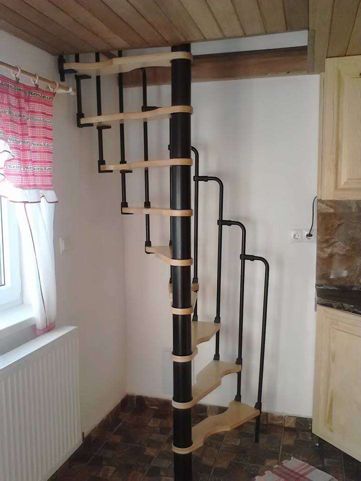 - Platzsparende Spindeltreppe mit schickem Stufengeländer