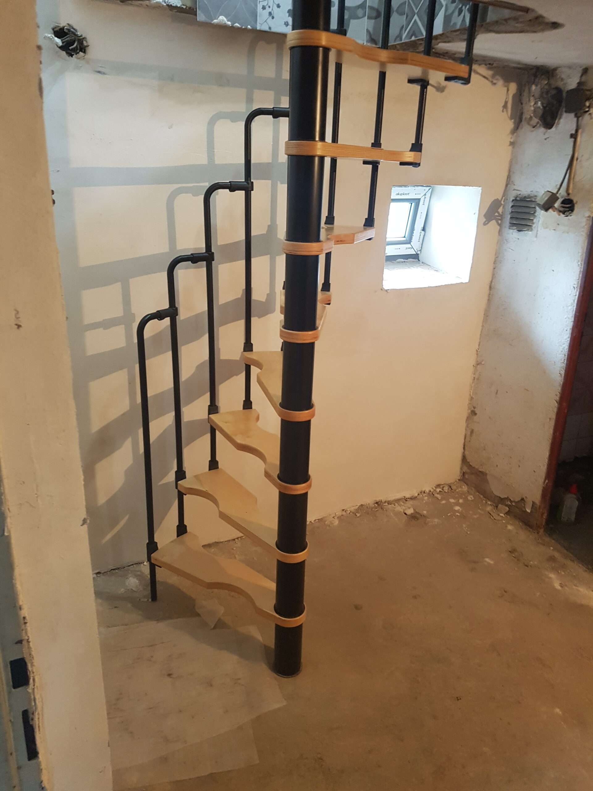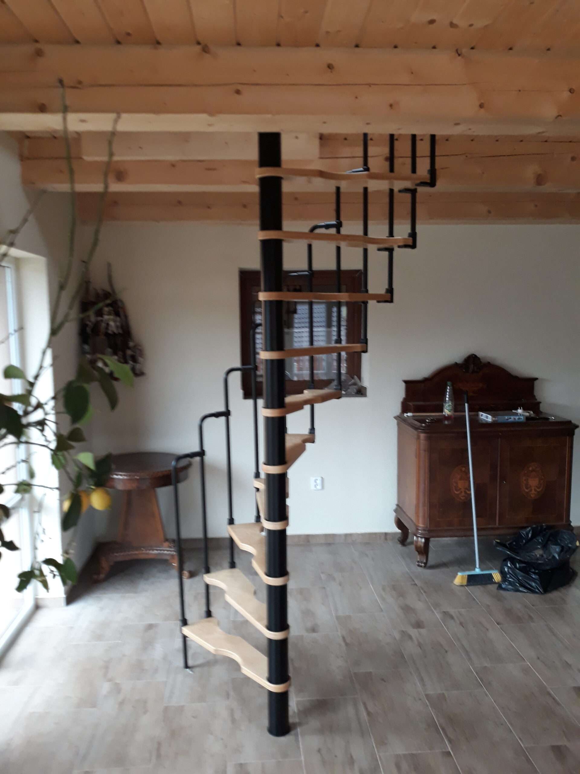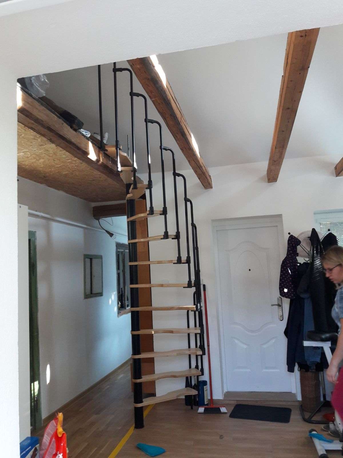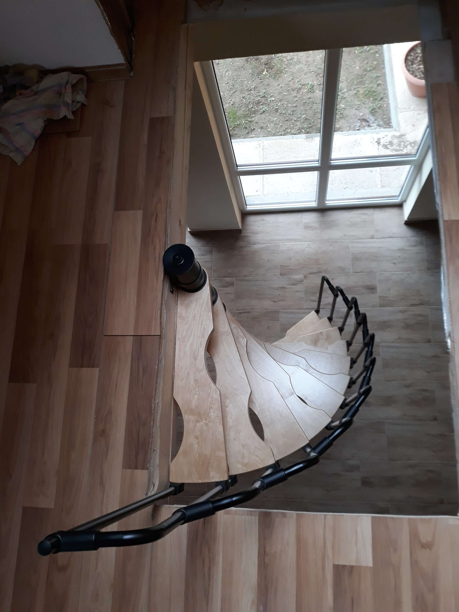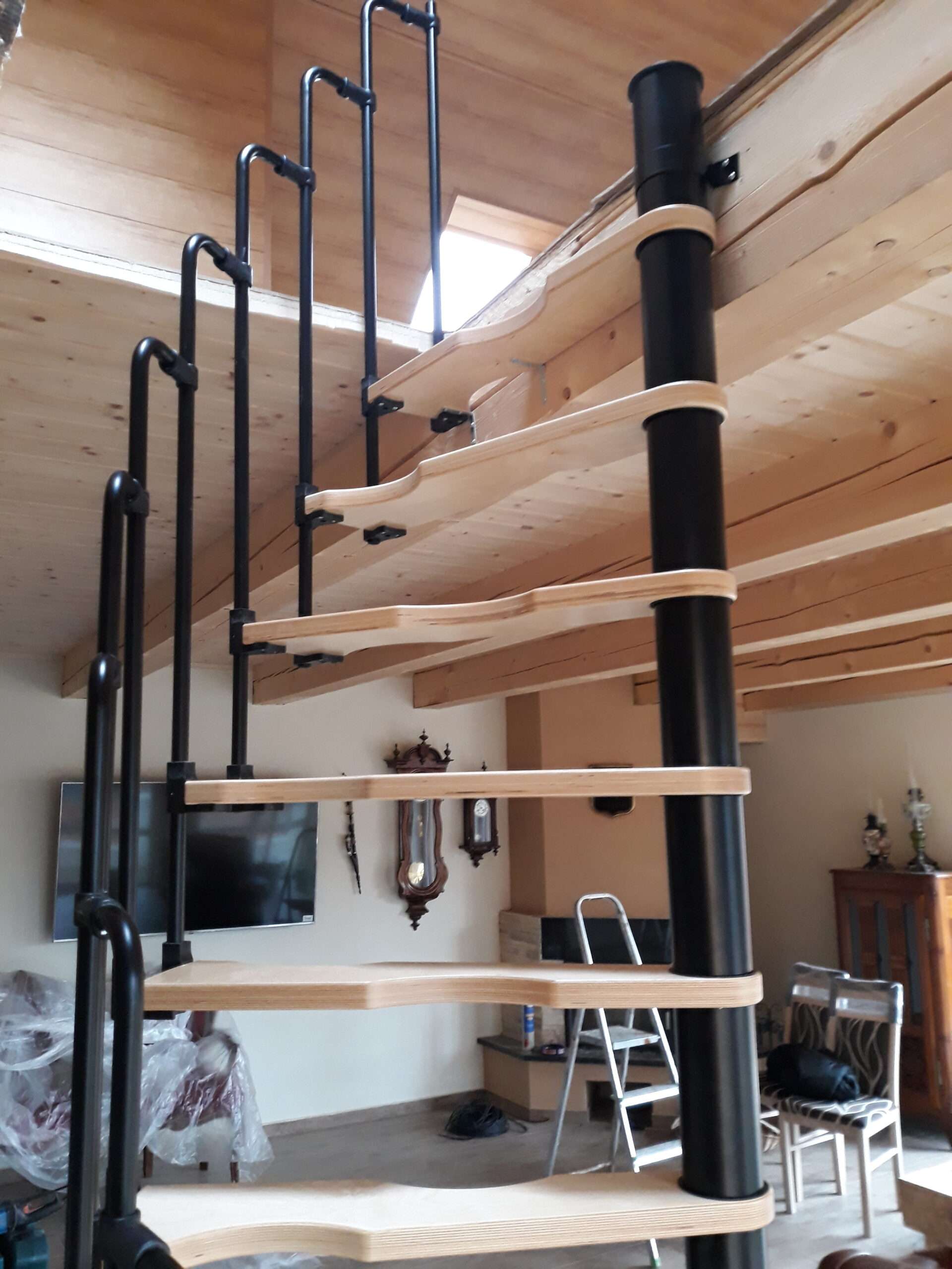 - Platzsparende Spindeltreppe mit schickem Stufengeländer