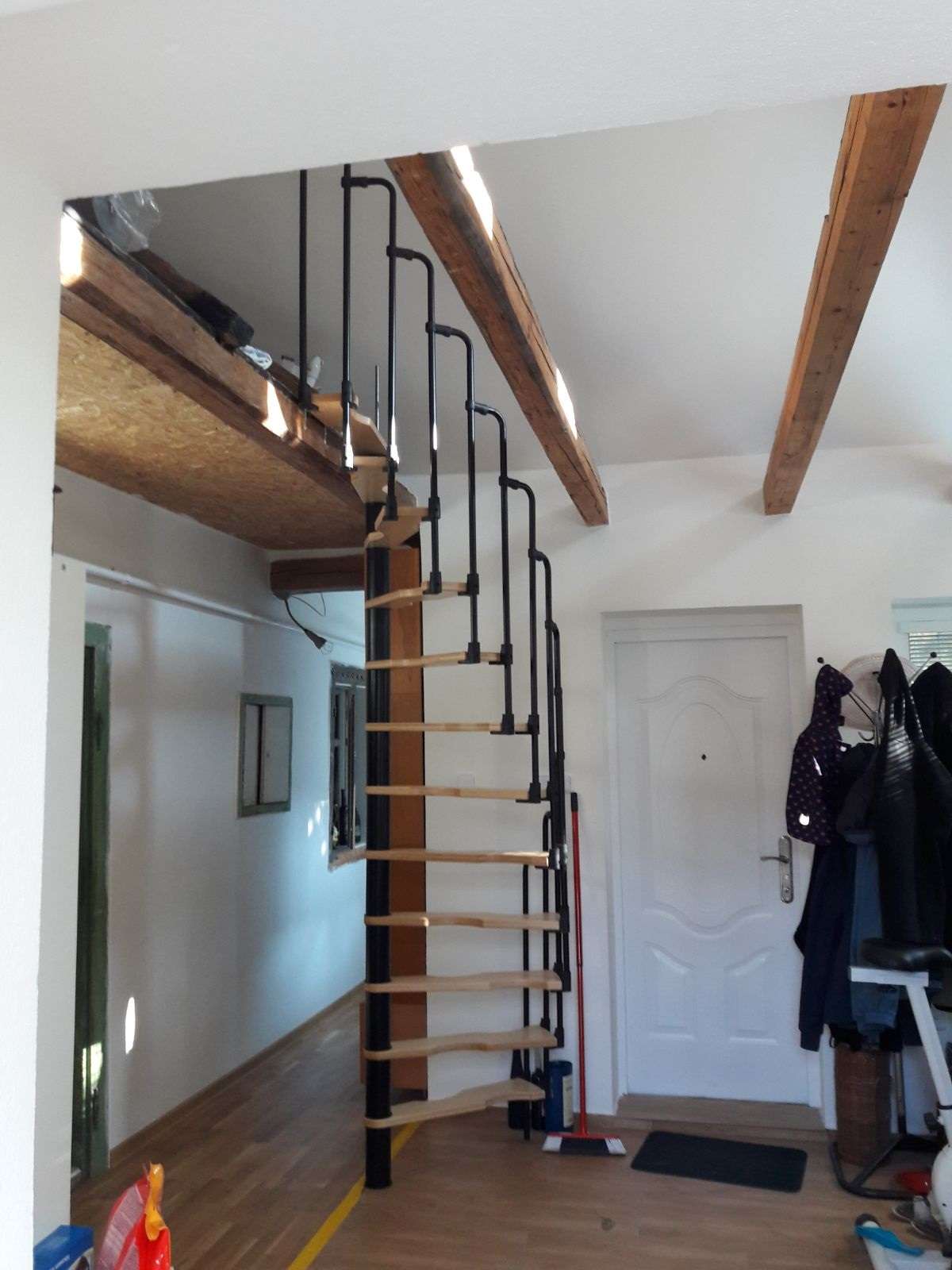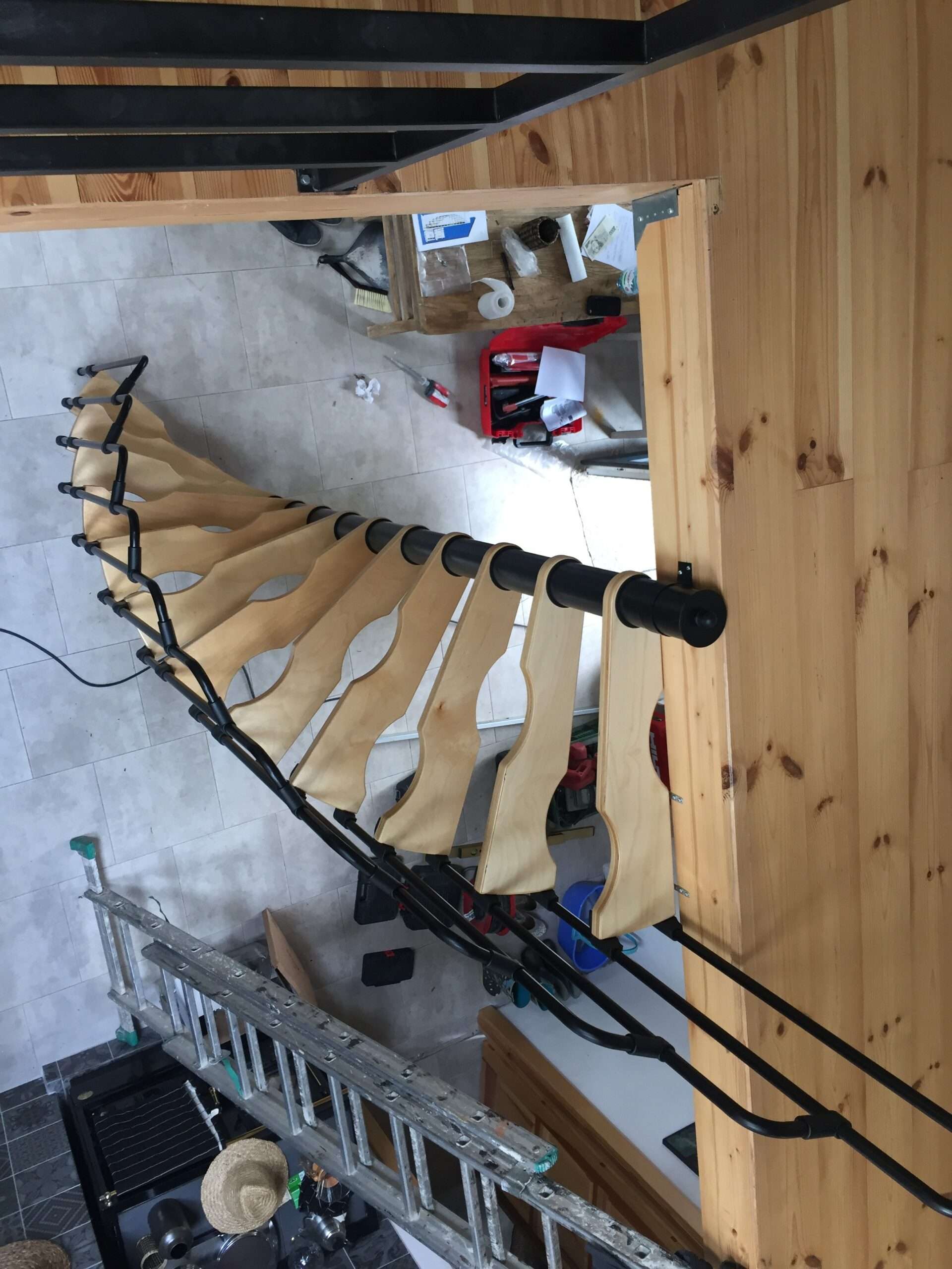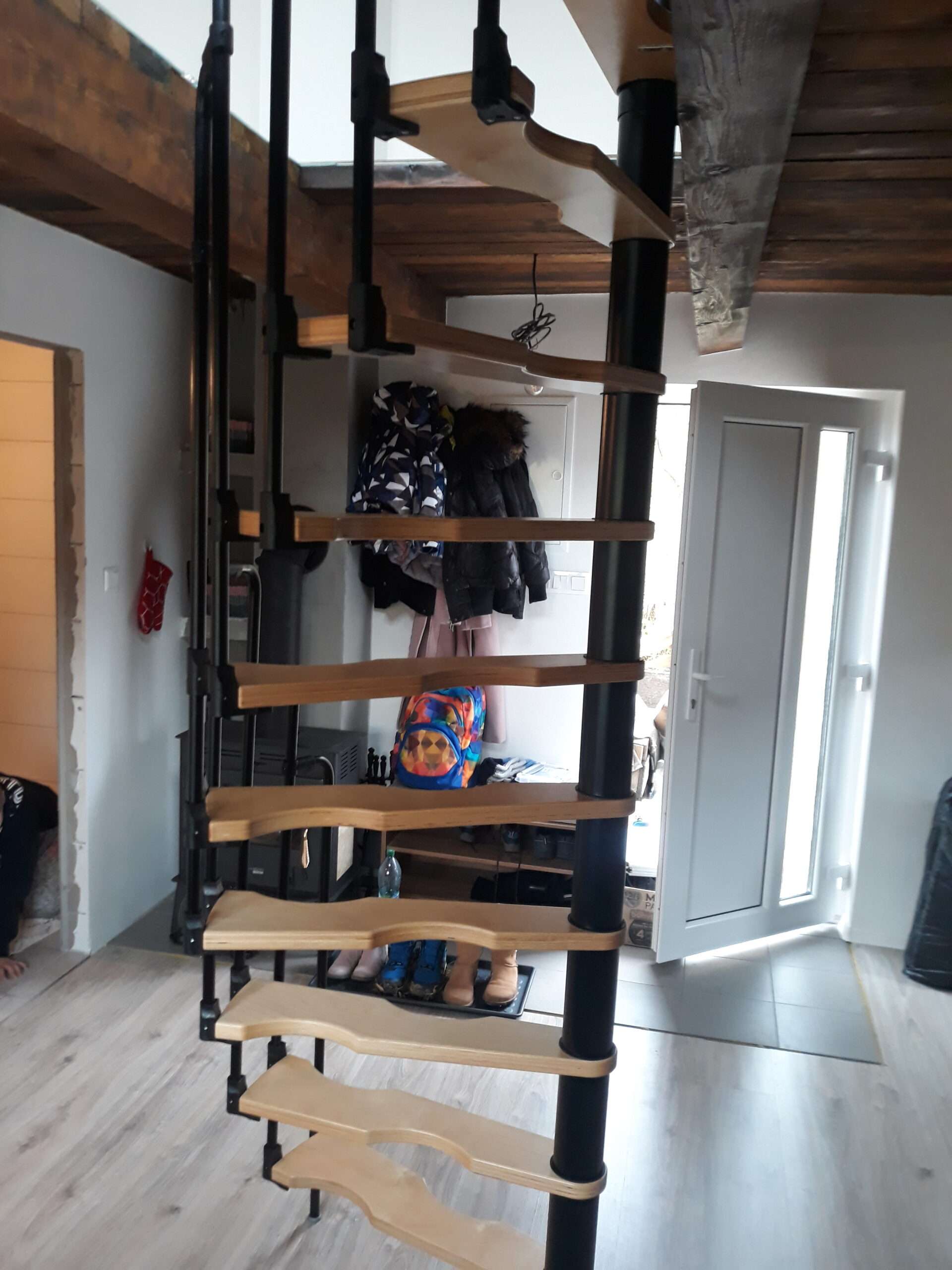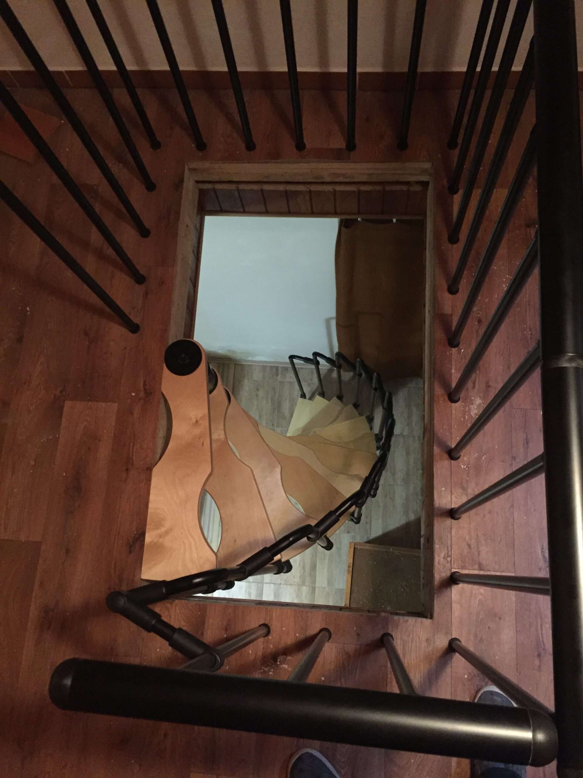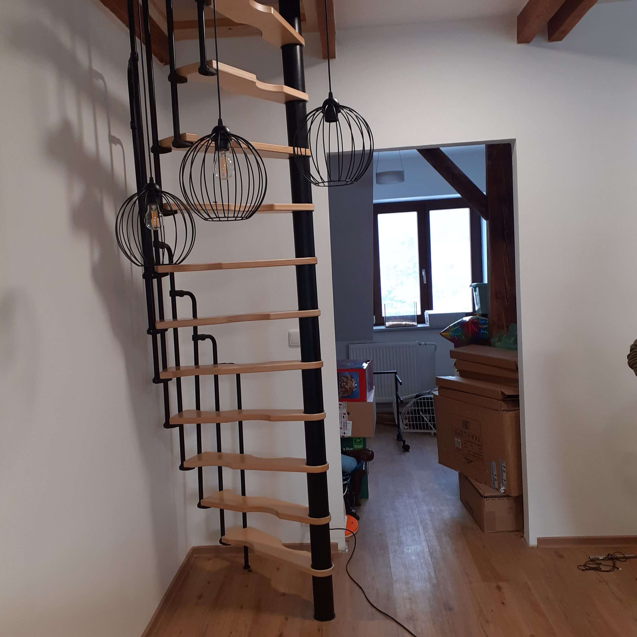 - Platzsparende Spindeltreppe mit schickem Stufengeländer