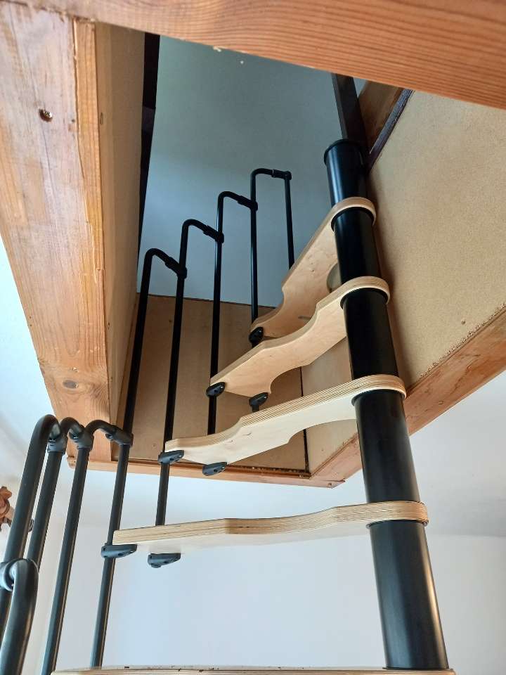 Wer eine möglichst platzsparende Spindeltreppe sucht, ist mit der Suono gut beraten. Sie lässt sich bereits in sehr kleine Deckenöffnungen einbauen. Damit ist sie die perfekte Lösung für den Ausbau oder das Renovieren von Dachböden. Die Suono ist aber nicht nur praktisch, sondern macht auch optisch etwas her. Die Holzstufen und das schicke Stufengeländer ergeben einen außergewöhnlichen Look, der jeden Wohnraum aufwertet.