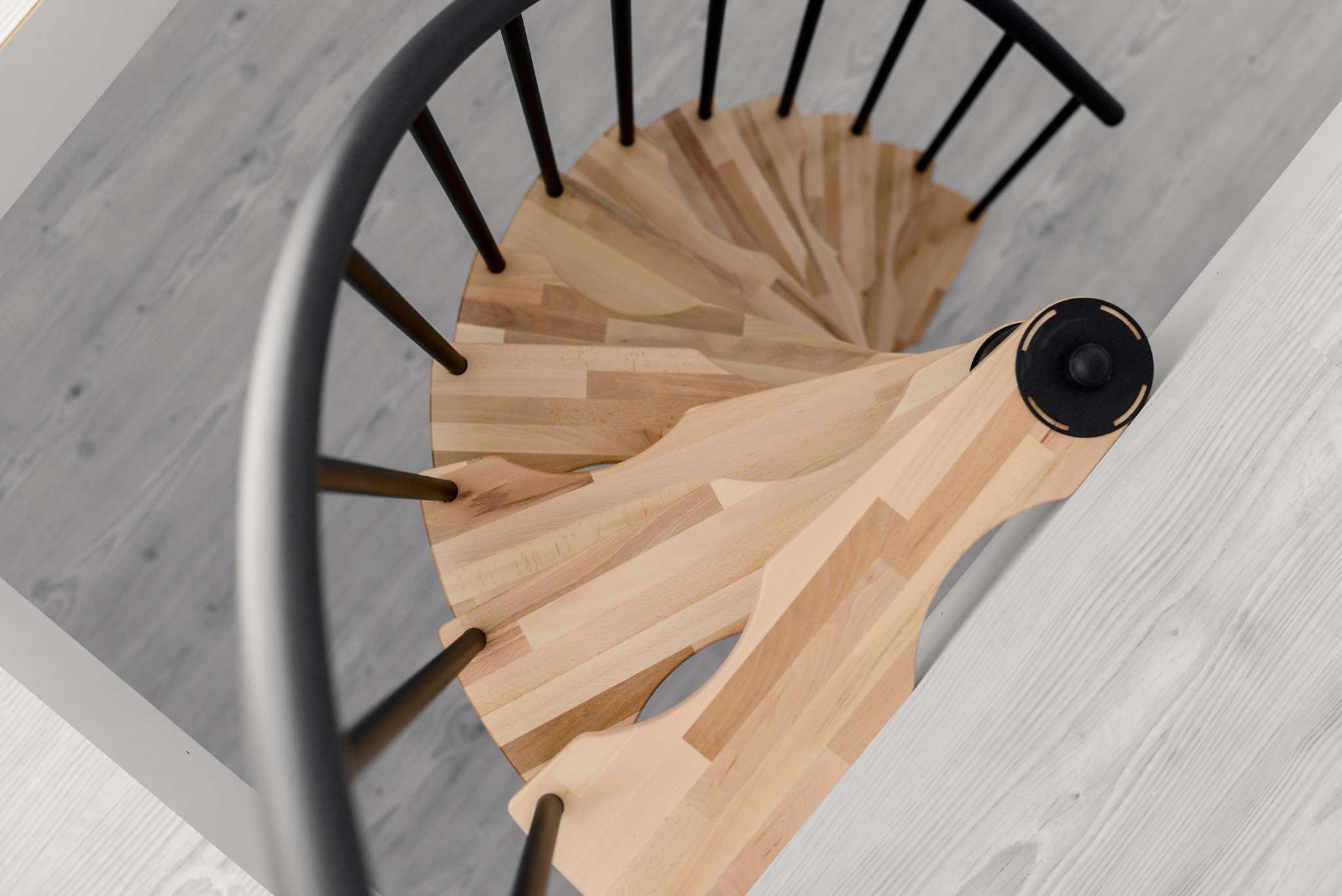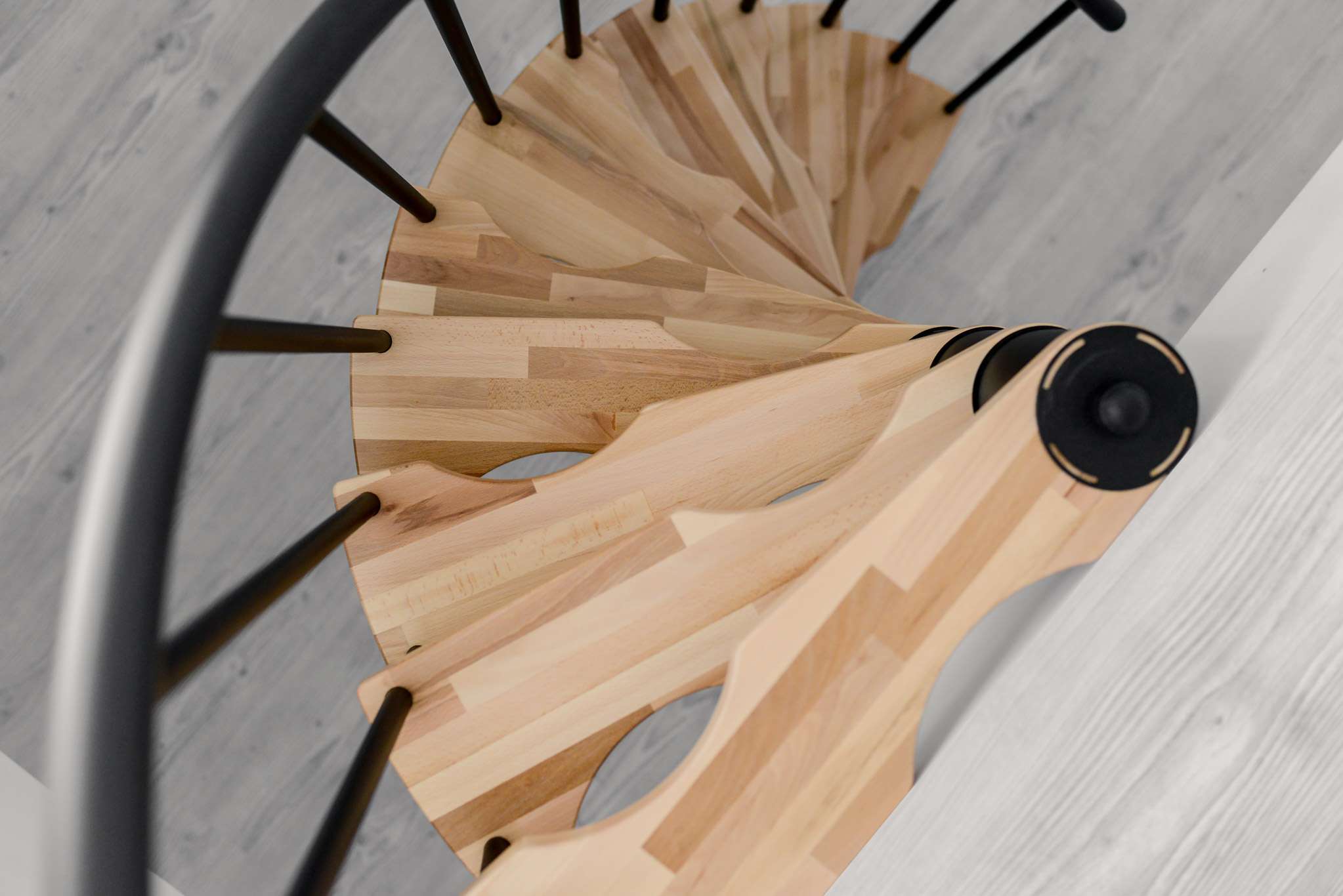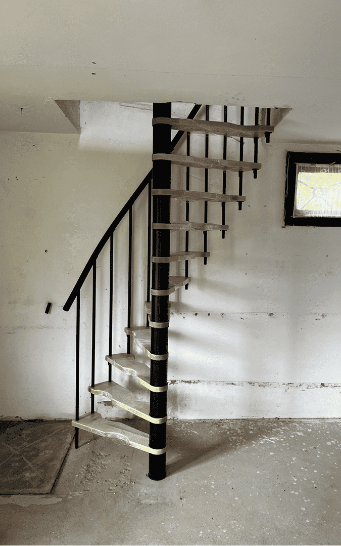 • Besonders platzsparende Spindeltreppe