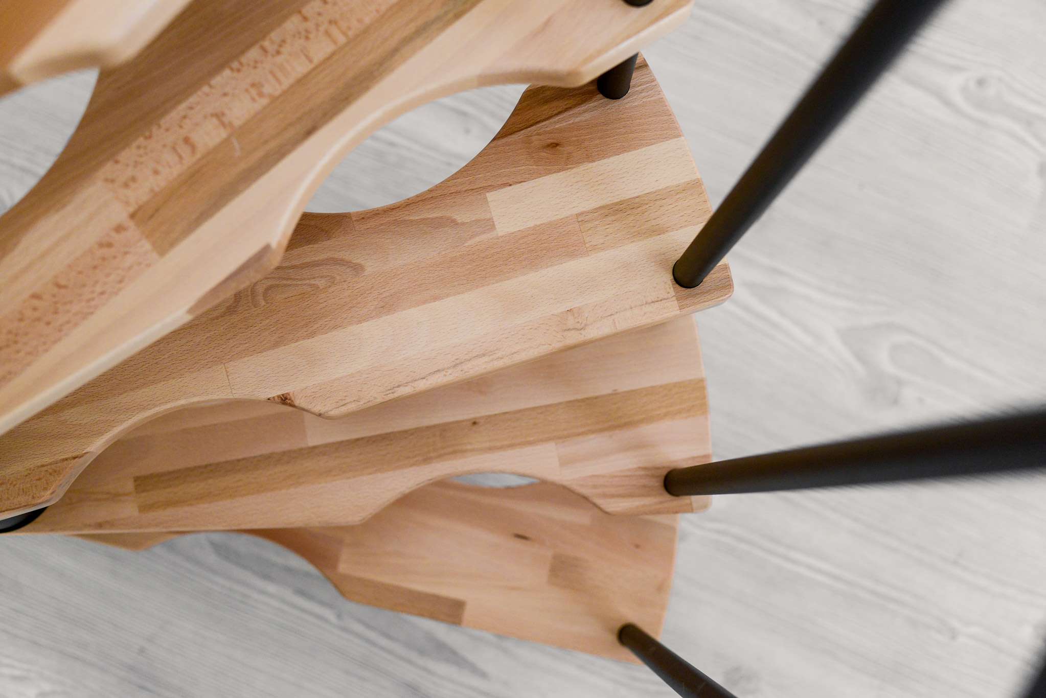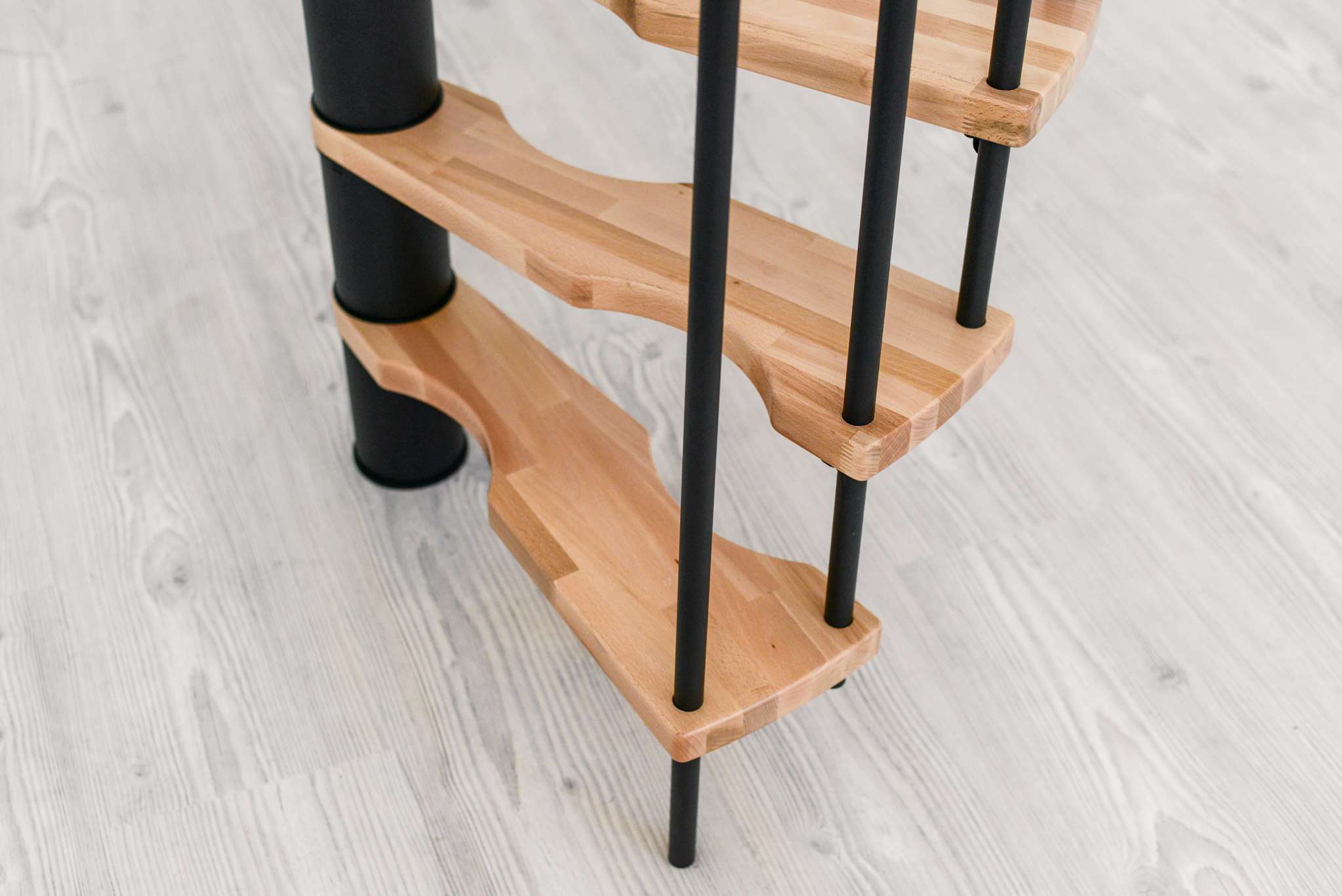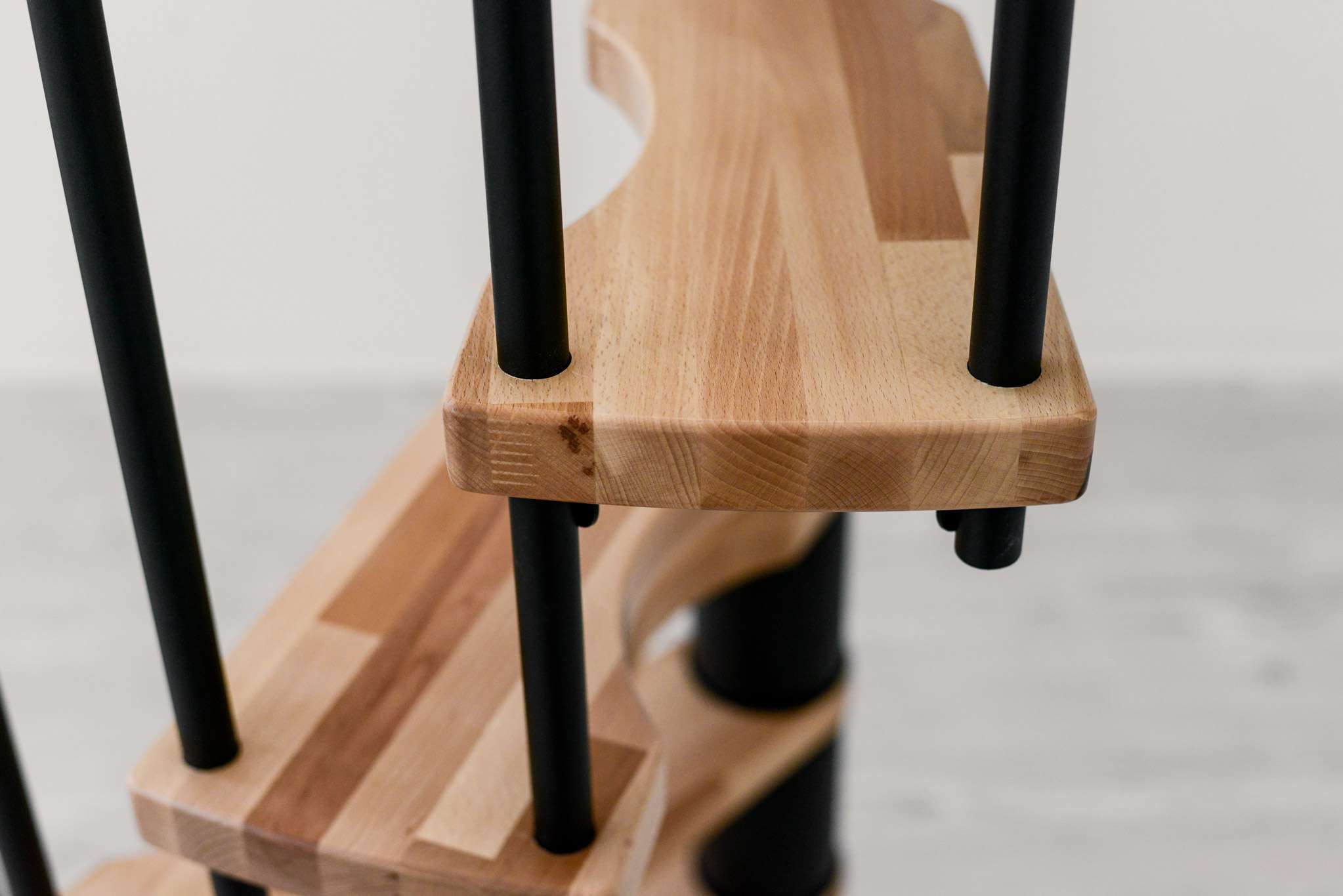 • Stufen aus Buchenholz und Metallteile pulverbeschichtet in Schwarz, Grau oder Weiß