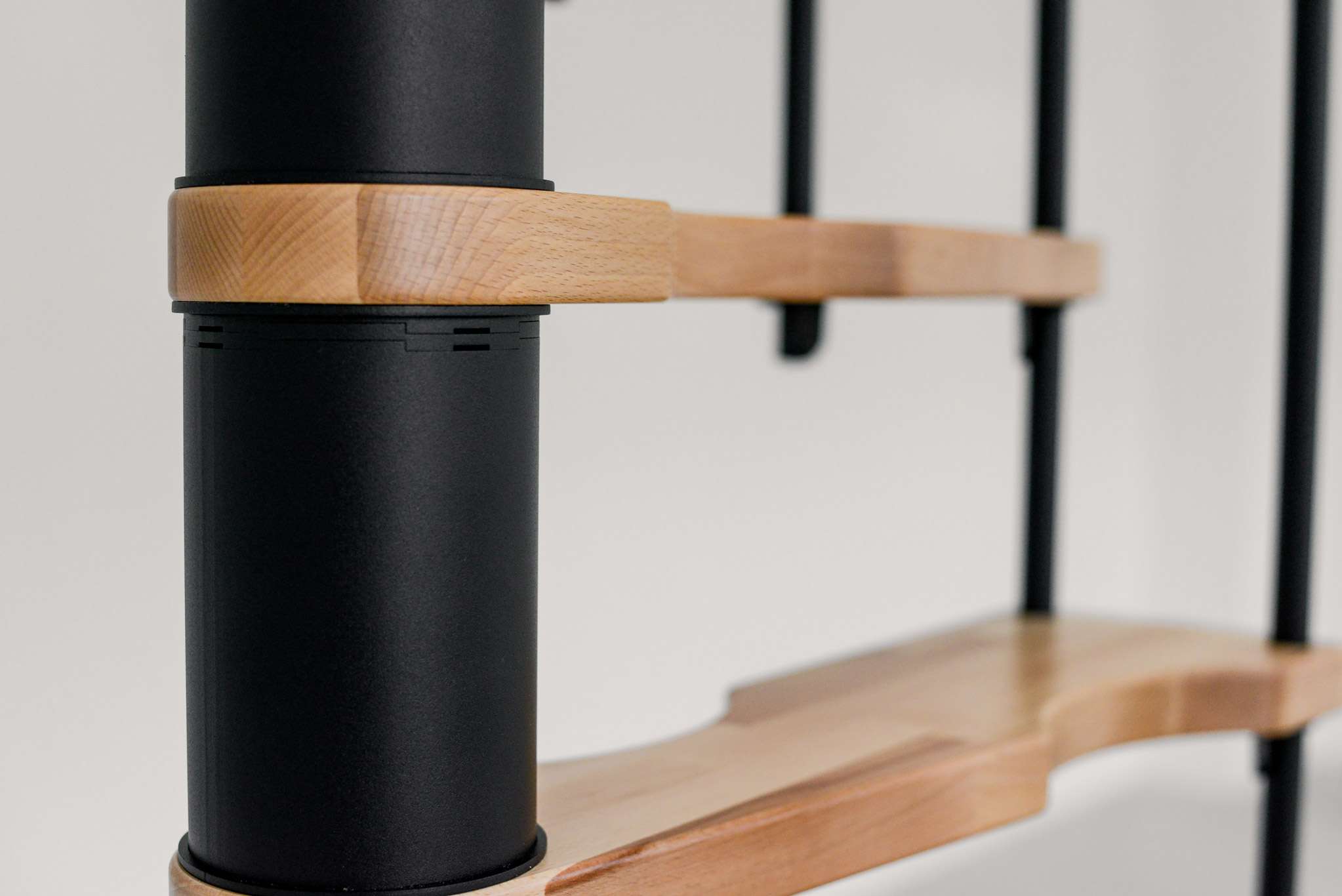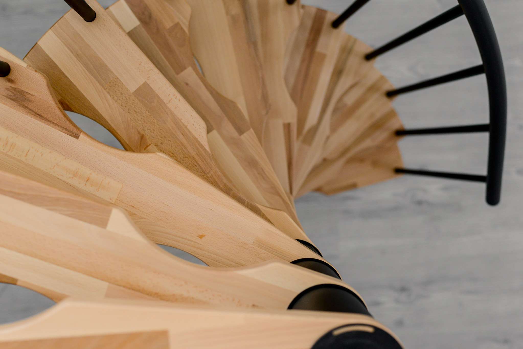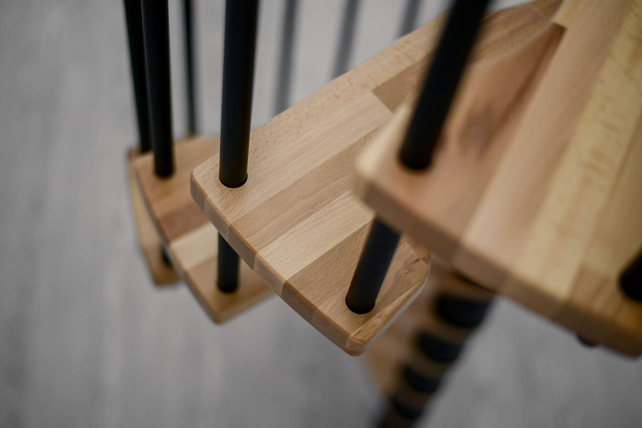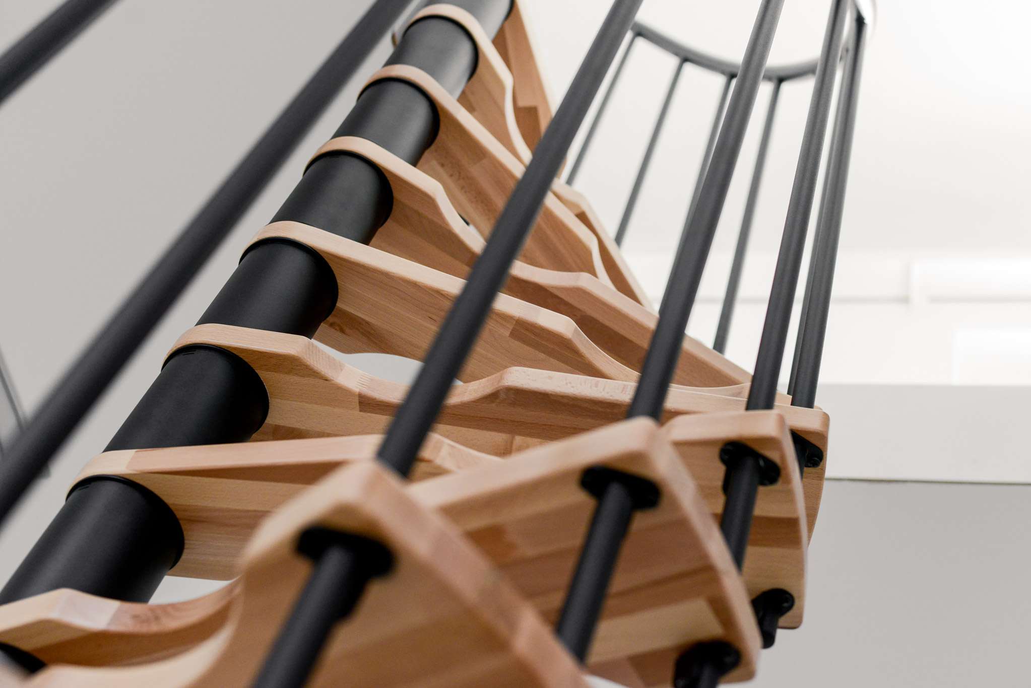 • Stufen aus Buchenholz und Metallteile pulverbeschichtet in Schwarz, Grau oder Weiß