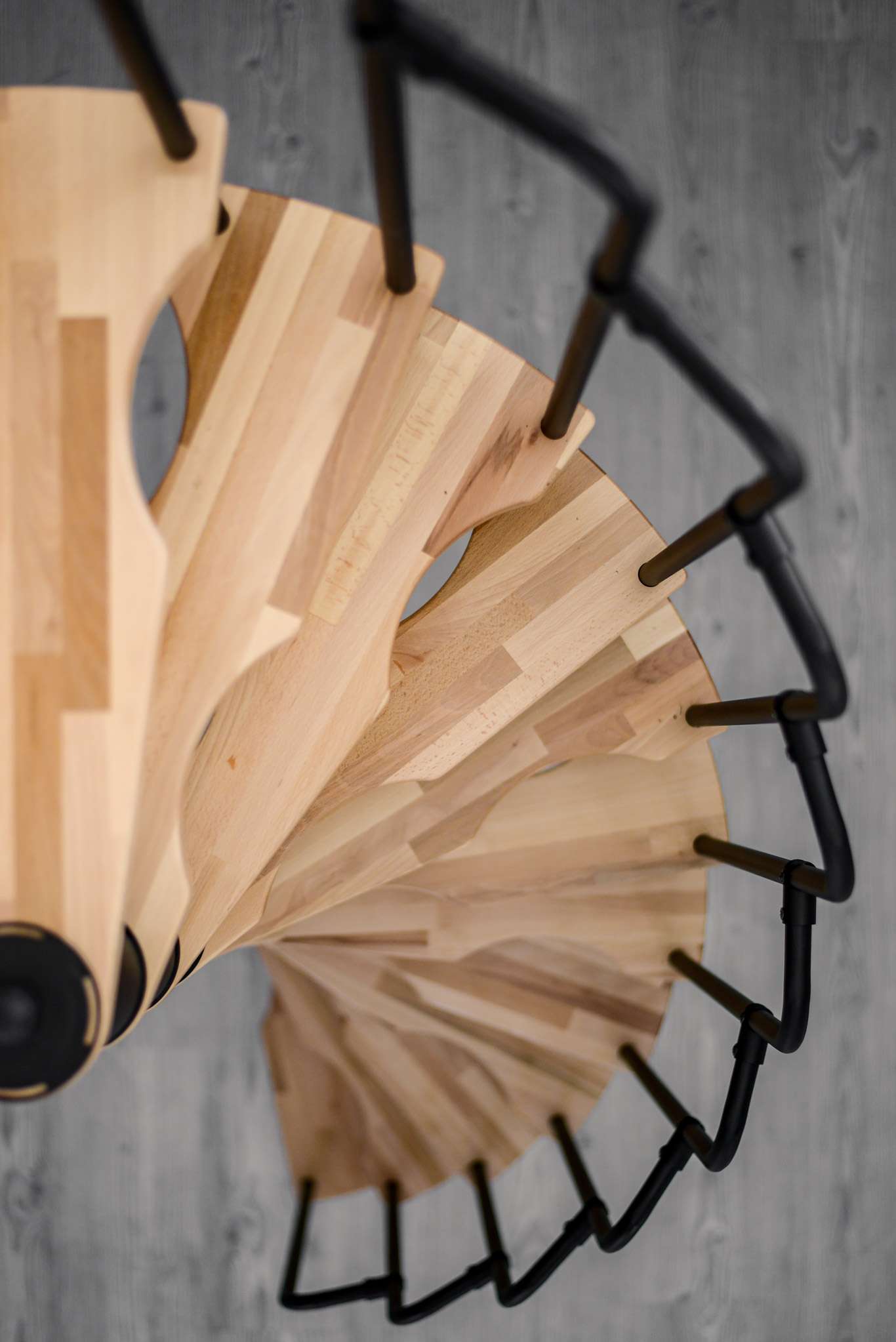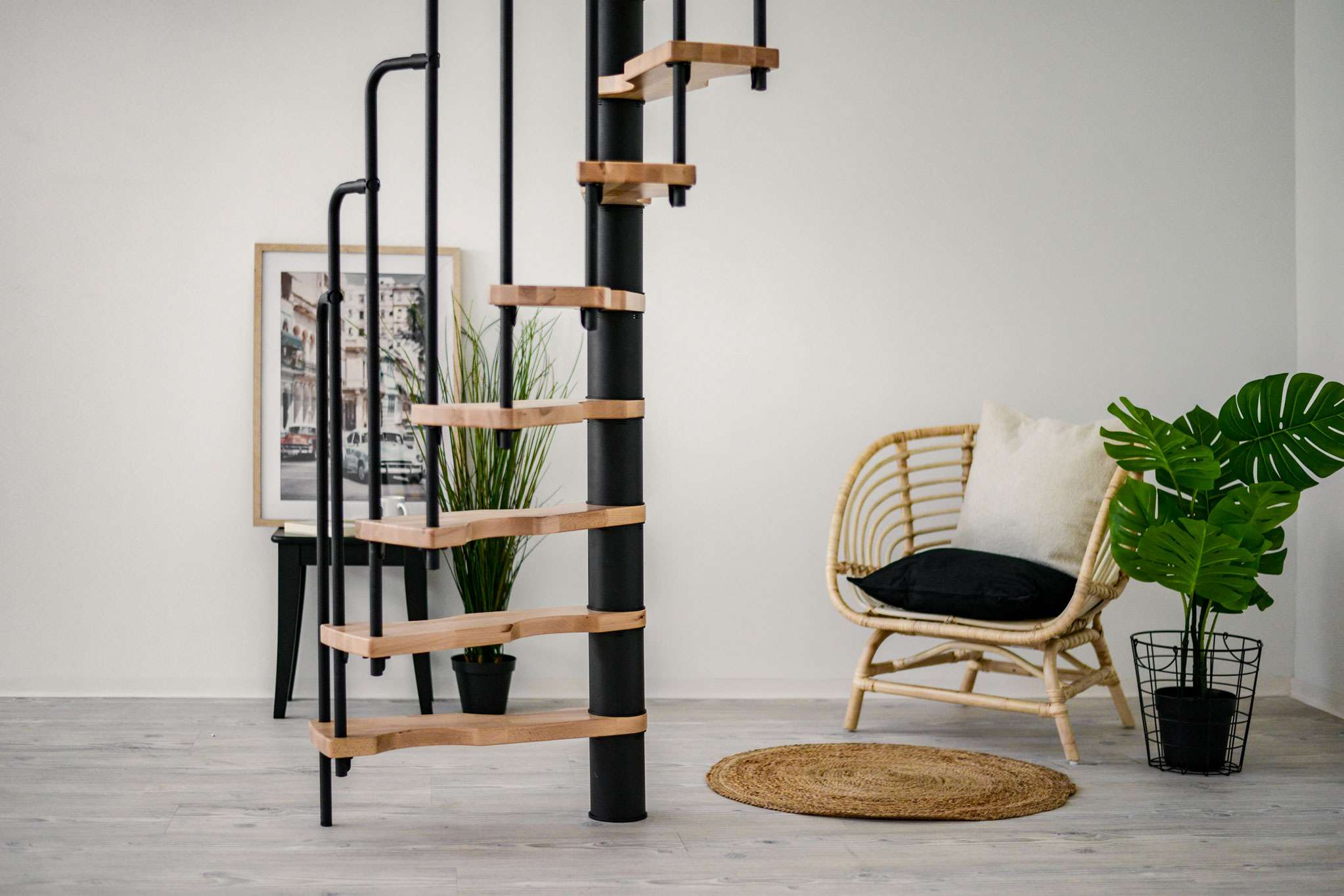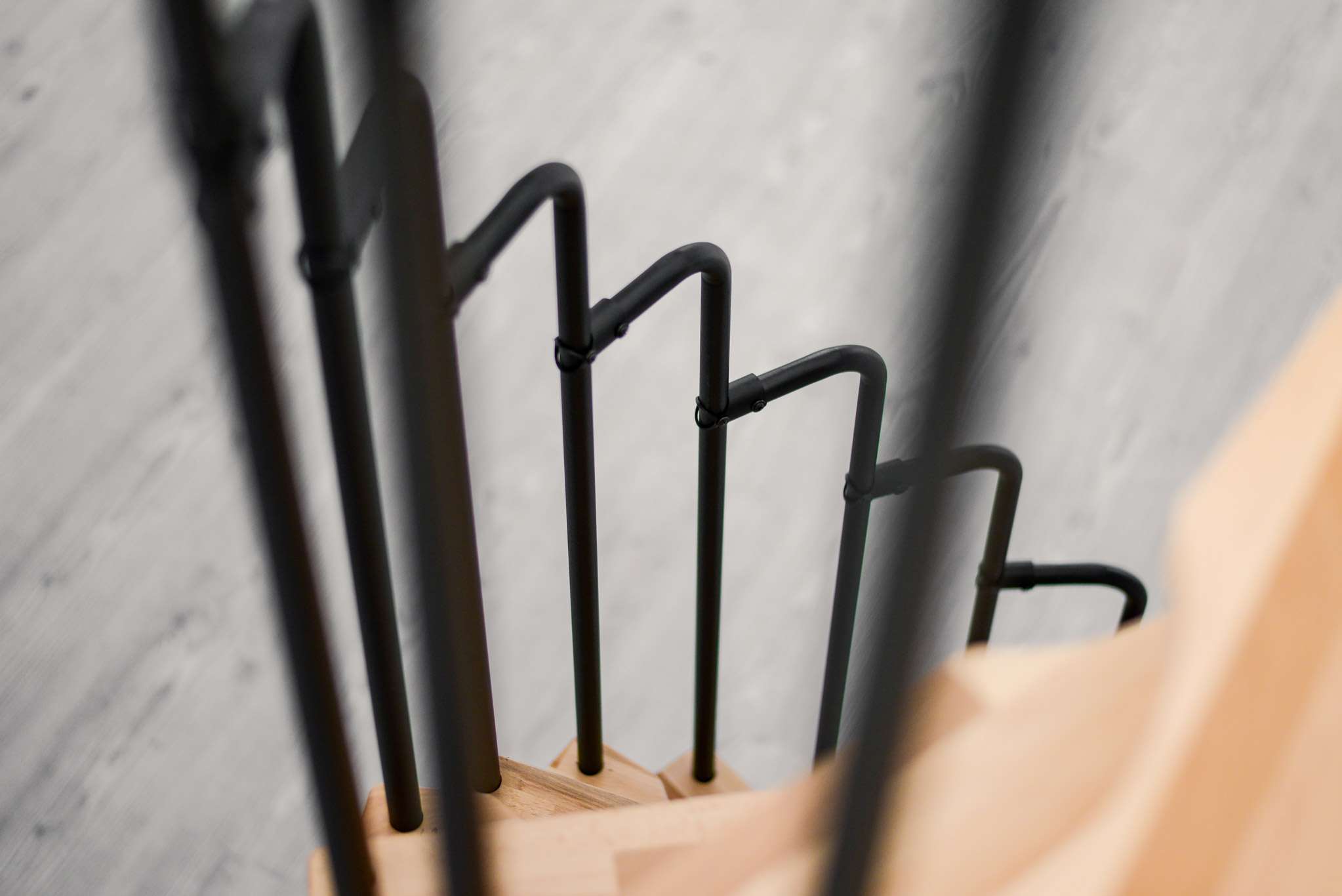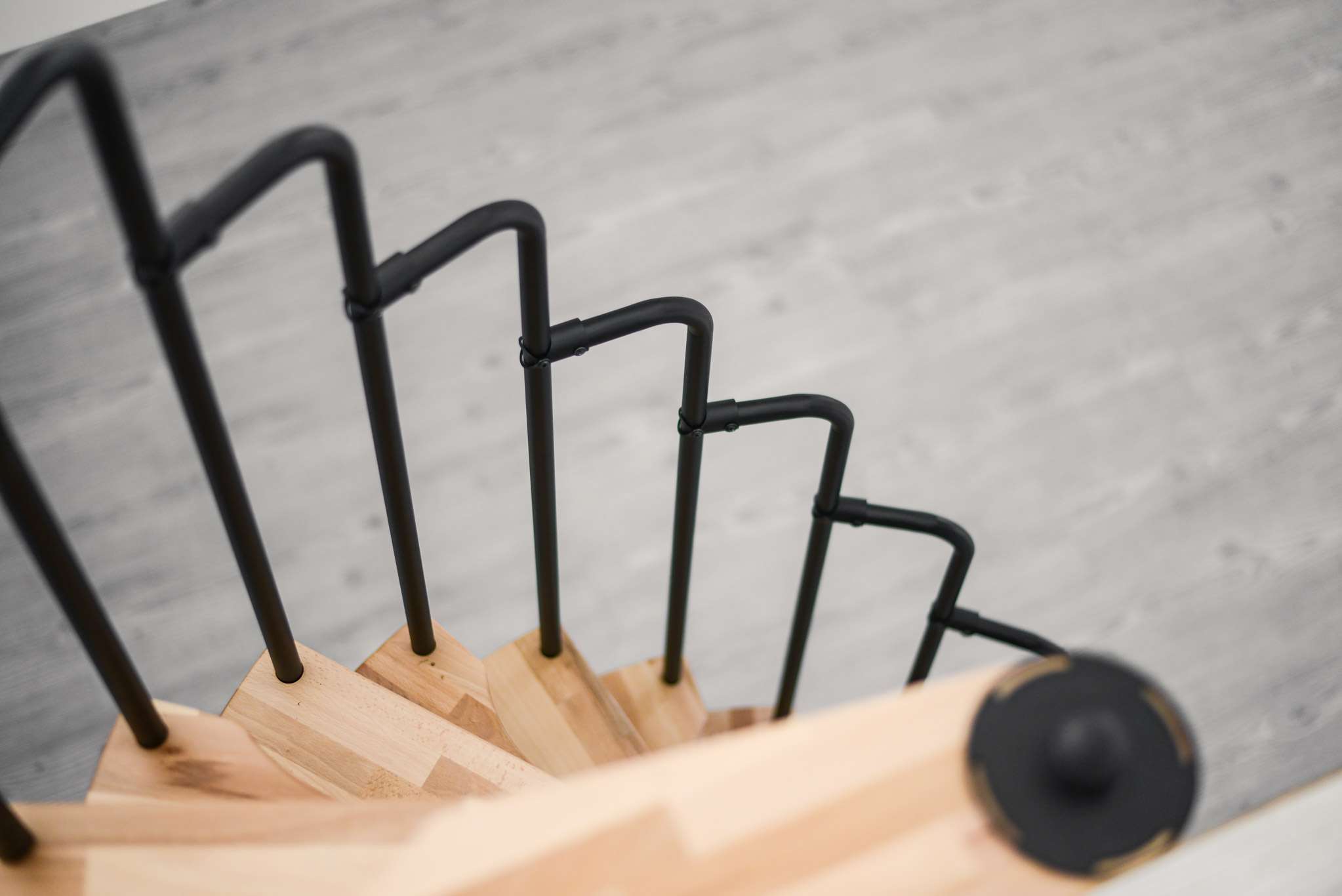 - Platzsparende Spindeltreppe mit schickem Stufengeländer
