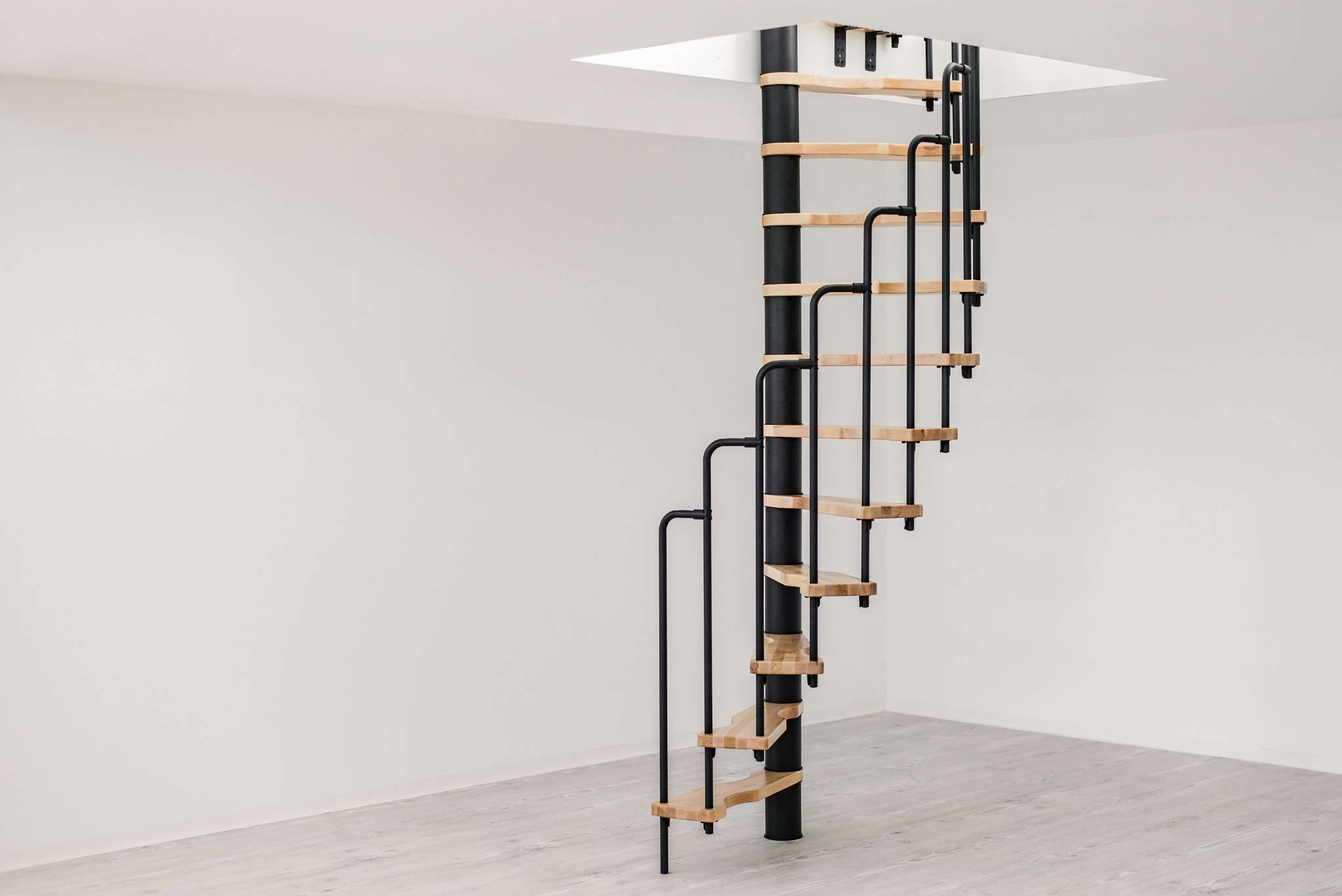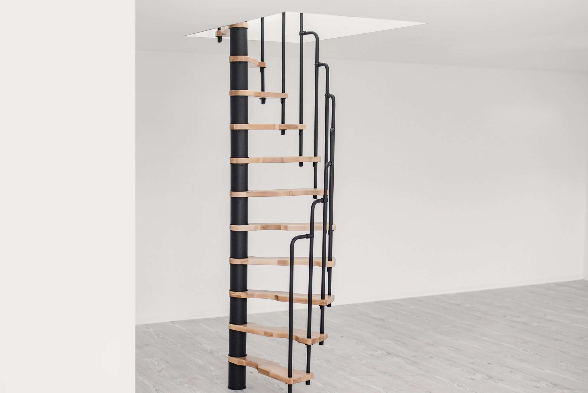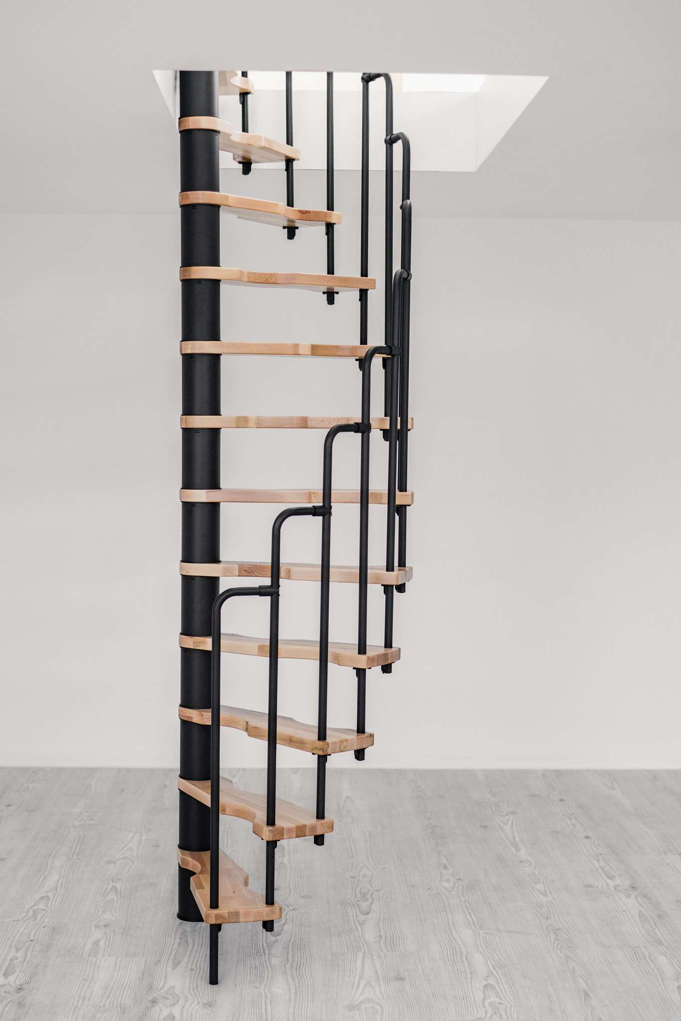 Wer eine möglichst platzsparende Spindeltreppe sucht, ist mit der Suono gut beraten. Sie lässt sich bereits in sehr kleine Deckenöffnungen einbauen. Damit ist sie die perfekte Lösung für den Ausbau oder das Renovieren von Dachböden. Die Suono ist aber nicht nur praktisch, sondern macht auch optisch etwas her. Die Holzstufen und das schicke Stufengeländer ergeben einen außergewöhnlichen Look, der jeden Wohnraum aufwertet.