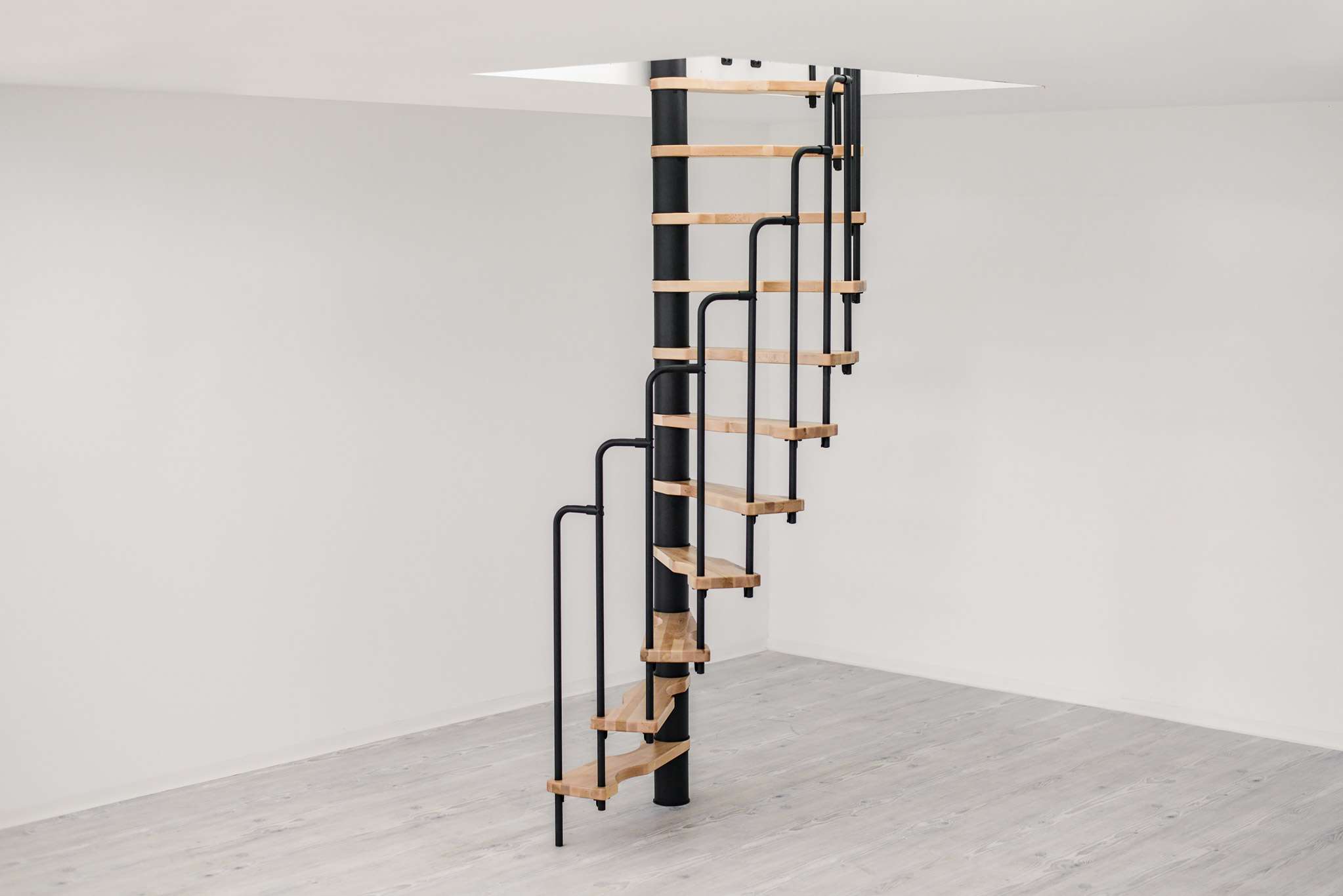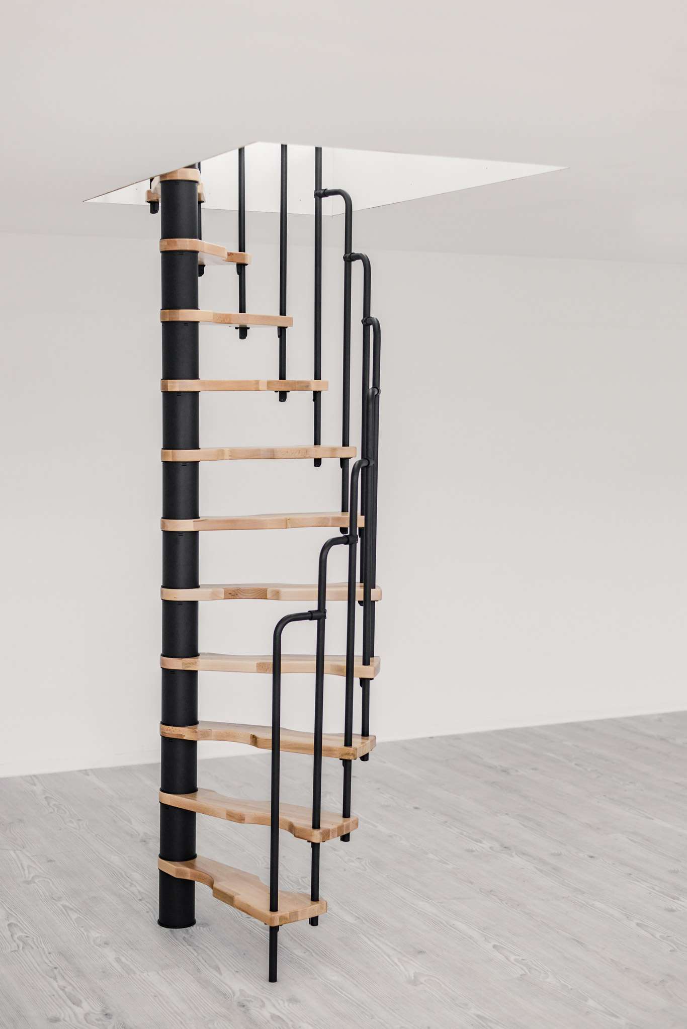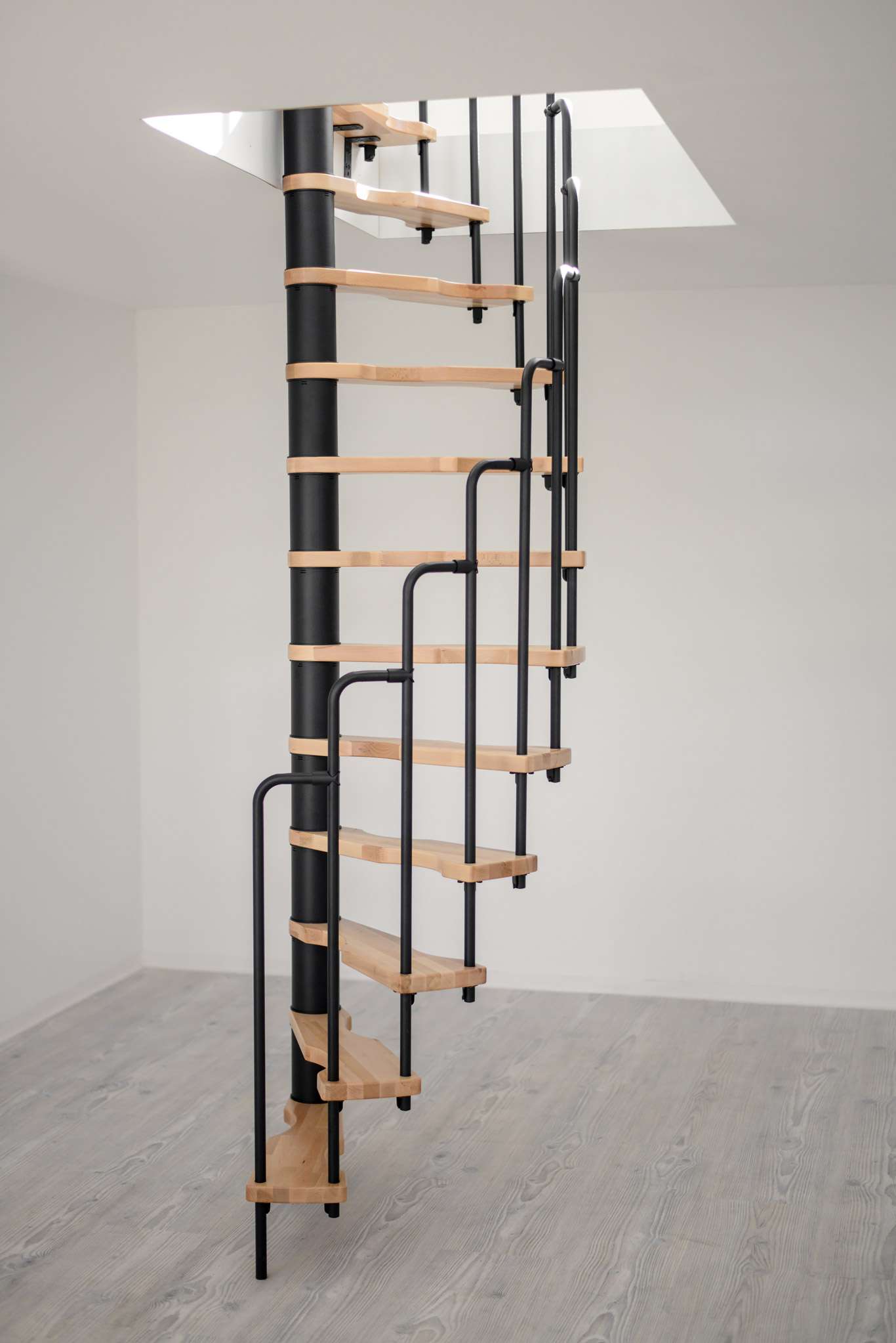 Wer eine möglichst platzsparende Spindeltreppe sucht, ist mit der Suono gut beraten. Sie lässt sich bereits in sehr kleine Deckenöffnungen einbauen. Damit ist sie die perfekte Lösung für den Ausbau oder das Renovieren von Dachböden. Die Suono ist aber nicht nur praktisch, sondern macht auch optisch etwas her. Die Holzstufen und das schicke Stufengeländer ergeben einen außergewöhnlichen Look, der jeden Wohnraum aufwertet.