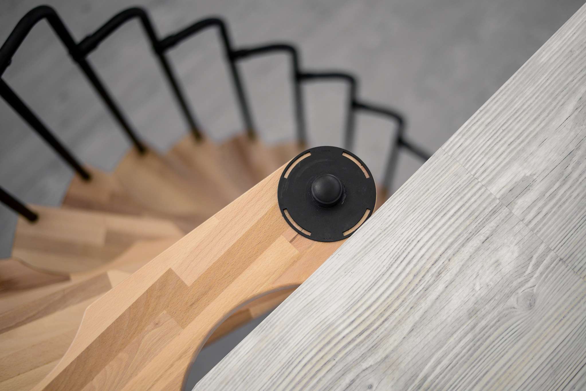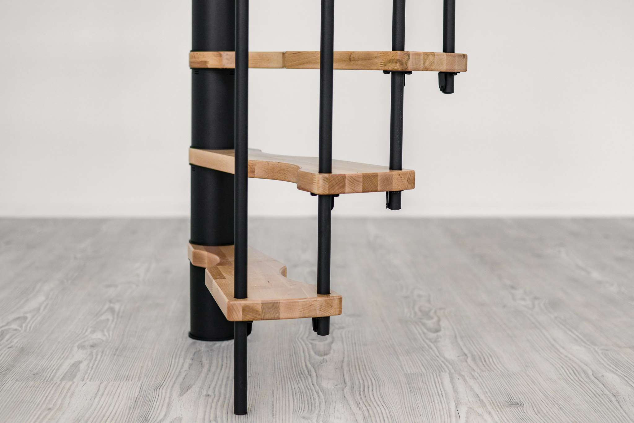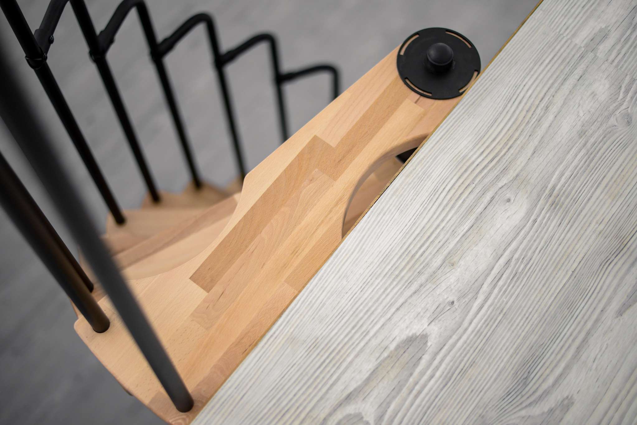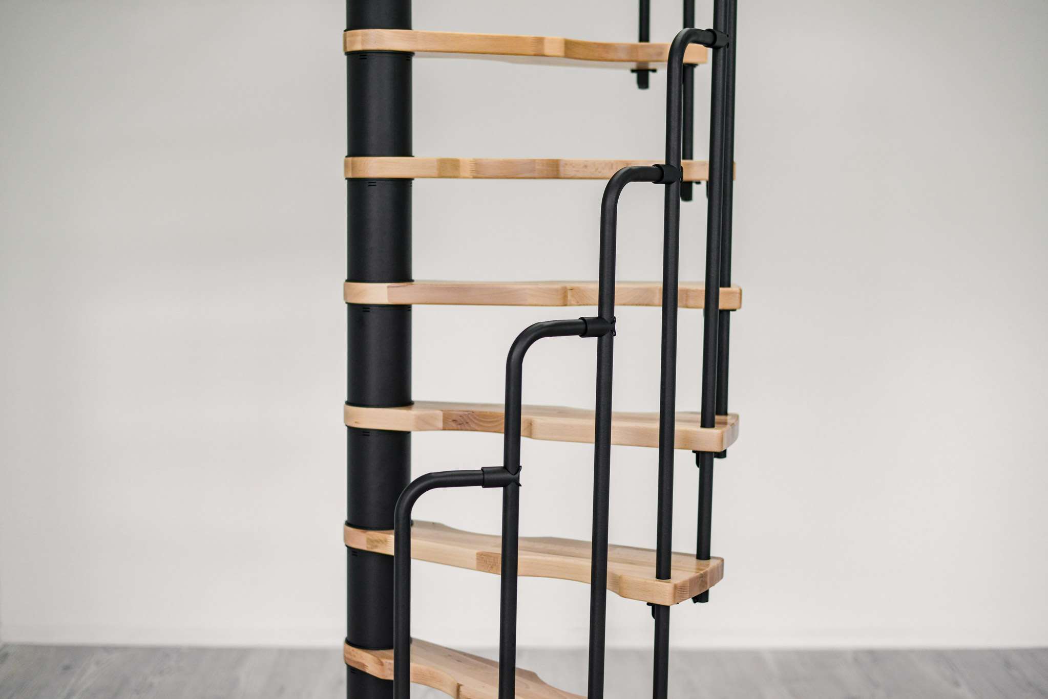 - Spindel und Geländer pulverbeschichtet in Grau, Schwarz oder Weiß
