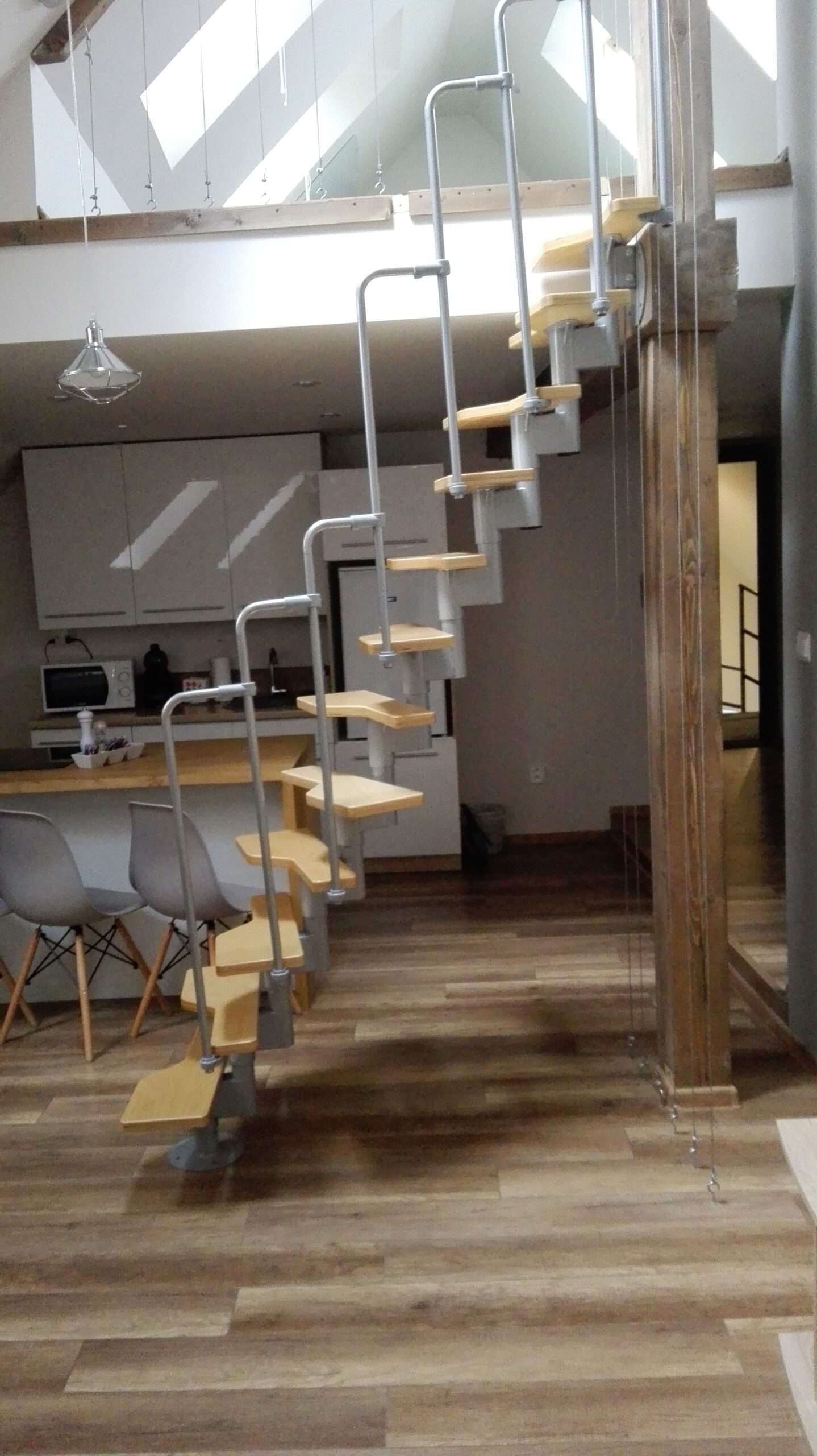 Die Twister von Minka ist eine besonders platzsparende Raumspartreppe. Sie lässt sich auch bei äußerst kleinen Deckenöffnungen einsetzen – das macht sie insbesondere für den Ausbau von Dachböden oder Renovierungsprojekte zu einer optimalen Treppenlösung. Das außergewöhnliche Geländer aus Stahl sorgt für eine einzigartige Optik und einen sicheren Auf- und Abstieg.