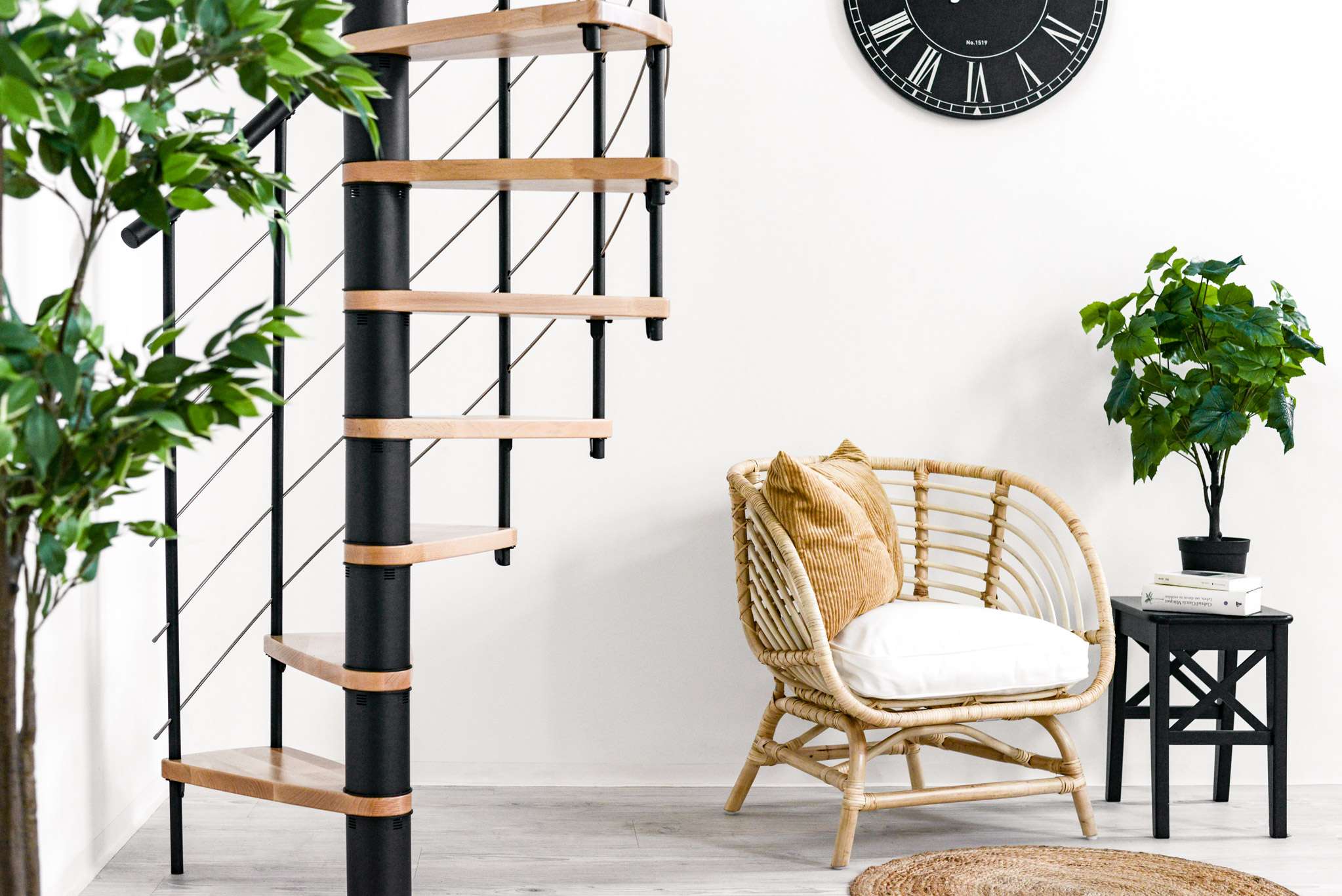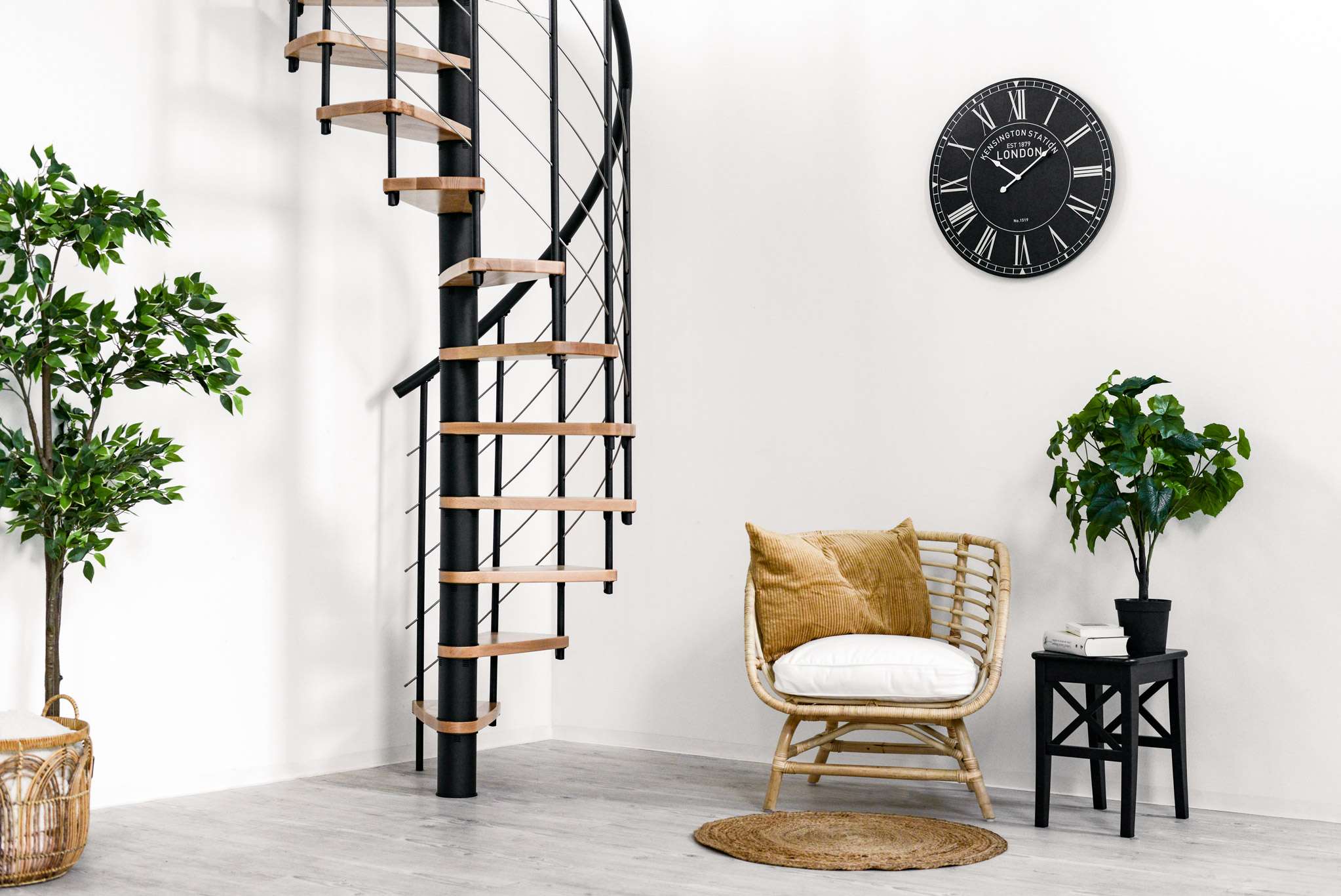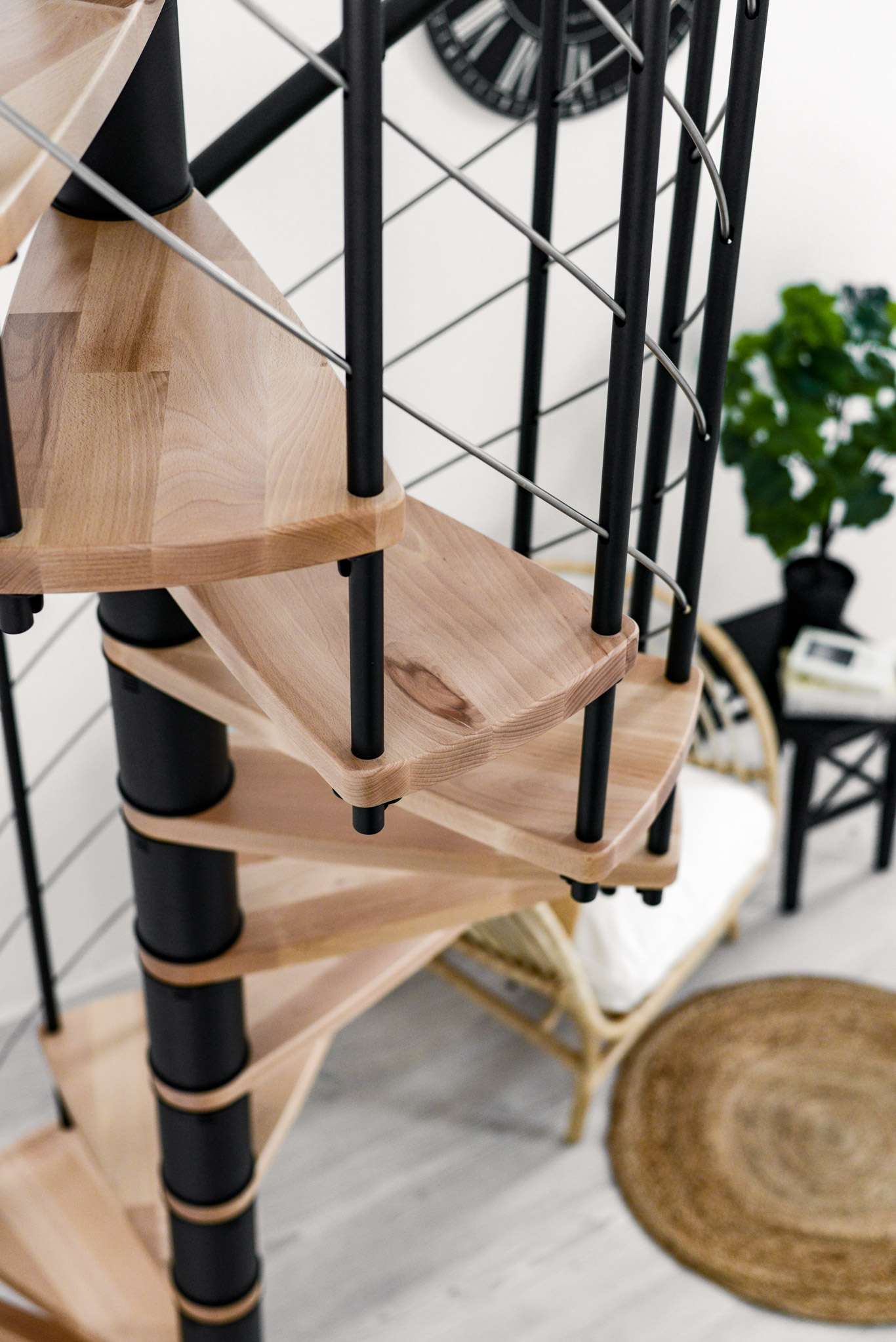 Die Spindeltreppe Venezia Smart bringt das leichte italienische Flair direkt zu Ihnen nach Hause. Die Kombination aus flachen Holzstufen und geschwungenen Untergurten lässt die Treppe dynamisch und modern wirken. Dank der großen Auswahl an Holzarten und Metallfarben ergänzt die Venezia Smart verschiedenste Einrichtungsstile perfekt. Durch den Handlauf aus PVC ist die Venezia Smart die ideale Wahl für alle, die Wert auf eine angenehme Haptik und einen etwas günstigeren Preis legen.