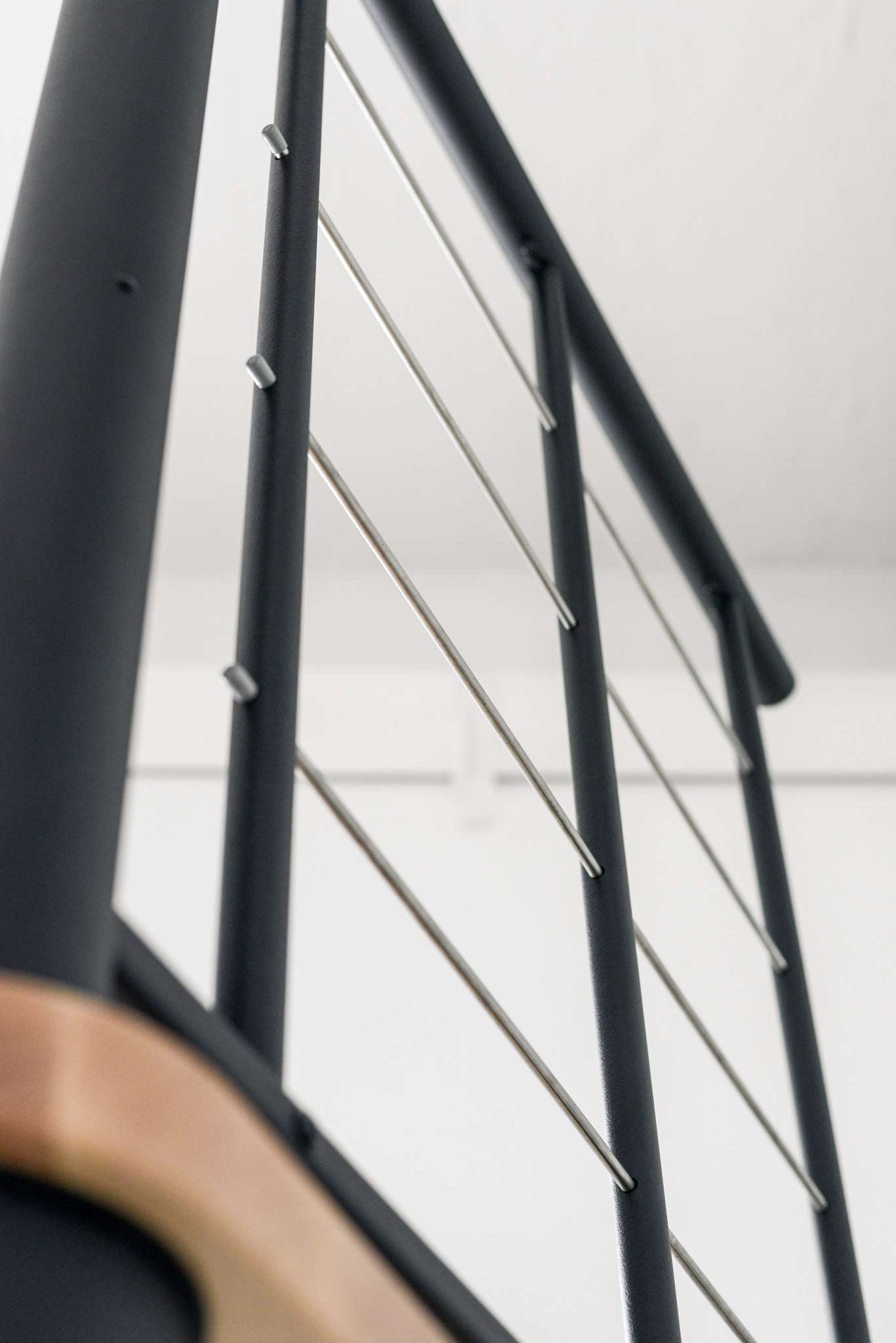 - Kombination aus flachen Holzstufen und geschwungenen Untergurten sorgt für dynamische Optik