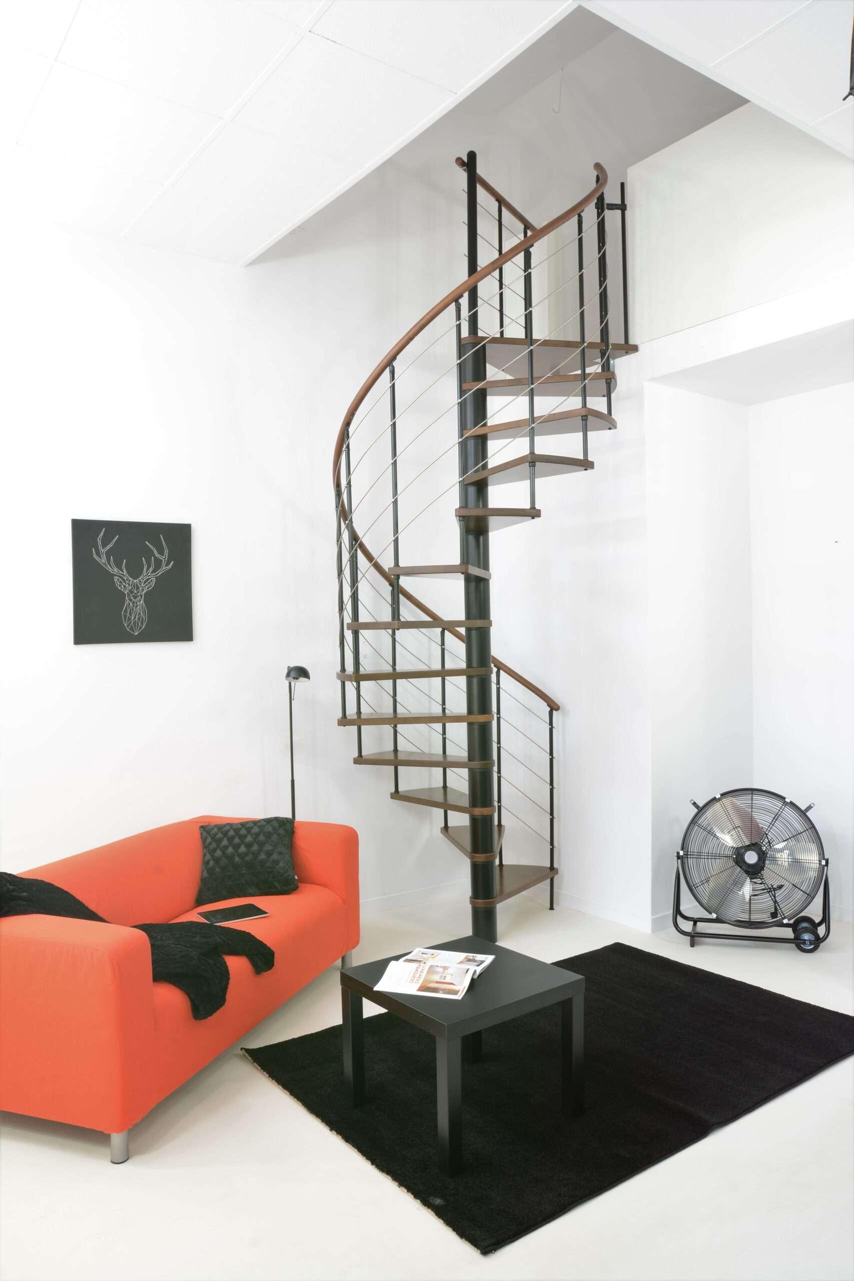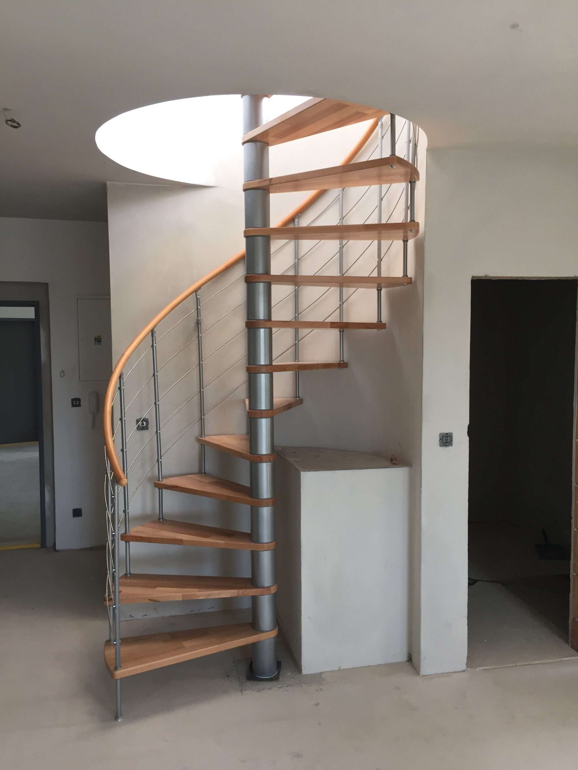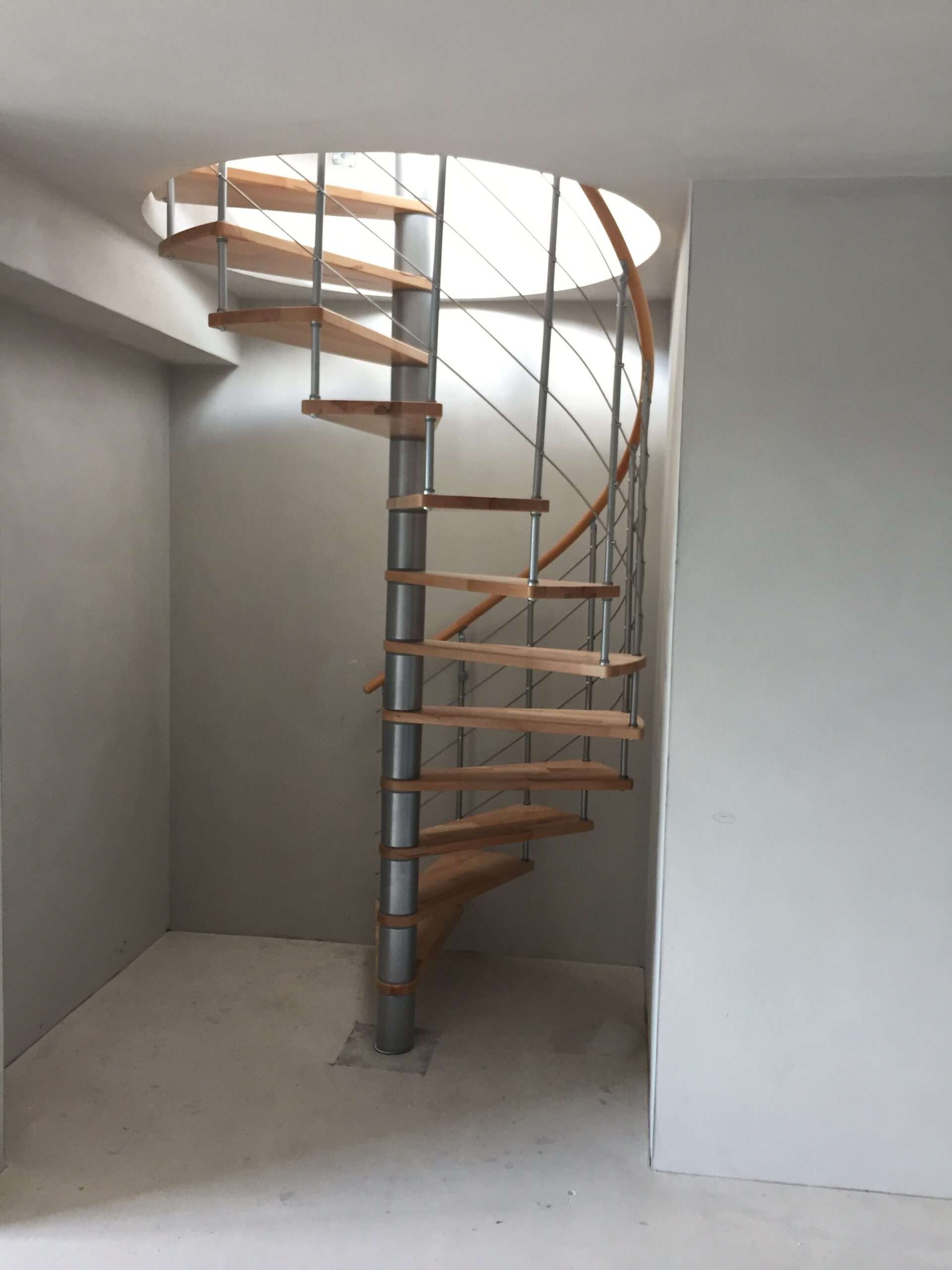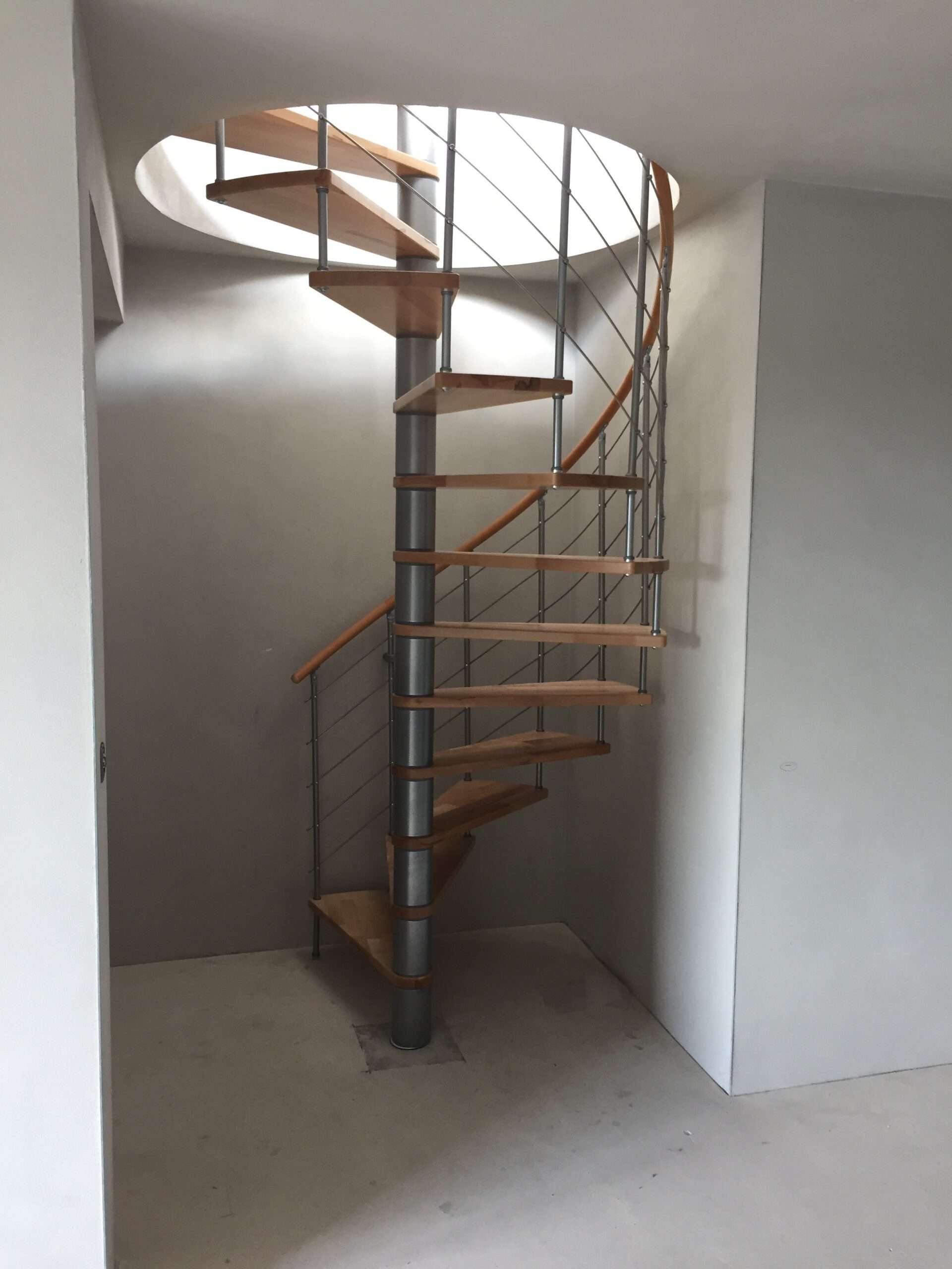 Die Spindeltreppe Venezia bietet eine besonders große Auswahl an Holzarten. Für die Stufen und den Handlauf können Sie zwischen Buche, Walnuss, Eiche und Weiß wählen und so das perfekte Match zu Ihrem Einrichtungsstil finden. Die Metallteile sind je nach Wunsch in Schwarz, Grau oder Weiß pulverbeschichtet. Auch größentechnisch bietet die Venezia mit Durchmessern von 120, 140 oder 160 cm vielfältige Möglichkeiten.