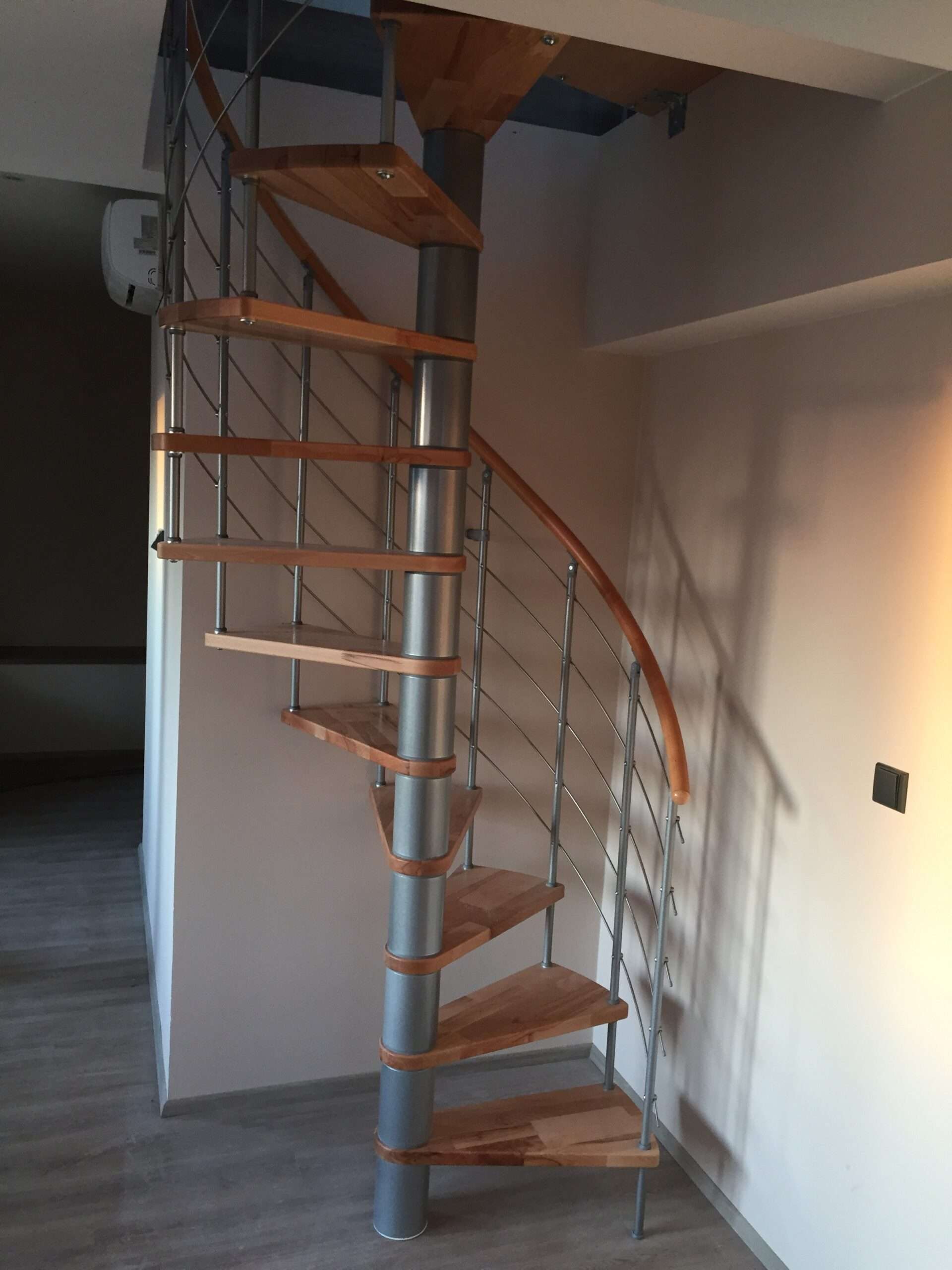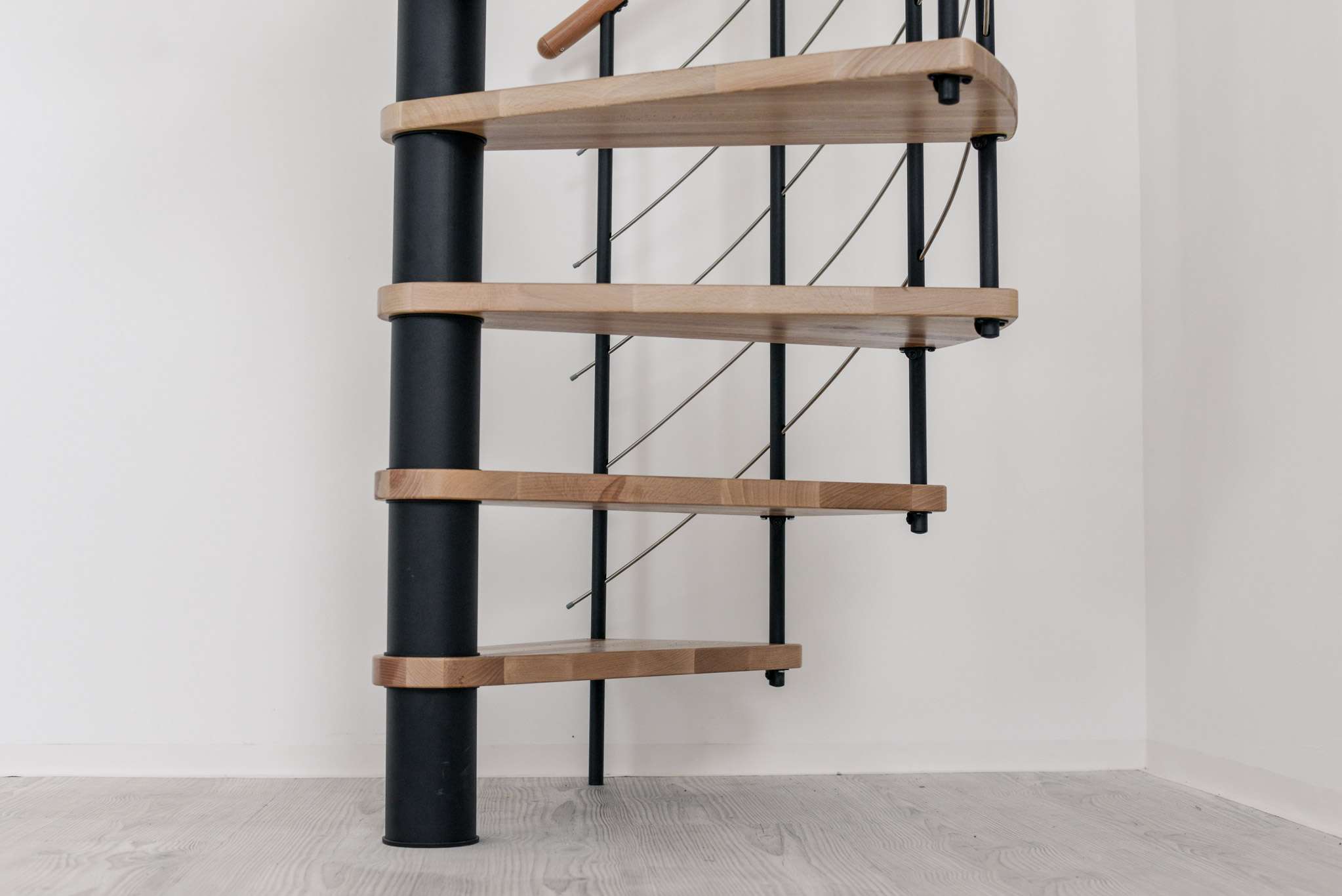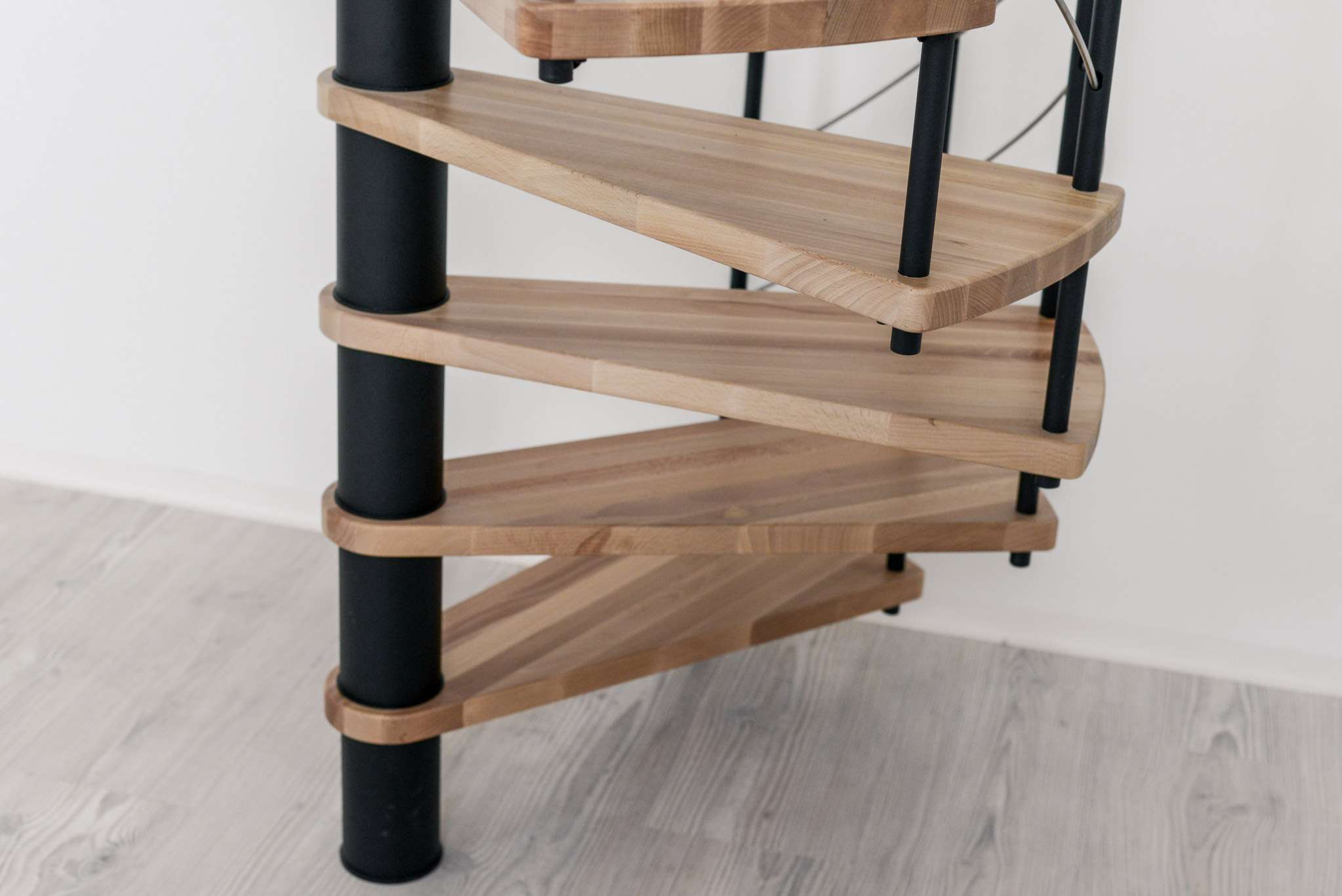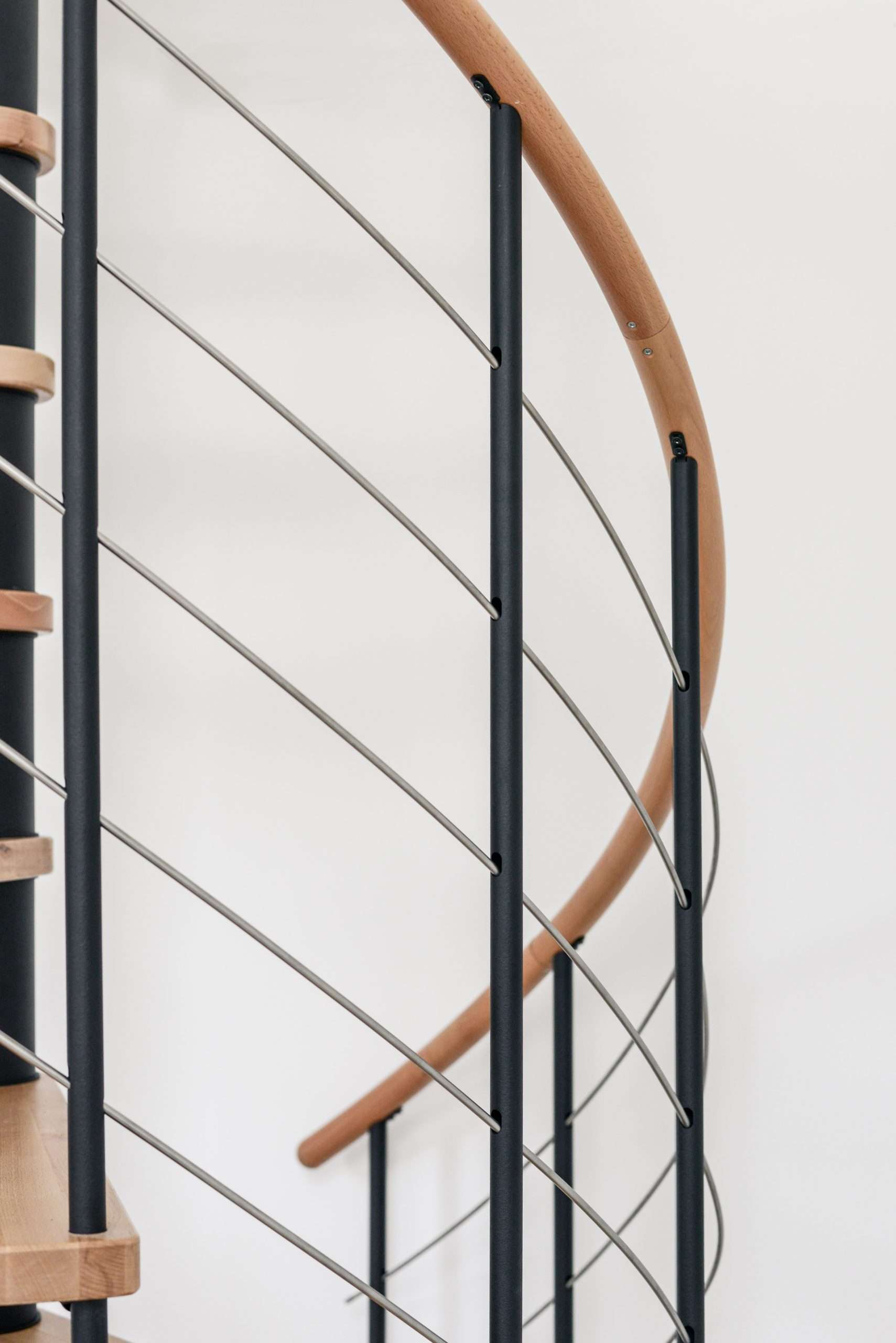 Die Metallteile der Venezia sind mit einer hochwertigen Pulverbeschichtung oberflächenveredelt. Gemeinsam mit den Untergurten aus Edelstahl und den Stufen aus lackiertem Holz ergibt sich eine hohe Qualität und Schadensresistenz. Mit einer Venezia Spindeltreppe von Minka haben Sie und Ihre Familie somit das ganze Leben lang einen sicheren Begleiter auf dem Weg nach oben.